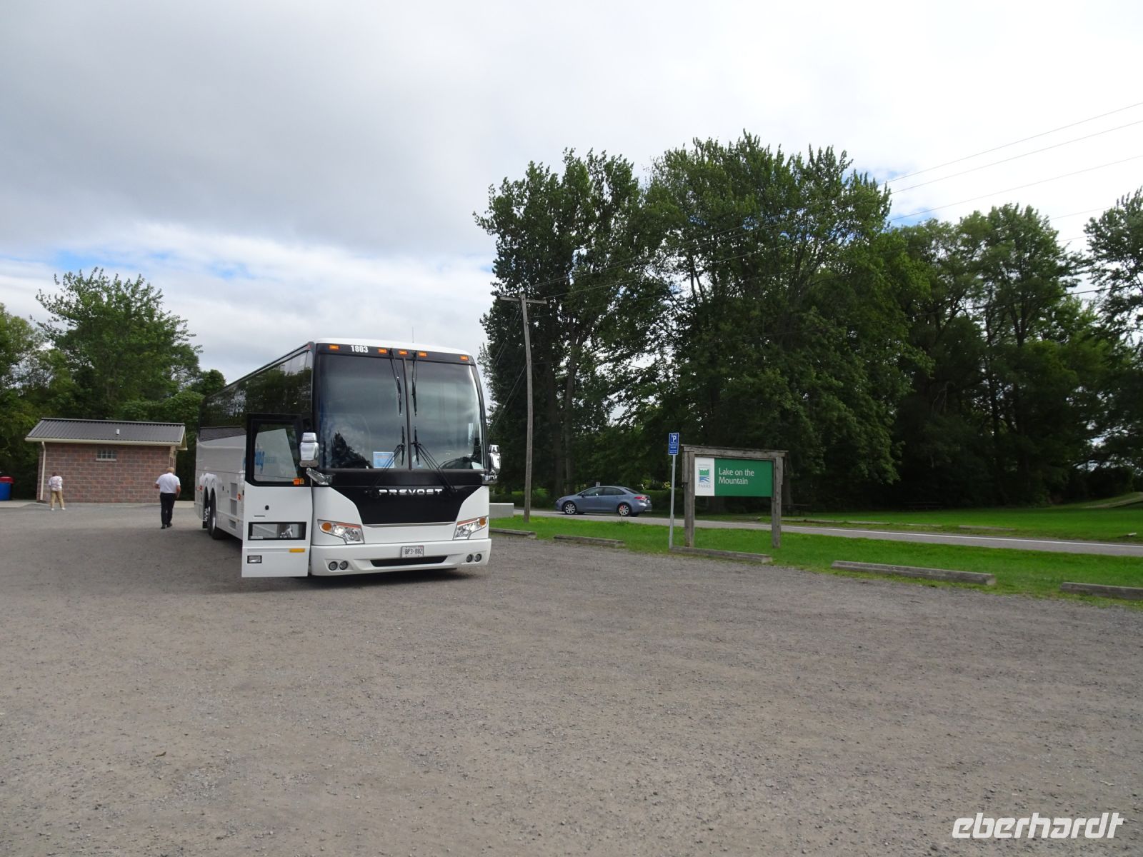 Kurz nach dem wir unsere Fahrt heute begonnen haben, stoppt es auch schon wieder. An einem Bahnübergang müssen wir einen Zug mit mehr als einhundert Waggons passieren lassen. Am sogenannten Whirlpool legen wir einen Fotostopp ein, hier wird das Wasser des Niagara River durch eine natürliche Barriere aufgehalten und bildet dadurch kräftige Wirbel. Mit etwas mehr Zeit und weniger Wind könnten wir den Whirlpool mit einer Seilbahn überqueren. Wir begnügen uns mit Fotos und setzen unseren Weg fort. Wunderschön sind die Häuser im Städtchen Niagara on the Lake. Margarith ist total begeistert und überträgt ihre Freude auf uns. Sie wünscht sich einen neuen Mann mit viel Geld, der ihr hier ein Häuschen spendiert (Spaß natürlich). In Glenora, am Lake of the Mountain, legen wir einen Stopp ein, bevor wir mit der Fähre nach Adolphustown übersetzen. Am frühen Nachmittag erreichen wir in Colborne eine der einzigartigsten Raststätten in Kanada - den Big Apple. Selbstverständlich gibt es hier leckeren Apfelkuchen in vielerlei Varianten, aber auch warme Speisen, die wir so gern zum Mittagessen mögen.
