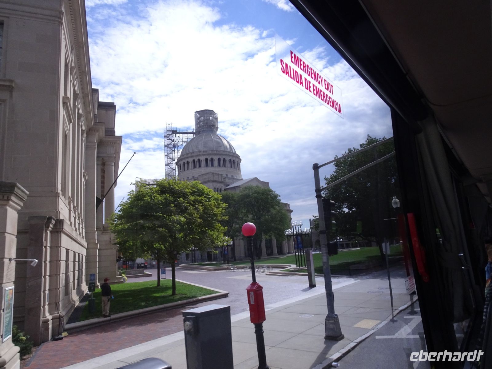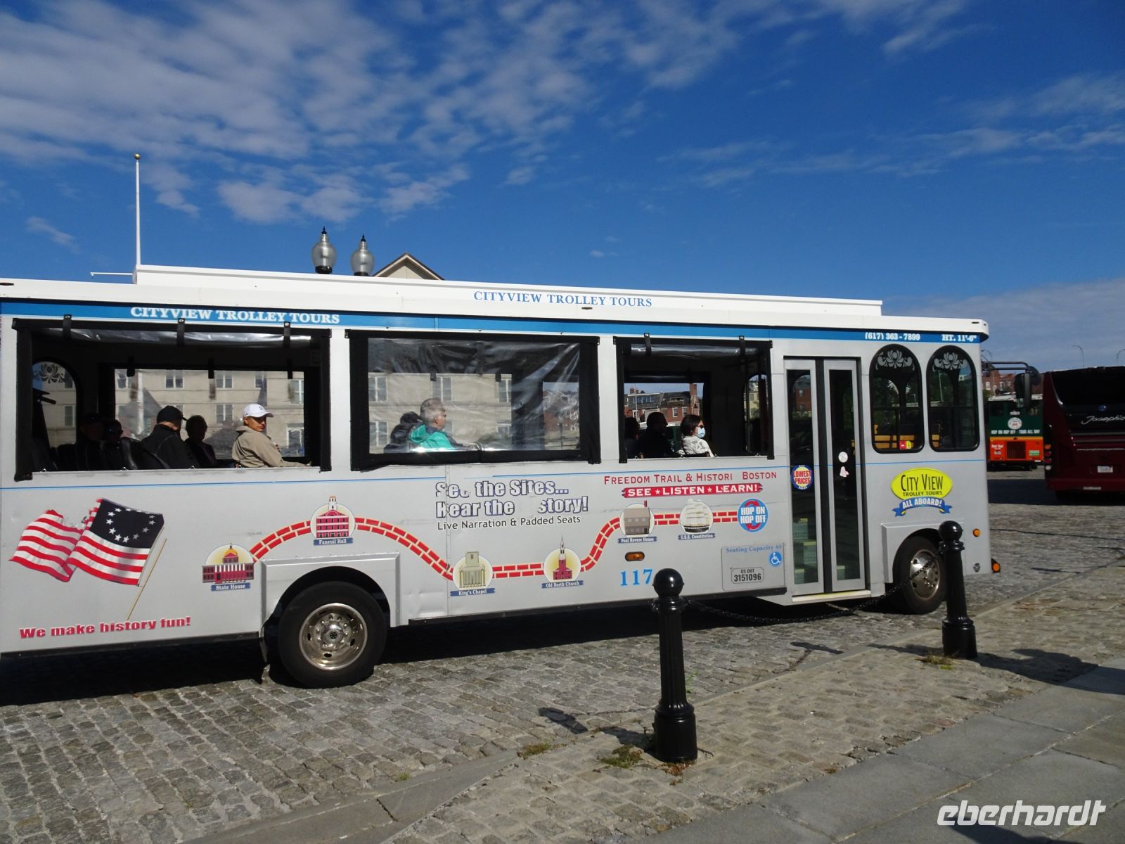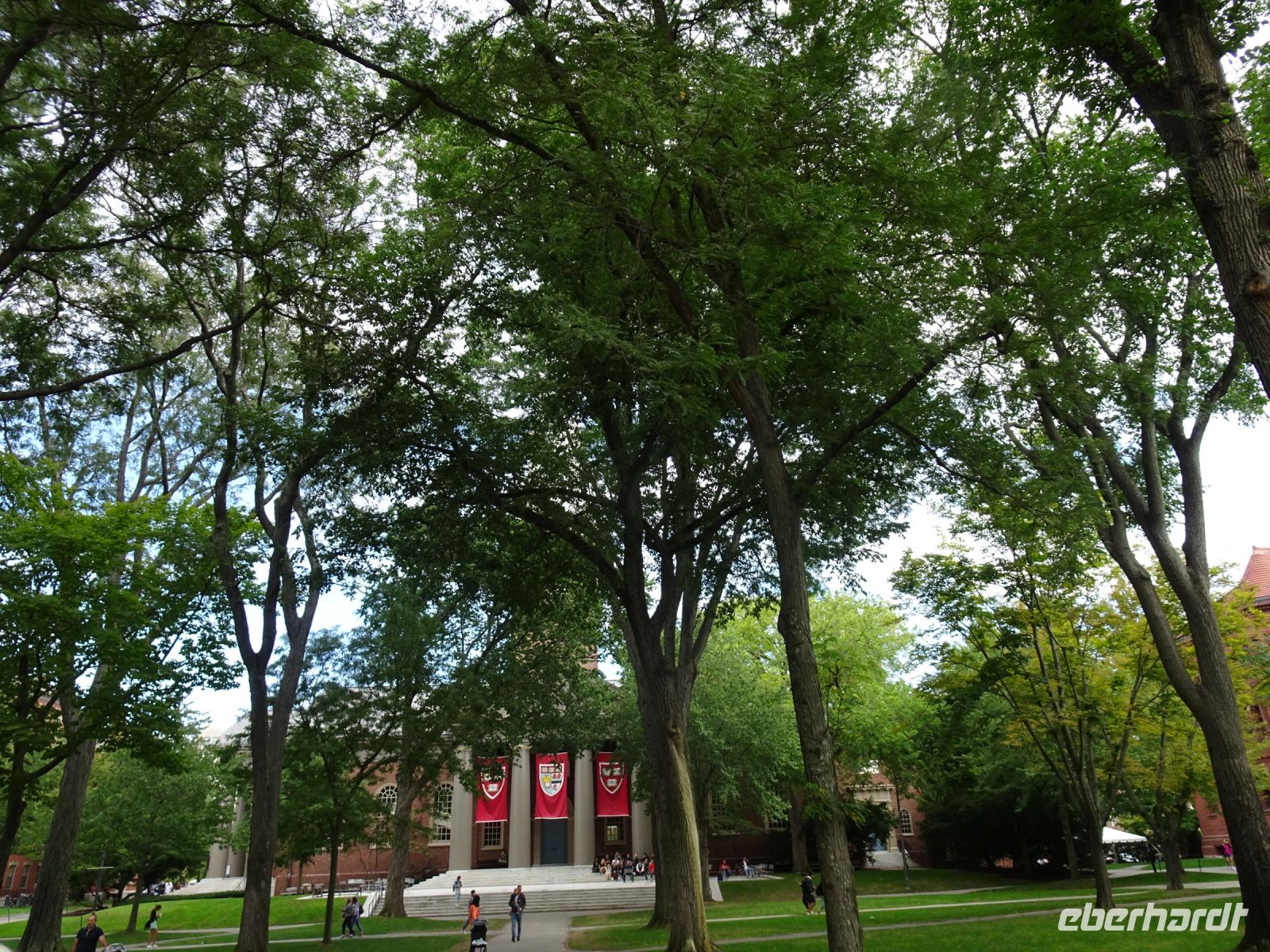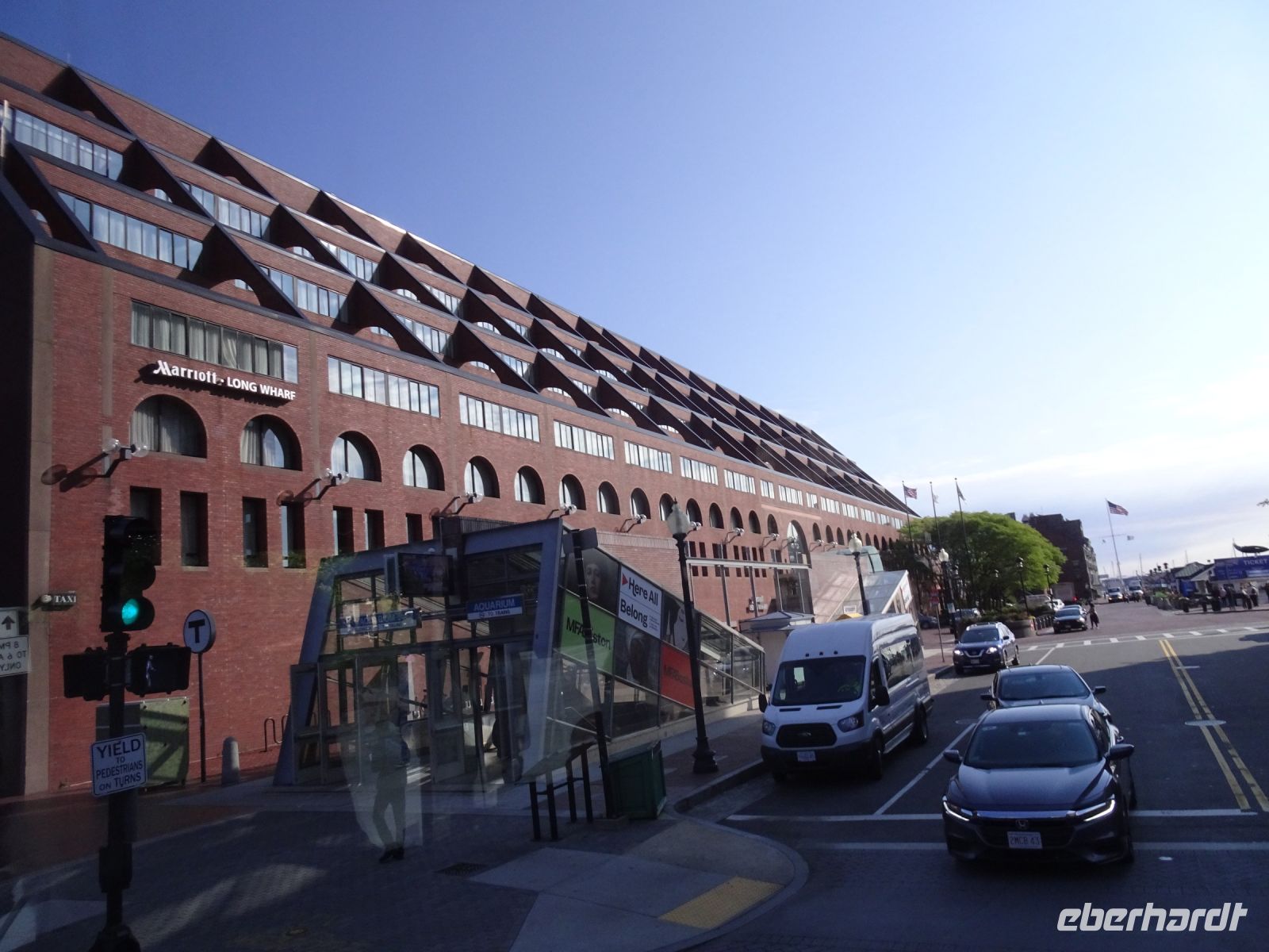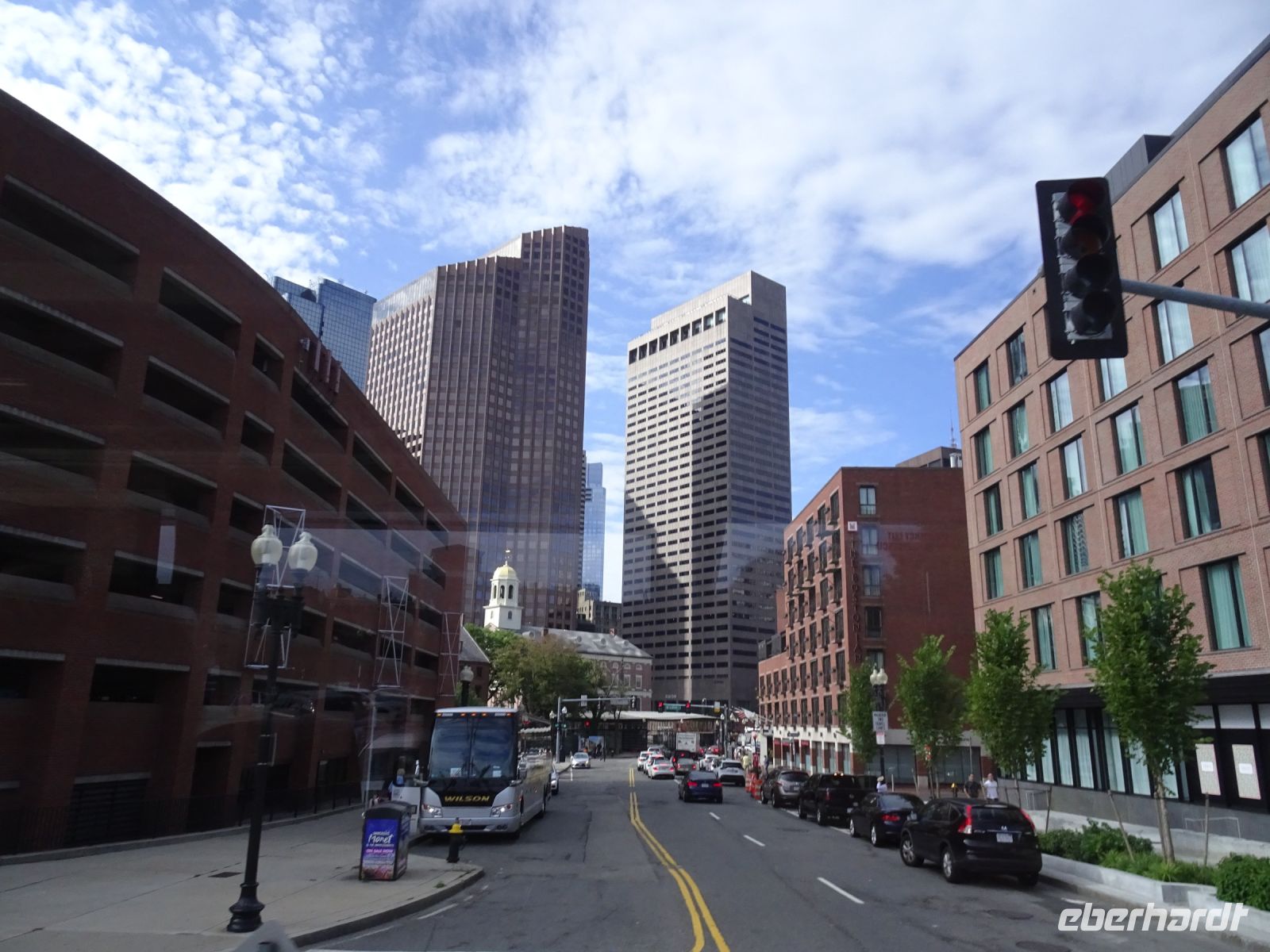 Ein Sahnehäubchen auf unserer Rundreise folgt zum Abschluss. Zunächst einmal müssen wir aber aus checken. Natürlich geht das nicht ohne ein Miniproblem ab, wie sollte es auch anders sein. Eine Kreditkarte wurde nicht richtig gezogen, wir müssen noch einmal zur Rezeption und das in Ordnung bringen. In der Zwischenzeit haben alle anderen Gäste ihre Koffer und die heutige Stadtführerin gefunden. Wir sind in Boston, der größten Stadt in Neuengland/USA und Massachusetts. Entsprechend haben wir es wieder mit spiegelverglasten Wolkenkratzern zu tun. Mit dem Bus fahren wir durch Boston Downtown und am Hafen entlang. Unser erster Stopp gilt dem ältesten noch seetüchtigem Segelschiff der Welt (18. Jahrhundert). Es ist der Drei-Master USS Constitution mit einer bewegten Geschichte. Gegenüber vom Hafen befinden sich hübsche Häuschen, eines mit einem seltsamen Dachaufbau. Von hier aus haben die Seemannsfrauen, in Erwartung ihrer Männer früher über den Hafen und das Meer schauen können. Unsere Fahrt geht weiter durch die Stadt. Wir bewundern Museen von Außen, U-Bahn-Eingänge und Kirchen, das Theaterviertel und vieles mehr. Am Copley Square steigen wir aus. Wir bewundern die schönen Fresken der Trinity Church und besuchen die öffentliche Bibliothek. Anschließend fahren wir nach Cambridge zum Gelände der berühmten Harvard Universität, die immerhin schon 1636 gegründet wurde und damit die älteste Universität der Vereinigten Staaten ist. Hier befindet sich unter anderem die Harry Elkins Widener Bibliothek, deren Namen auf den Sohn einer reichen Familie zurückgeht, der mit seinem Vater beim Titanic-Unglück ums Leben kam. Harry Widener war Harvard Absolvent und leidenschaftlicher Sammler von Büchern und Schriften. Er besaß unter anderem ein Schreiben von William Shakespeare und eine Gutenberg Bibel. Nach seinem Tod spendete seine Mutter 200.000 US-Dollar für den Aufbau einer Bibliothek, die die Werke ihres Sohnes aufbewahren sollte. Von Cambridge fahren wir zurück nach Boston und legen bei schönstem Sonnenschein eine Pause am Quincy Market ein.