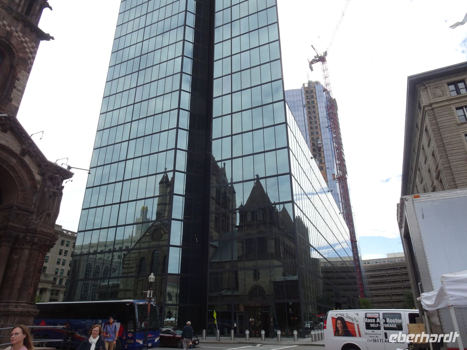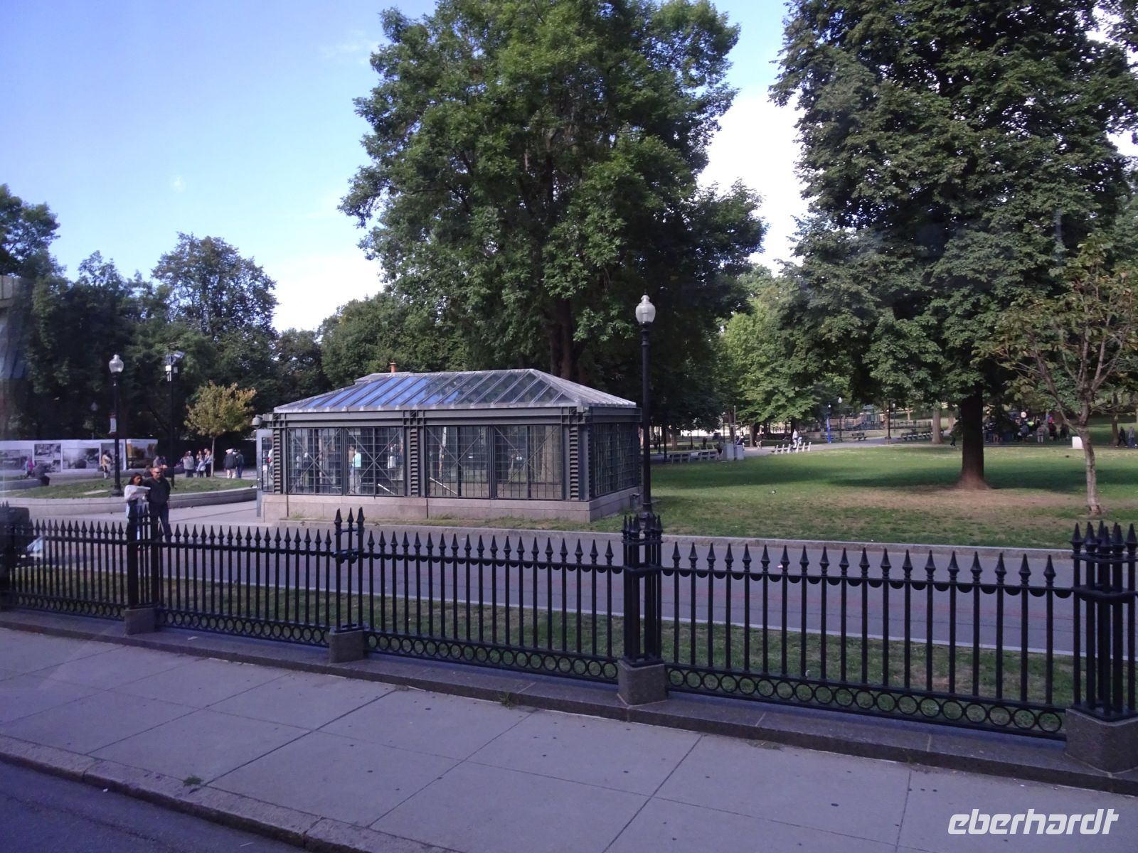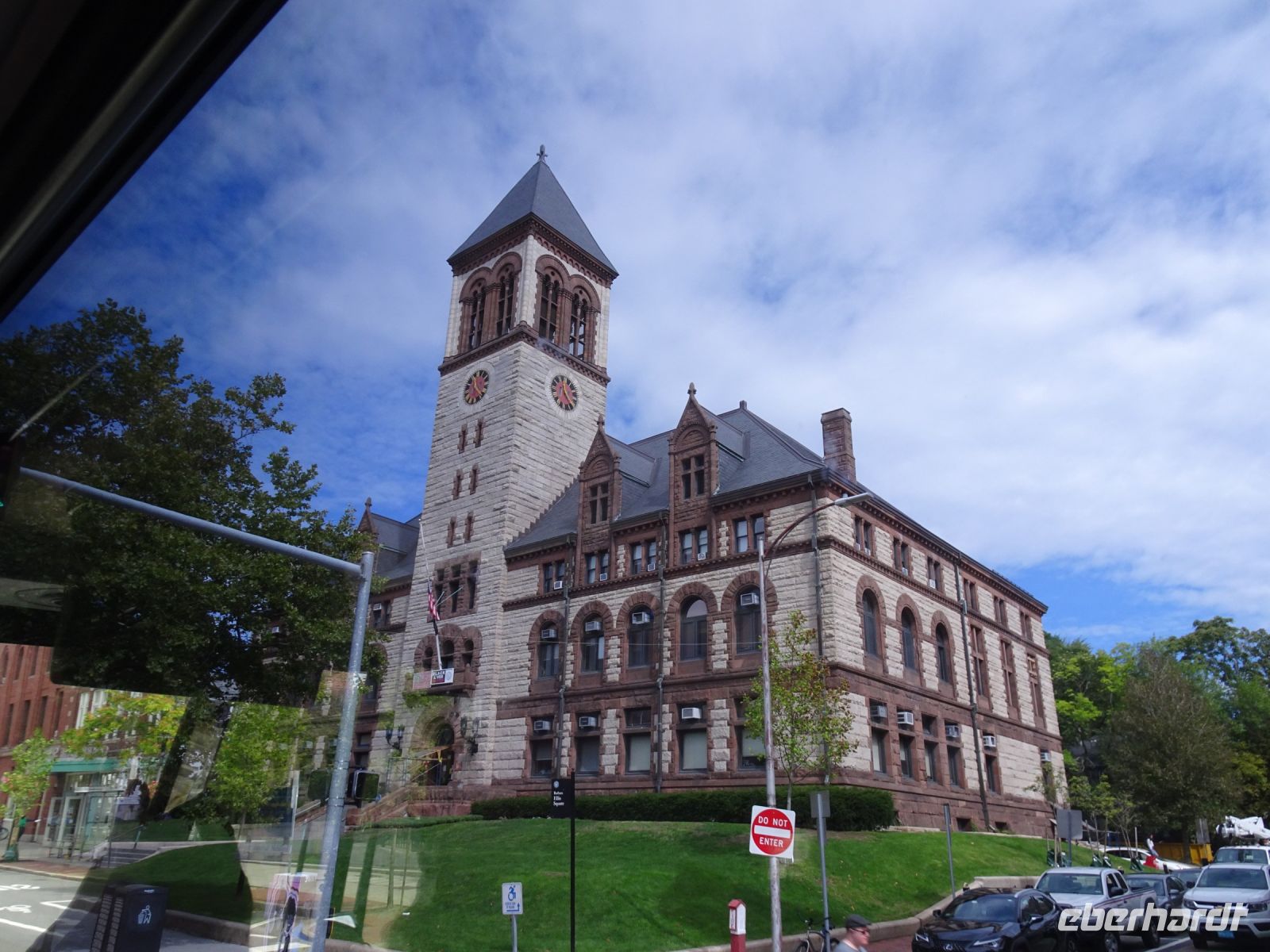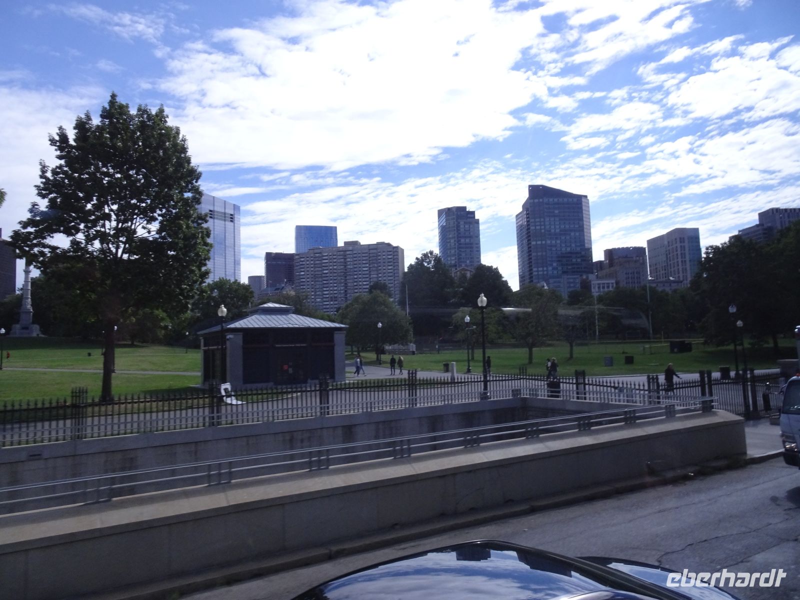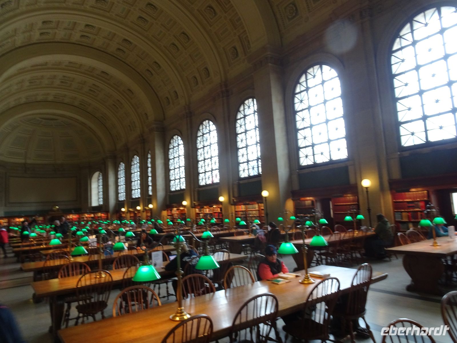 Ein Sahnehäubchen auf unserer Rundreise folgt zum Abschluss. Zunächst einmal müssen wir aber aus checken. Natürlich geht das nicht ohne ein Miniproblem ab, wie sollte es auch anders sein. Eine Kreditkarte wurde nicht richtig gezogen, wir müssen noch einmal zur Rezeption und das in Ordnung bringen. In der Zwischenzeit haben alle anderen Gäste ihre Koffer und die heutige Stadtführerin gefunden. Wir sind in Boston, der größten Stadt in Neuengland/USA und Massachusetts. Entsprechend haben wir es wieder mit spiegelverglasten Wolkenkratzern zu tun. Mit dem Bus fahren wir durch Boston Downtown und am Hafen entlang. Unser erster Stopp gilt dem ältesten noch seetüchtigem Segelschiff der Welt (18. Jahrhundert). Es ist der Drei-Master USS Constitution mit einer bewegten Geschichte. Gegenüber vom Hafen befinden sich hübsche Häuschen, eines mit einem seltsamen Dachaufbau. Von hier aus haben die Seemannsfrauen, in Erwartung ihrer Männer früher über den Hafen und das Meer schauen können. Unsere Fahrt geht weiter durch die Stadt. Wir bewundern Museen von Außen, U-Bahn-Eingänge und Kirchen, das Theaterviertel und vieles mehr. Am Copley Square steigen wir aus. Wir bewundern die schönen Fresken der Trinity Church und besuchen die öffentliche Bibliothek. Anschließend fahren wir nach Cambridge zum Gelände der berühmten Harvard Universität, die immerhin schon 1636 gegründet wurde und damit die älteste Universität der Vereinigten Staaten ist. Hier befindet sich unter anderem die Harry Elkins Widener Bibliothek, deren Namen auf den Sohn einer reichen Familie zurückgeht, der mit seinem Vater beim Titanic-Unglück ums Leben kam. Harry Widener war Harvard Absolvent und leidenschaftlicher Sammler von Büchern und Schriften. Er besaß unter anderem ein Schreiben von William Shakespeare und eine Gutenberg Bibel. Nach seinem Tod spendete seine Mutter 200.000 US-Dollar für den Aufbau einer Bibliothek, die die Werke ihres Sohnes aufbewahren sollte. Von Cambridge fahren wir zurück nach Boston und legen bei schönstem Sonnenschein eine Pause am Quincy Market ein.