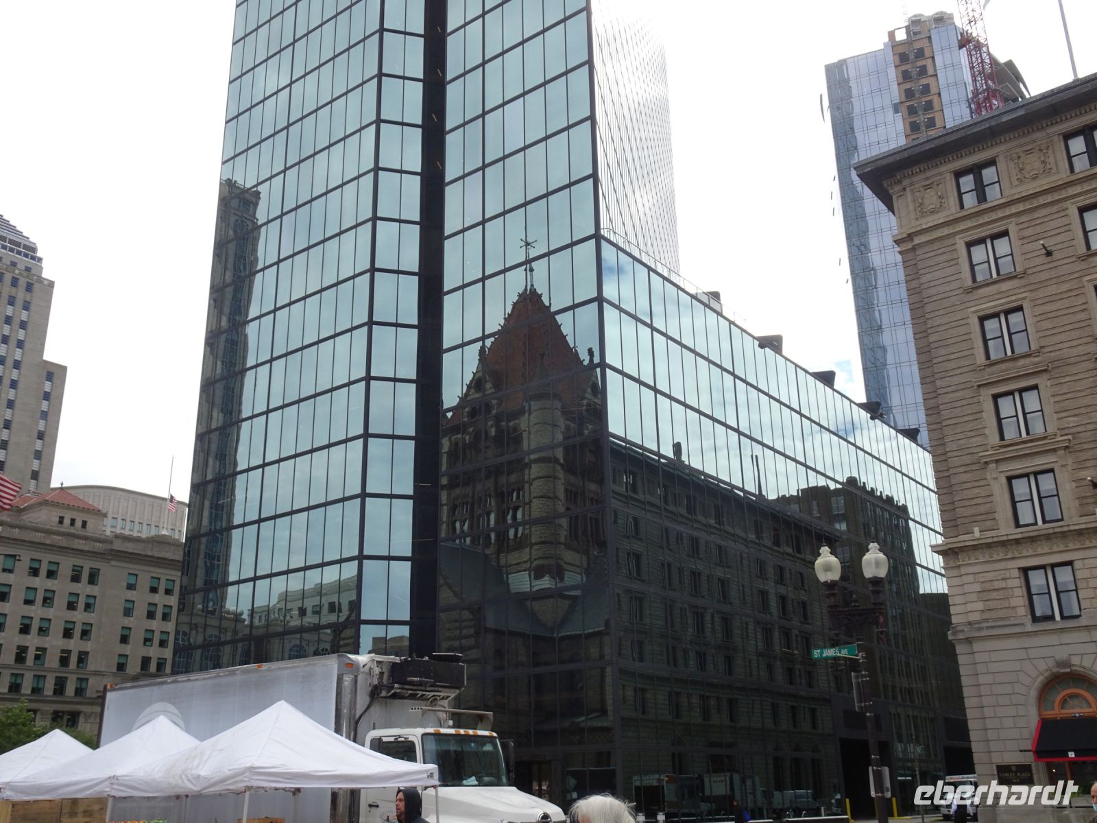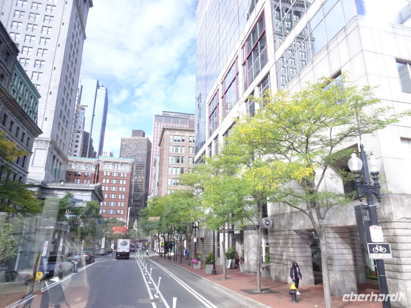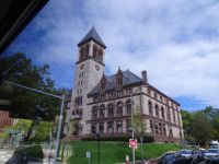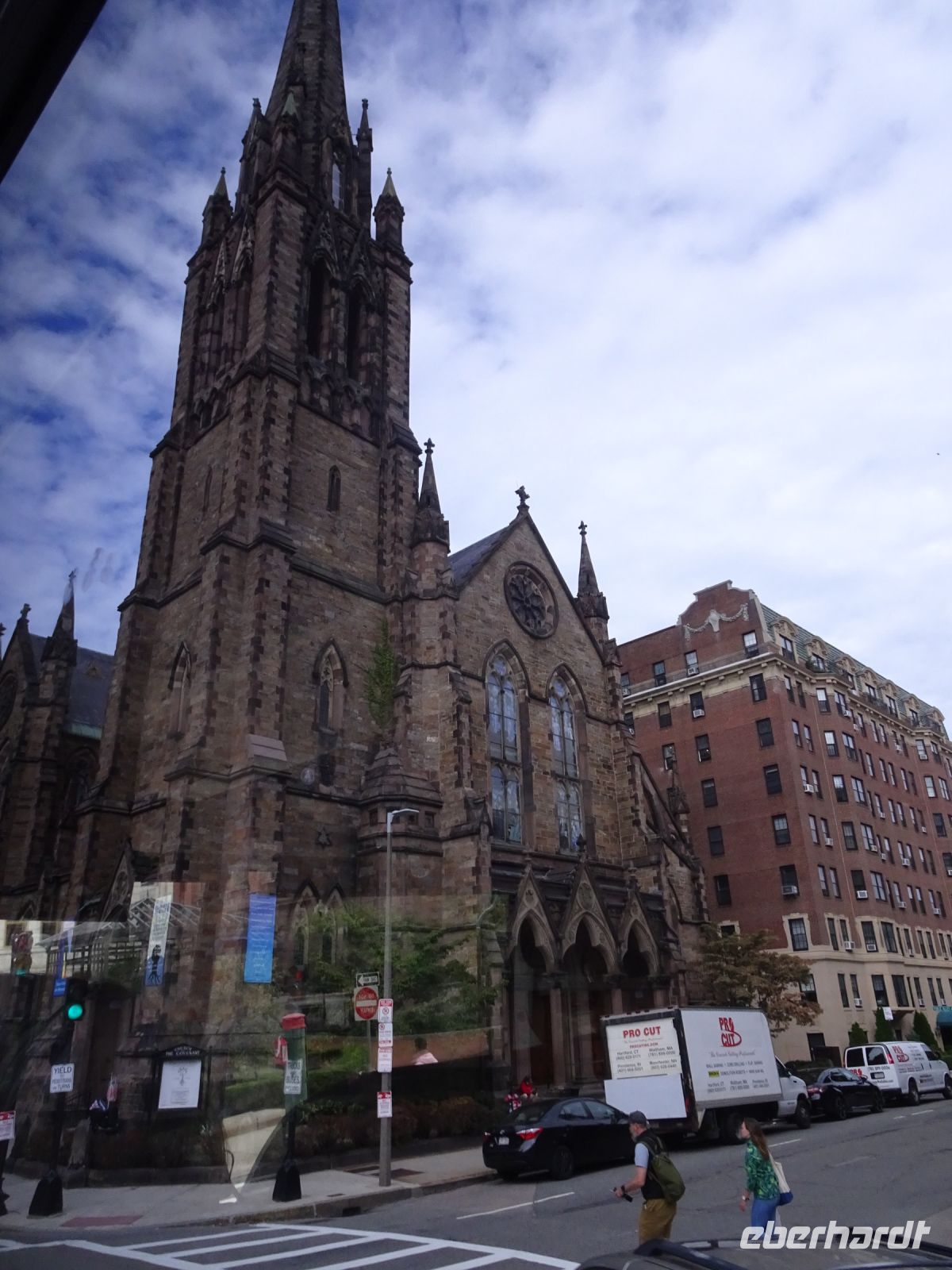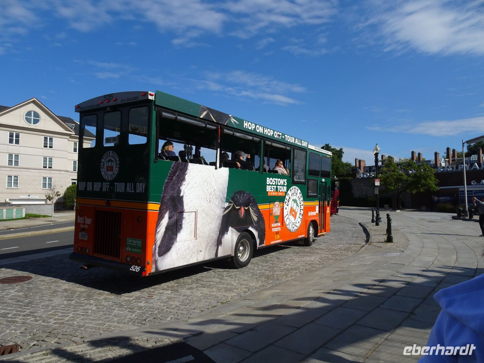 Ein Sahnehäubchen auf unserer Rundreise folgt zum Abschluss. Zunächst einmal müssen wir aber aus checken. Natürlich geht das nicht ohne ein Miniproblem ab, wie sollte es auch anders sein. Eine Kreditkarte wurde nicht richtig gezogen, wir müssen noch einmal zur Rezeption und das in Ordnung bringen. In der Zwischenzeit haben alle anderen Gäste ihre Koffer und die heutige Stadtführerin gefunden. Wir sind in Boston, der größten Stadt in Neuengland/USA und Massachusetts. Entsprechend haben wir es wieder mit spiegelverglasten Wolkenkratzern zu tun. Mit dem Bus fahren wir durch Boston Downtown und am Hafen entlang. Unser erster Stopp gilt dem ältesten noch seetüchtigem Segelschiff der Welt (18. Jahrhundert). Es ist der Drei-Master USS Constitution mit einer bewegten Geschichte. Gegenüber vom Hafen befinden sich hübsche Häuschen, eines mit einem seltsamen Dachaufbau. Von hier aus haben die Seemannsfrauen, in Erwartung ihrer Männer früher über den Hafen und das Meer schauen können. Unsere Fahrt geht weiter durch die Stadt. Wir bewundern Museen von Außen, U-Bahn-Eingänge und Kirchen, das Theaterviertel und vieles mehr. Am Copley Square steigen wir aus. Wir bewundern die schönen Fresken der Trinity Church und besuchen die öffentliche Bibliothek. Anschließend fahren wir nach Cambridge zum Gelände der berühmten Harvard Universität, die immerhin schon 1636 gegründet wurde und damit die älteste Universität der Vereinigten Staaten ist. Hier befindet sich unter anderem die Harry Elkins Widener Bibliothek, deren Namen auf den Sohn einer reichen Familie zurückgeht, der mit seinem Vater beim Titanic-Unglück ums Leben kam. Harry Widener war Harvard Absolvent und leidenschaftlicher Sammler von Büchern und Schriften. Er besaß unter anderem ein Schreiben von William Shakespeare und eine Gutenberg Bibel. Nach seinem Tod spendete seine Mutter 200.000 US-Dollar für den Aufbau einer Bibliothek, die die Werke ihres Sohnes aufbewahren sollte. Von Cambridge fahren wir zurück nach Boston und legen bei schönstem Sonnenschein eine Pause am Quincy Market ein.