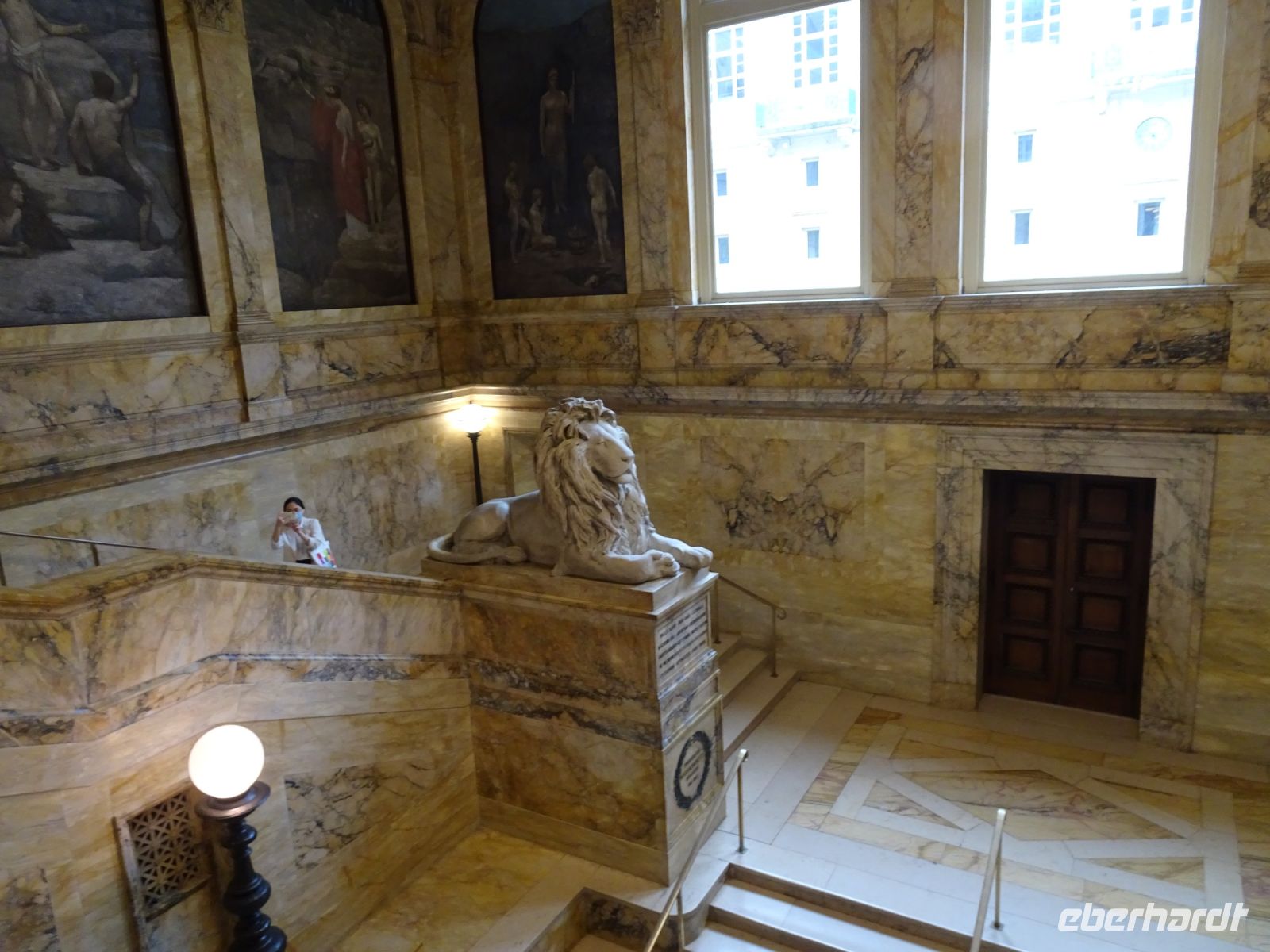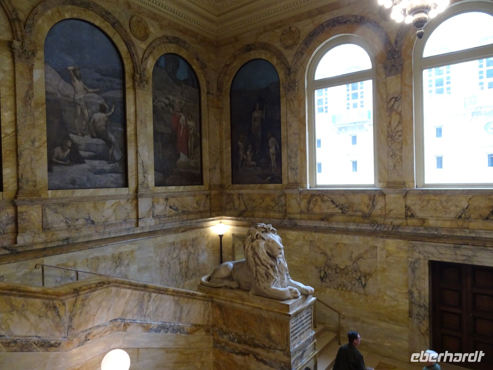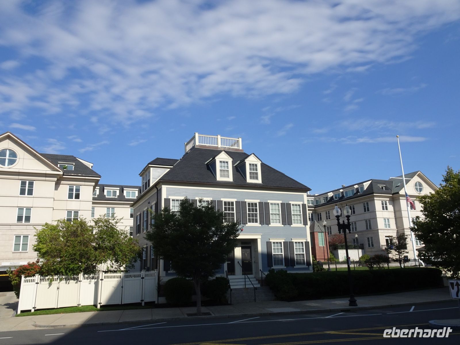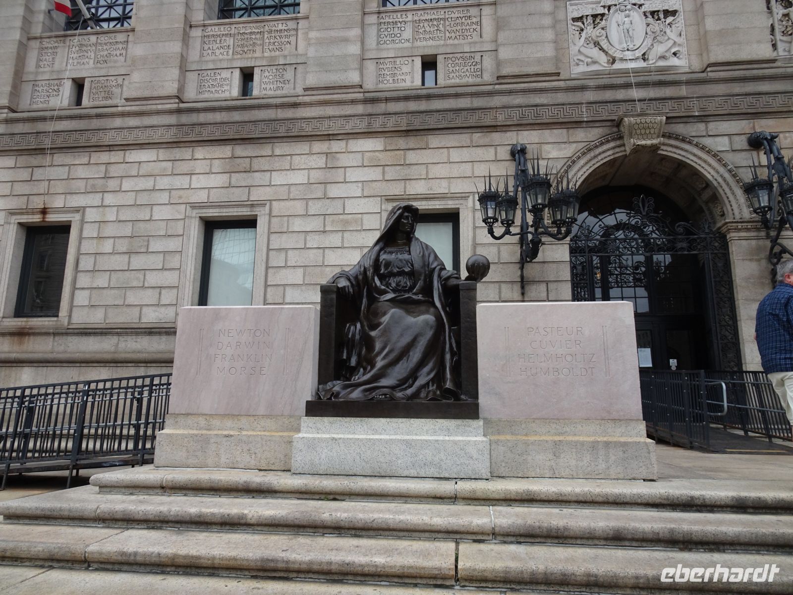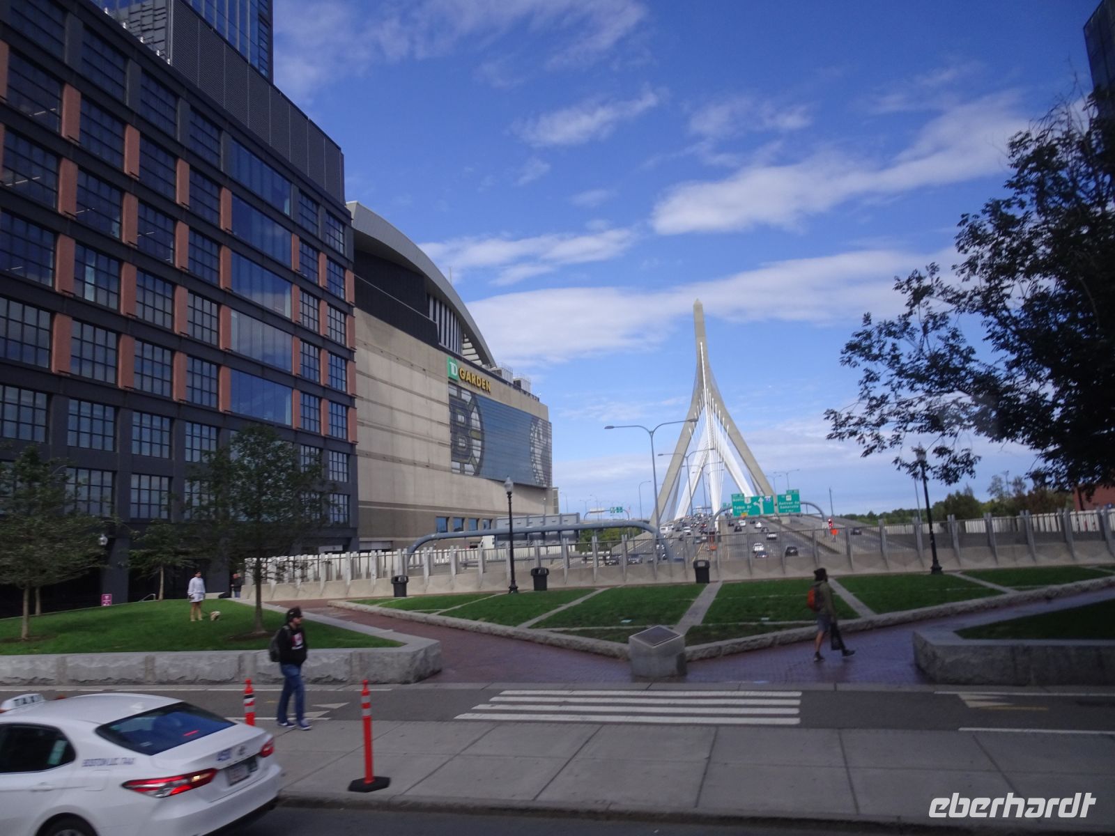 Ein Sahnehäubchen auf unserer Rundreise folgt zum Abschluss. Zunächst einmal müssen wir aber aus checken. Natürlich geht das nicht ohne ein Miniproblem ab, wie sollte es auch anders sein. Eine Kreditkarte wurde nicht richtig gezogen, wir müssen noch einmal zur Rezeption und das in Ordnung bringen. In der Zwischenzeit haben alle anderen Gäste ihre Koffer und die heutige Stadtführerin gefunden. Wir sind in Boston, der größten Stadt in Neuengland/USA und Massachusetts. Entsprechend haben wir es wieder mit spiegelverglasten Wolkenkratzern zu tun. Mit dem Bus fahren wir durch Boston Downtown und am Hafen entlang. Unser erster Stopp gilt dem ältesten noch seetüchtigem Segelschiff der Welt (18. Jahrhundert). Es ist der Drei-Master USS Constitution mit einer bewegten Geschichte. Gegenüber vom Hafen befinden sich hübsche Häuschen, eines mit einem seltsamen Dachaufbau. Von hier aus haben die Seemannsfrauen, in Erwartung ihrer Männer früher über den Hafen und das Meer schauen können. Unsere Fahrt geht weiter durch die Stadt. Wir bewundern Museen von Außen, U-Bahn-Eingänge und Kirchen, das Theaterviertel und vieles mehr. Am Copley Square steigen wir aus. Wir bewundern die schönen Fresken der Trinity Church und besuchen die öffentliche Bibliothek. Anschließend fahren wir nach Cambridge zum Gelände der berühmten Harvard Universität, die immerhin schon 1636 gegründet wurde und damit die älteste Universität der Vereinigten Staaten ist. Hier befindet sich unter anderem die Harry Elkins Widener Bibliothek, deren Namen auf den Sohn einer reichen Familie zurückgeht, der mit seinem Vater beim Titanic-Unglück ums Leben kam. Harry Widener war Harvard Absolvent und leidenschaftlicher Sammler von Büchern und Schriften. Er besaß unter anderem ein Schreiben von William Shakespeare und eine Gutenberg Bibel. Nach seinem Tod spendete seine Mutter 200.000 US-Dollar für den Aufbau einer Bibliothek, die die Werke ihres Sohnes aufbewahren sollte. Von Cambridge fahren wir zurück nach Boston und legen bei schönstem Sonnenschein eine Pause am Quincy Market ein.