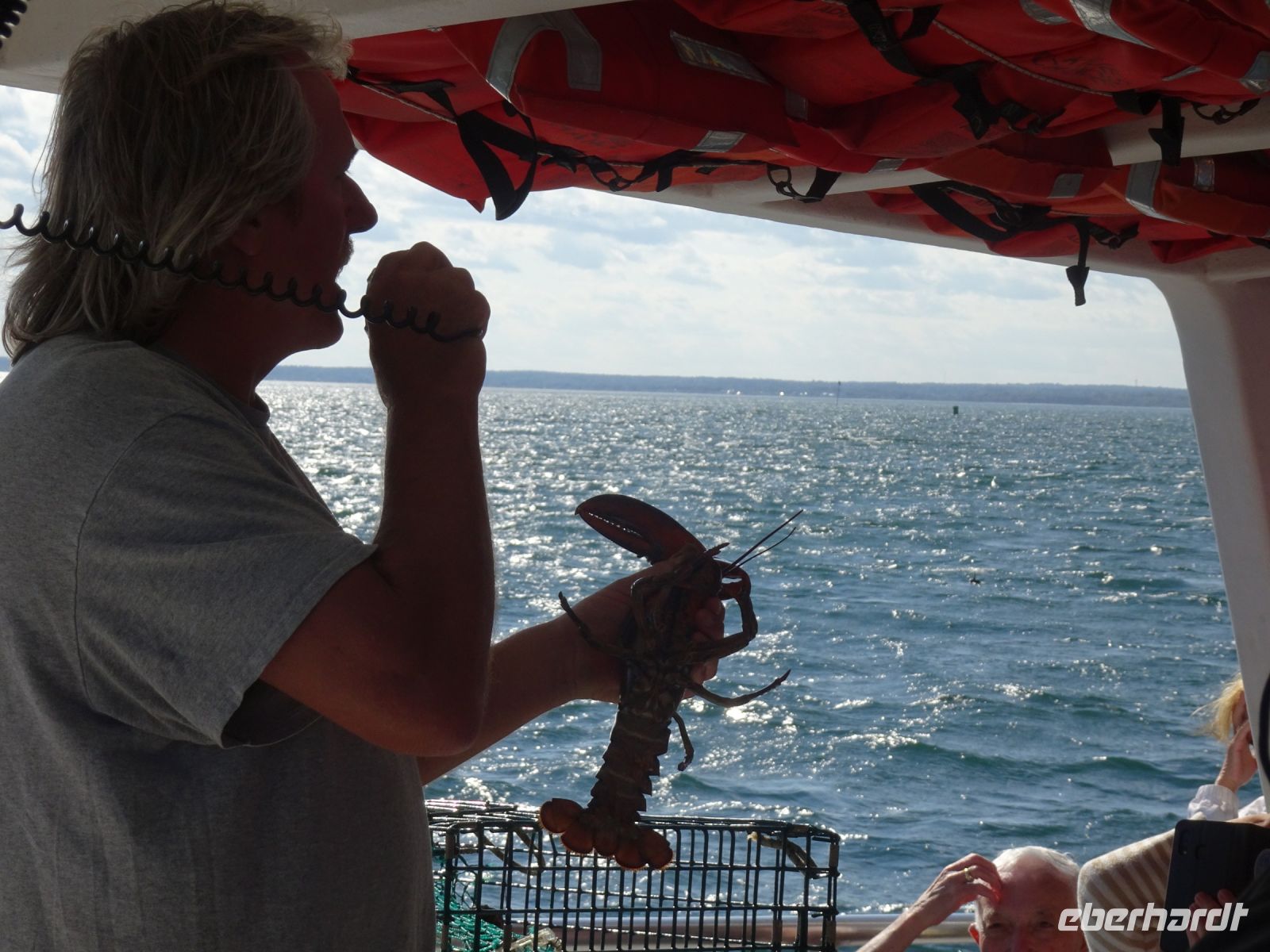 Eine neue Herausforderung steht uns bevor. Wir reisen in die USA ein. Obwohl wir vermeintlich schon mehrfach unsere Visa, Pässe, Gesundheitsbescheinigungen usw usw vorgelegt haben, müssen wir uns dennoch in eine lange Schlange einreihen, um die Einreiseformalitäten zu erledigen. Als es erstmal losgeht, geht es ziemlich flott voran und die Bedenken, zu spät zum Ausflug zu kommen, sind umsonst. NCL hatte den von uns gebuchten Ausflug gecancelt, davon ließen wir uns allerdings nicht beeindrucken und entschieden uns für eine Alternative namens "Kennebunkport und Scenic Cruise", was sich im Nachhinein als gute Entscheidung entpuppte. Denn zu diesem Ausflug gehört ein kurze Bootsfahrt, auf der unser Kapitän plötzlich einen Lobsterkäfig vom Meeresboden angelte und uns damit vertraut machte, wie diese kostbaren Tierchen vermessen werden und uns erlaubte, diese in die Hand zu nehmen und zu fotografieren. Zurück an Land entscheiden wir uns noch einmal für eine Lobster Roll, die mit der ersten allerdings qualitativ nicht mithalten kann, preislich allerdings schon. Noch einmal die Straße rauf und runter, in jeden Souvenierladen rein und dann geht es leider schon zurück zum Schiff.