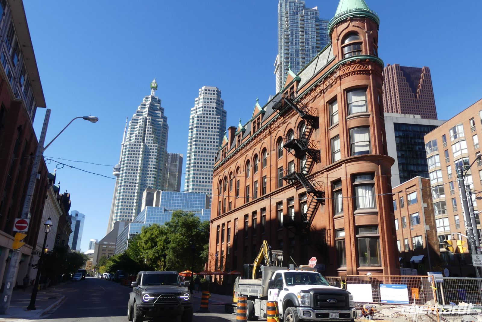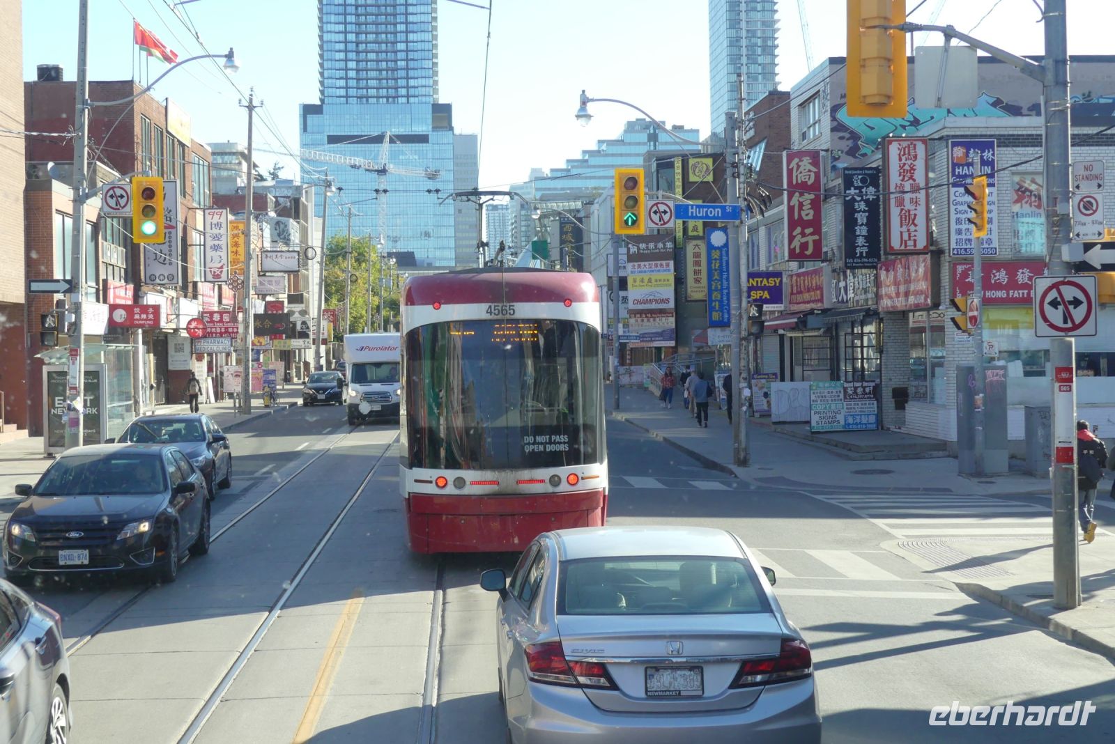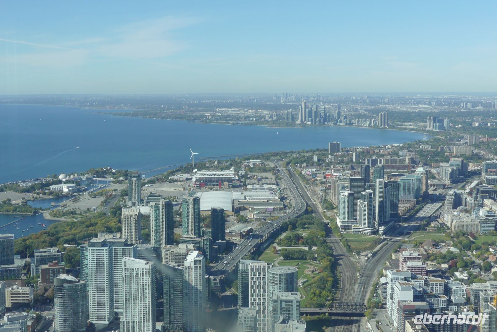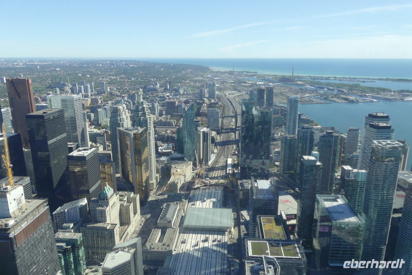 Letztendlich starten wir 90 Minuten später. Es sind acht Stunden Flug über Amsterdam, Schottland, die gut zu sehende Südspitze Grönlands und Labrador in Ostkanada begleitet von der Nachmittagssonne, die für uns auch noch in Toronto bei der Landung scheint. In Toronto erledigen wir die Zollerklärung am Automaten. Am Zoll erwischt es zwei von uns mit einer intensiven Kofferkontrolle. Aber auch das wird gemeistert und so können wir endlich mit unserer örtlichen Reiseleiterin Kathy und Fahrer Marco ins Stadtzentrum fahren.