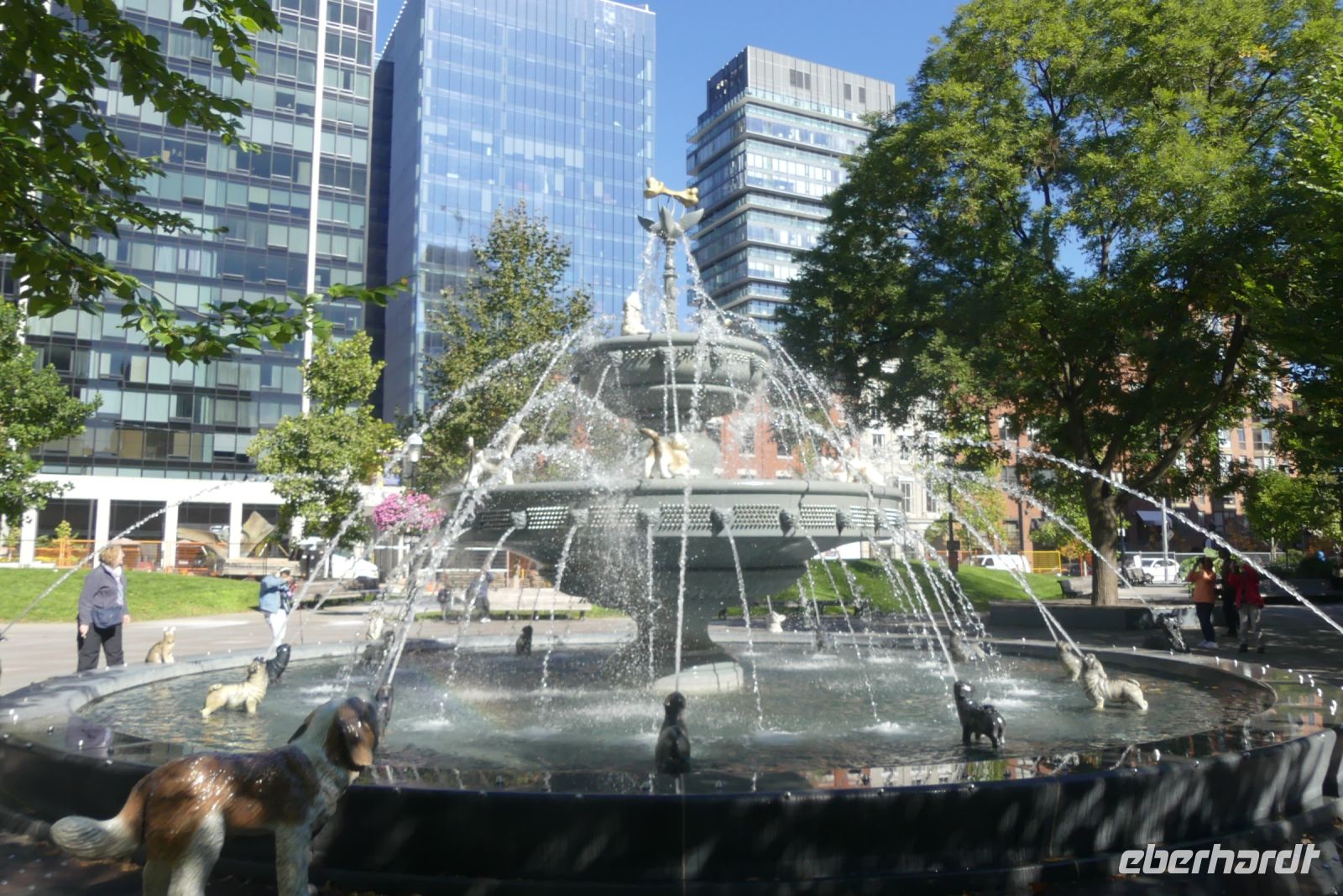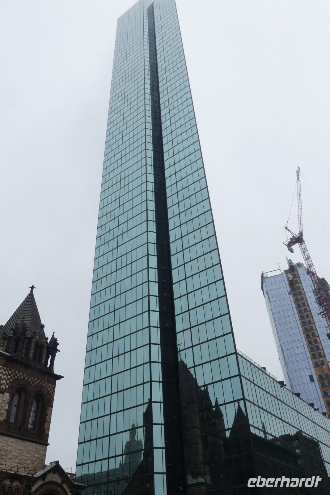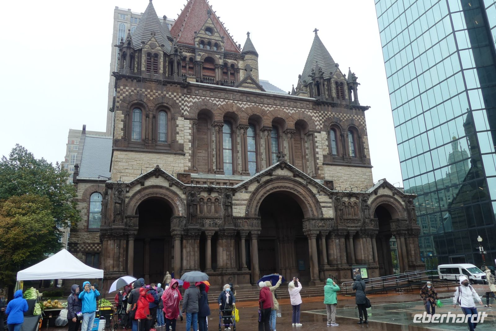 Den ersten Halten haben wir am wohl bekanntesten Platz der Stadt, dem Copley Square. Dieser ist von vier markanten Gebäuden geprägt: der Trinity Kirche, der öffentlichen Bibliothek (über dem Eingang mit dem Schriftzug „free to all“), dem John Hancock Tower (62 Etagen und mit 241 Meter höchstes Gebäude der Stadt) sowie dem Fairmont Copley Plaza Hotel.