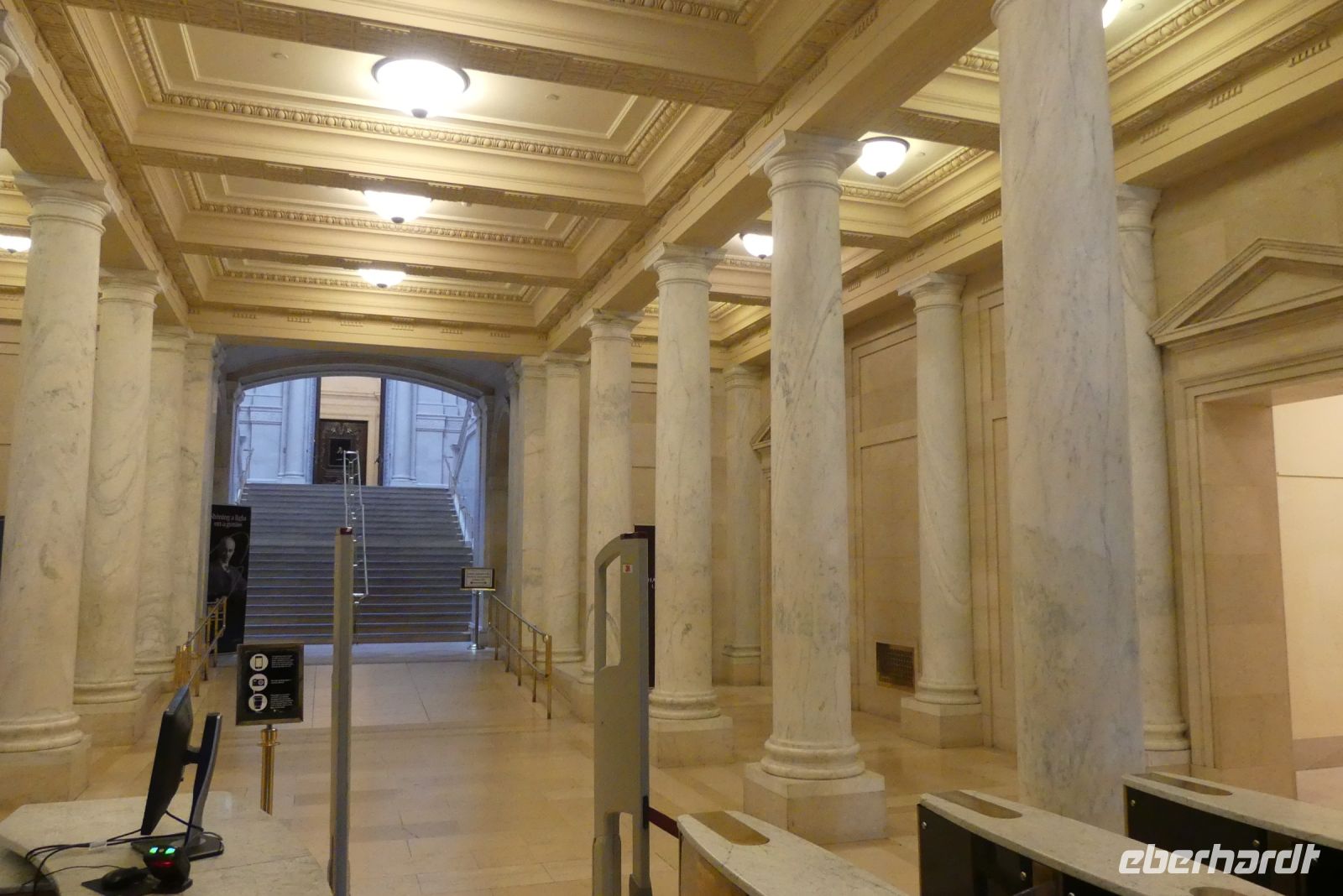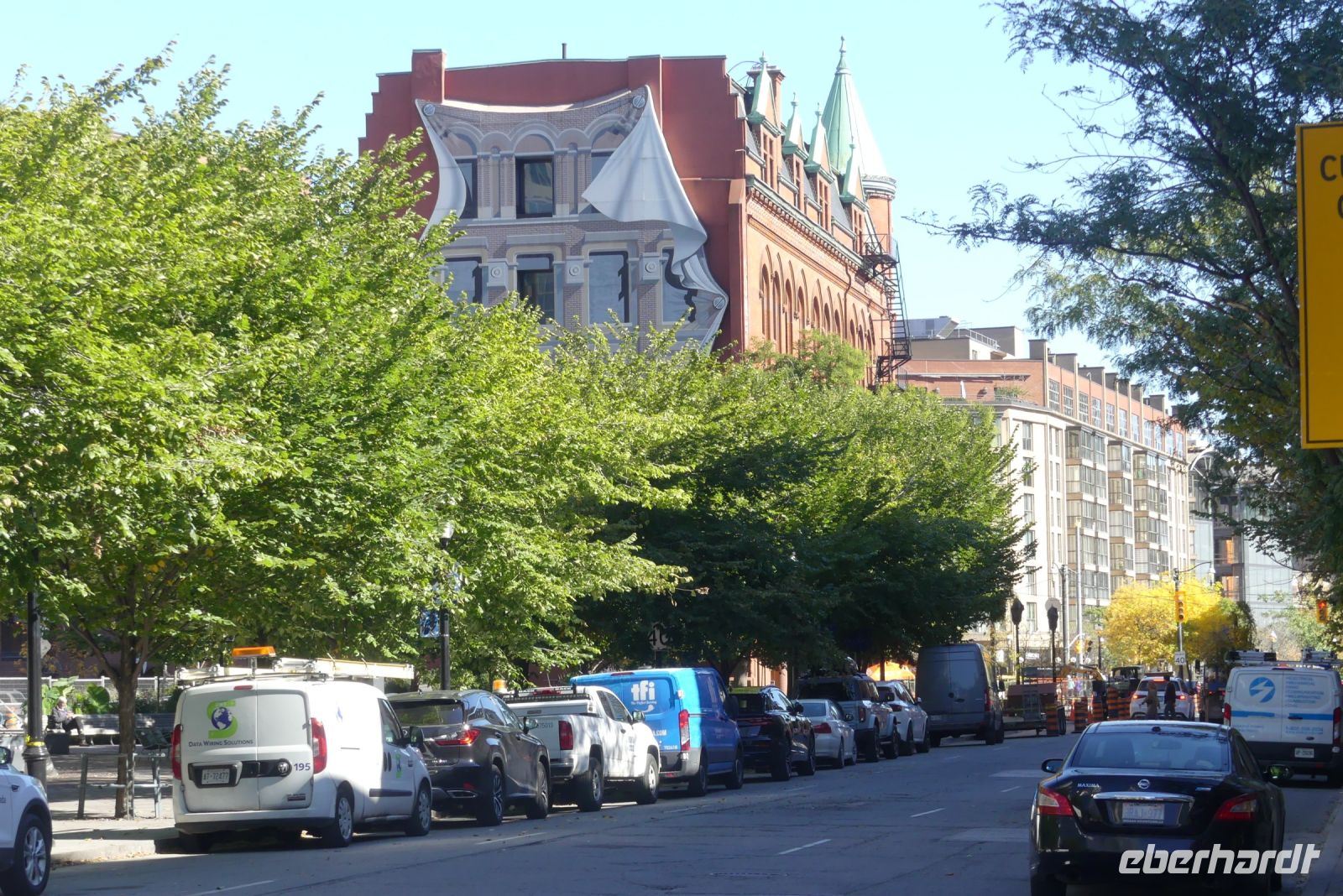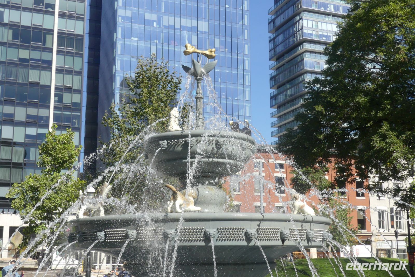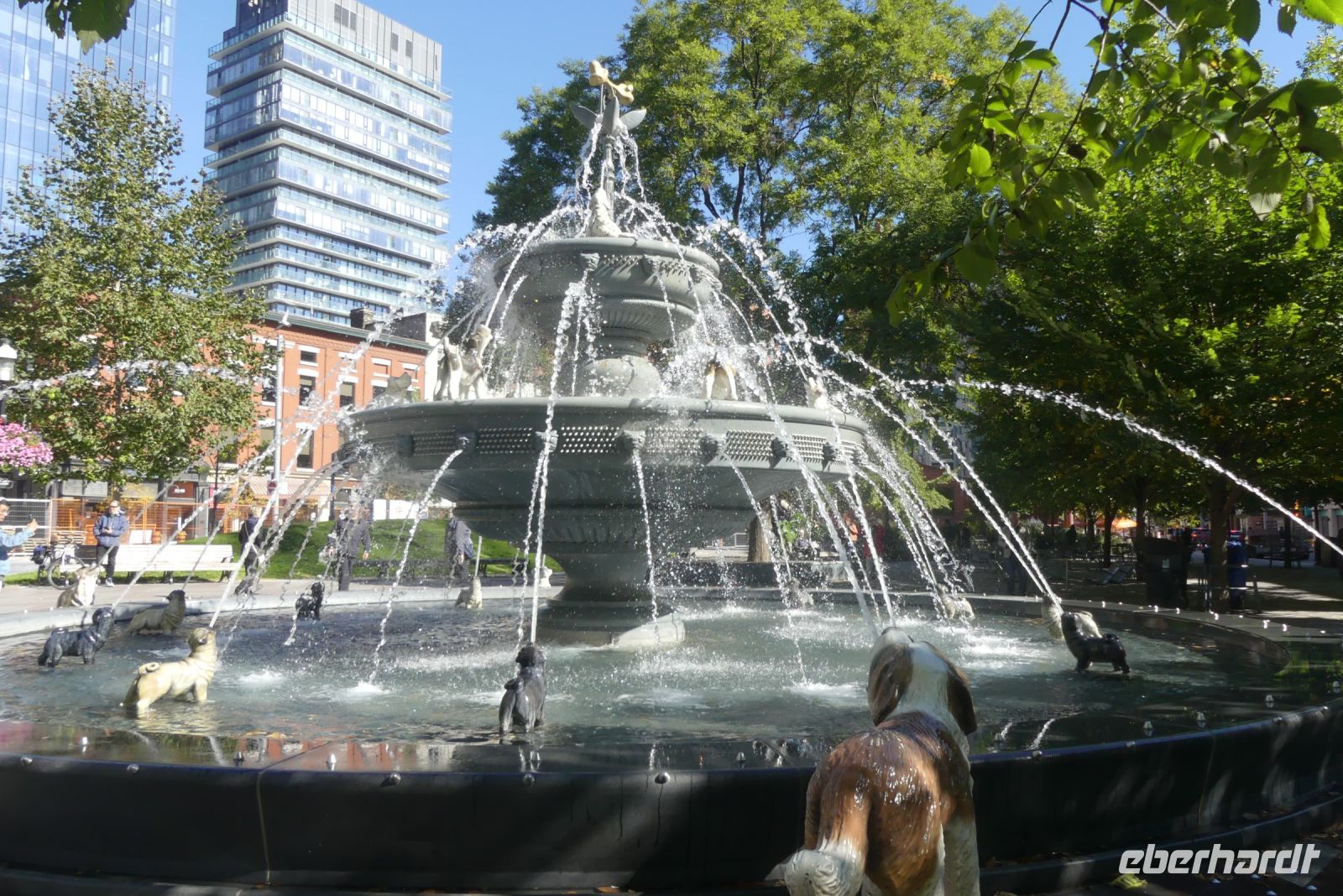 Den ersten Halten haben wir am wohl bekanntesten Platz der Stadt, dem Copley Square. Dieser ist von vier markanten Gebäuden geprägt: der Trinity Kirche, der öffentlichen Bibliothek (über dem Eingang mit dem Schriftzug „free to all“), dem John Hancock Tower (62 Etagen und mit 241 Meter höchstes Gebäude der Stadt) sowie dem Fairmont Copley Plaza Hotel.