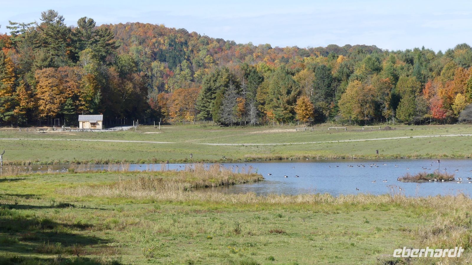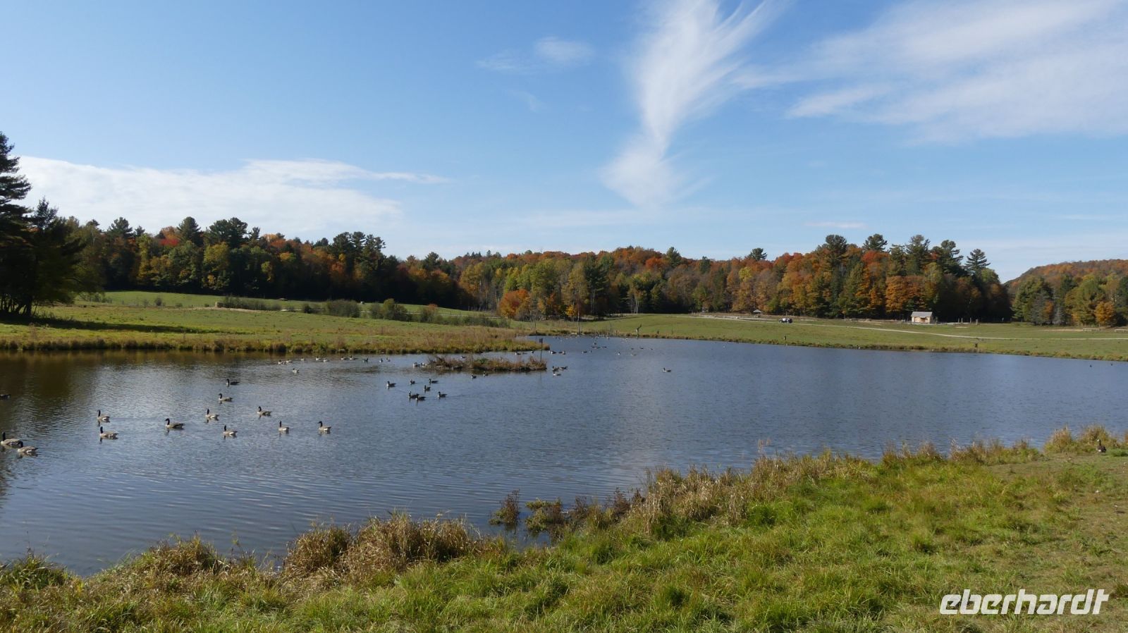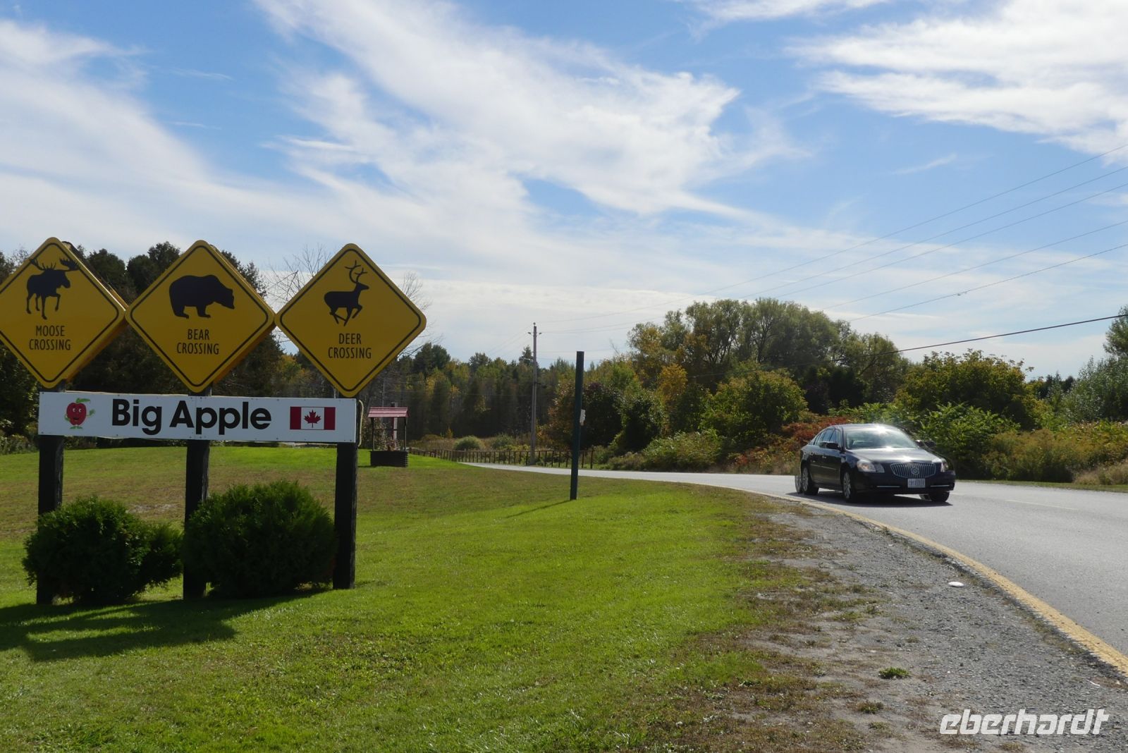 Zum Mittag halten wir am „Big Apple“, eine originelle Raststätte am Highway, deren Spezialität der Apple Pie ist. Der Apfelkuchen wird hier frisch in der eigenen Bäckerei gebacken. Nach einer kurzen Fährüberfahrt über einen Nebenarm des St. Lorenz-Stroms probieren wir an einem Picknickplatz den Apple Pie…den meisten schmeckt er allerdings zu süß. Gleichzeitig ist dieser Halt eine gute Gelegenheit für eine Vorstellungsrunde.