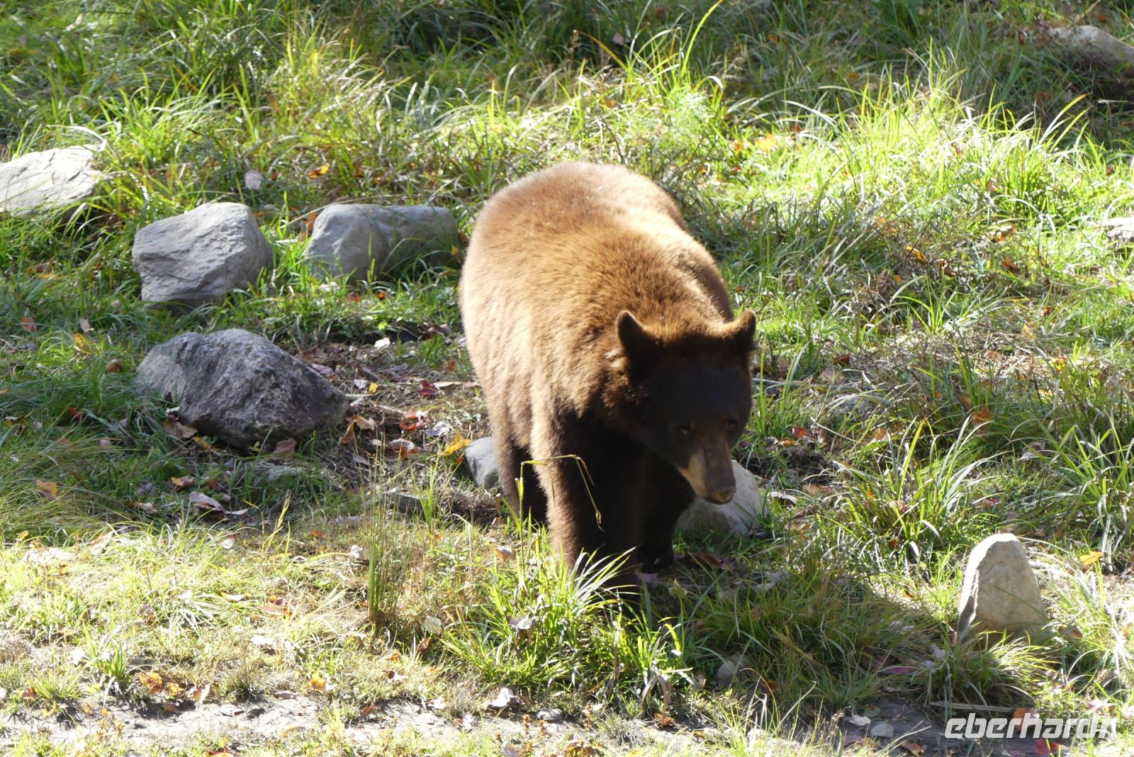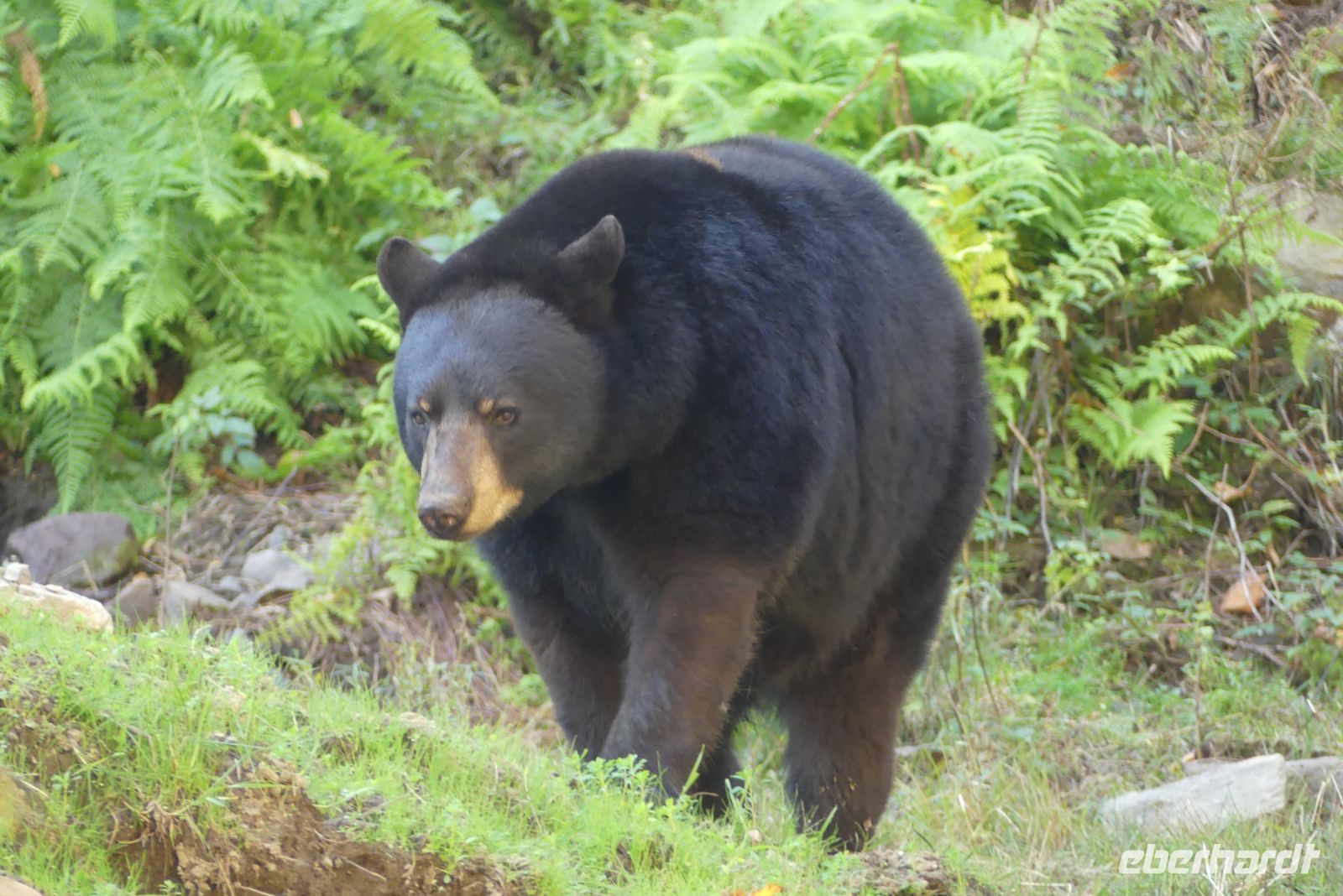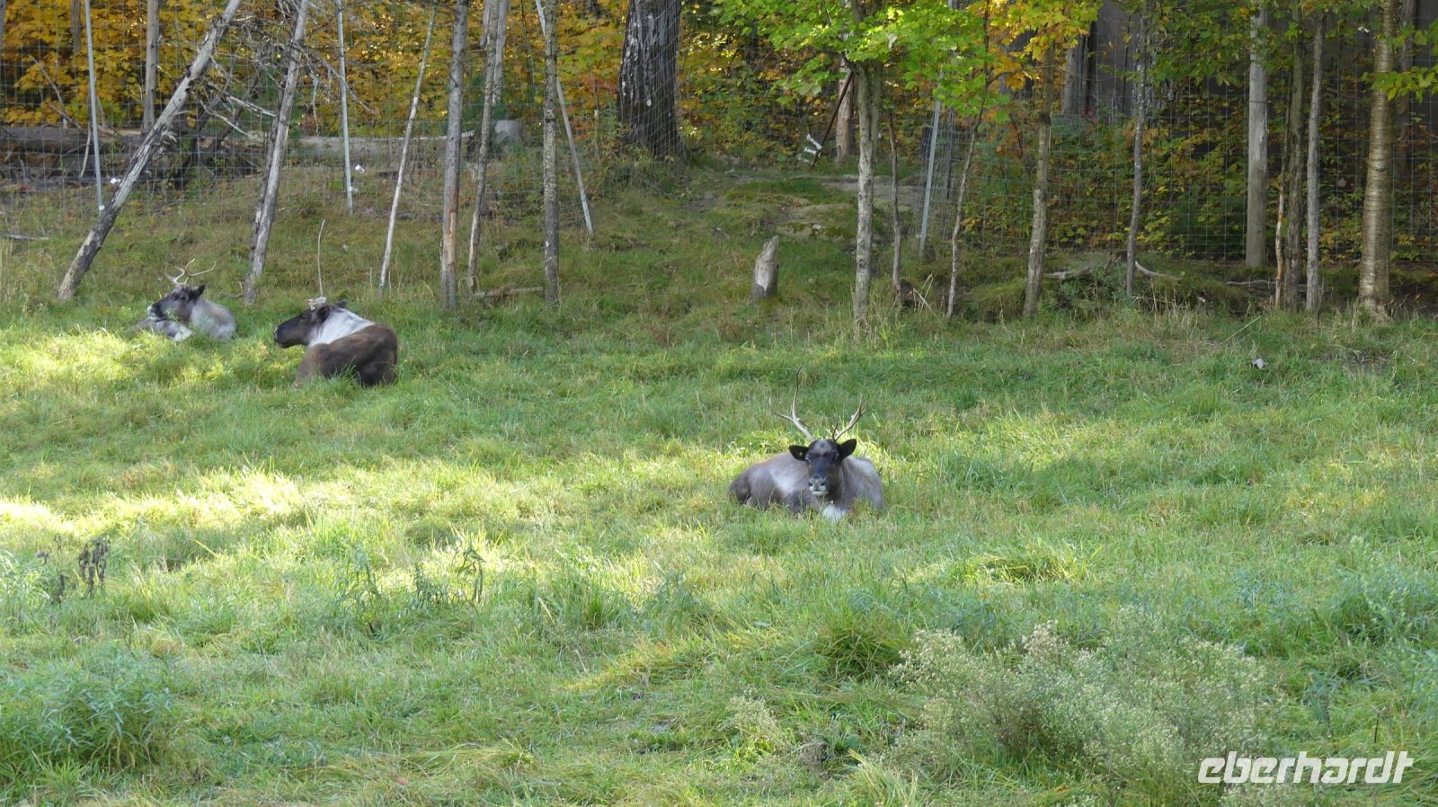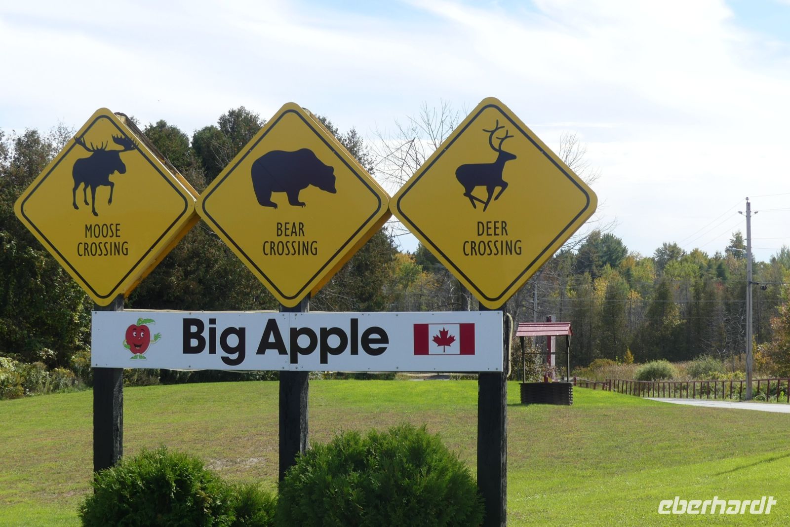 Unser erstes Tagesziel ist der Richtung Montreal gelegene Omega-Wildpark. In diesem Park wurden so ziemlich alle Wildtieren angesiedelt, die ihre Heimat in Kanada haben. Ähnlich wie bei einer Safari begeben wir uns mit einem Fahrzeug auf Entdeckungsreise. Wir sitzen in einem älteren Modell eines Schulbusses. Durch die offenen Fenster können wir fotografieren und Tiere mit Möhren füttern. Vor allem die Wapitis warten schon auf diesen Imbiss. Sie sind an die Fahrzeuge gewöhnt und nicht scheu. Wapitis ähneln Hirschen und zählen auch zu der Familie der Hirsche. Bei dieser Tour durch eine schöne hügelige Landschaft mit toller Laubfärbung begegnen wir außerdem Wildschweinen, Karibus, Schwarzbären, Polarfüchsen, Wölfen, Bisons u. a. m.