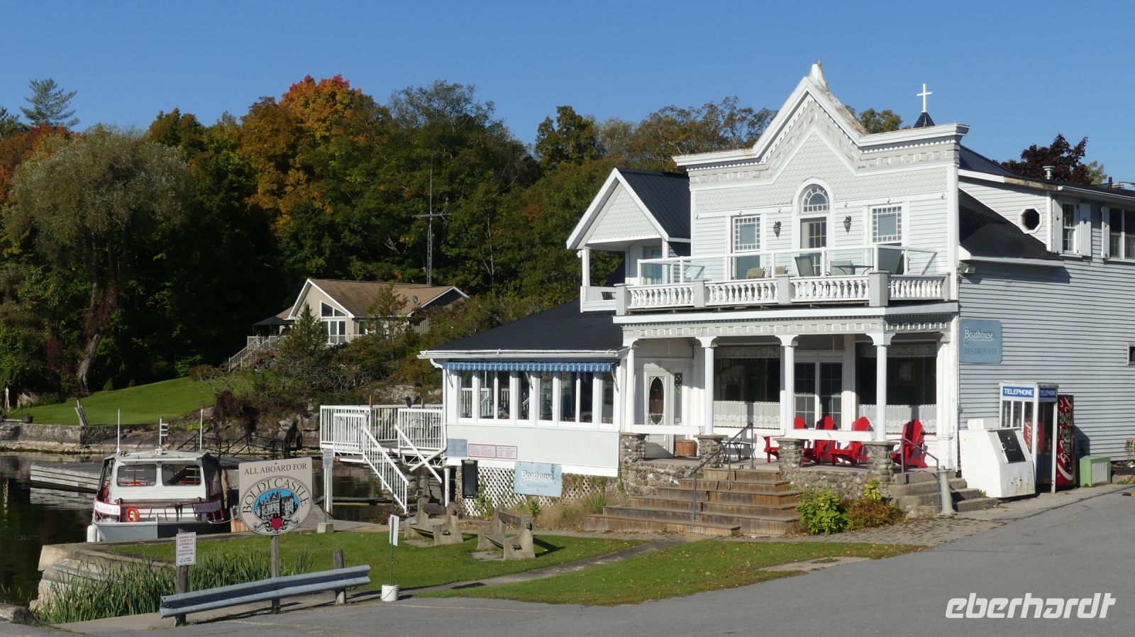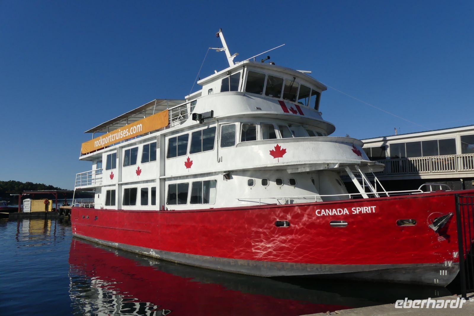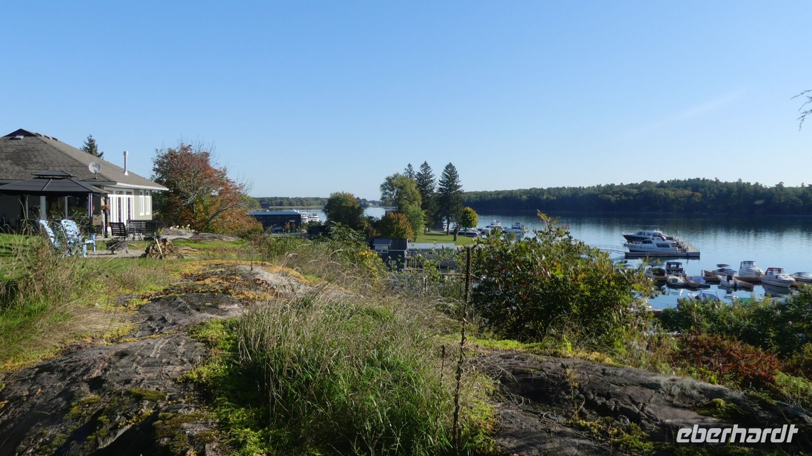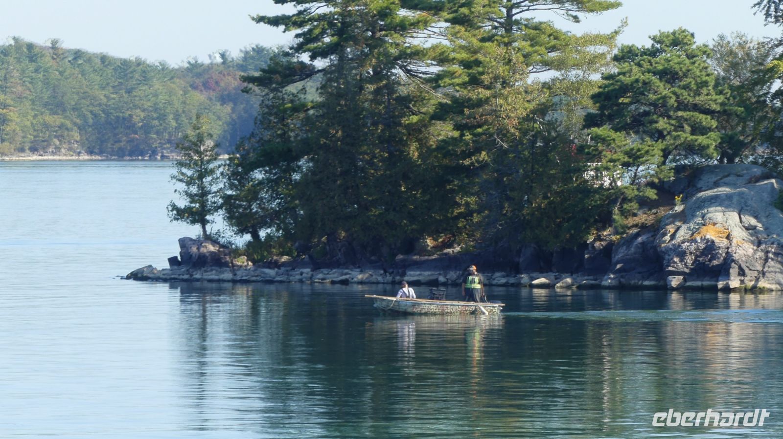Auch heute haben wir Glück mit dem Wetter. Sonnenschein und blauer Himmel bieten optimale Bedingungen für unsere Bootsfahrt durch die Inselwelt im Ausflussgebiet des St.-Lorenz-Stromes aus dem Ontariosee. Von der Ortschaft Rockport startet unser Ausflugsschiff ins Land der tausend Inseln. Genau genommen sind es nicht tausend, sondern 1.864 Inseln. Für ihre Entstehung hat der weiße Mann wissenschaftliche Erklärungen, aber mir gefällt die Geschichte der Ureinwohner besser, die besagt, dass Blütenblätter vom Himmel fielen und diese Region in einen Garten Gottes verwandelten. Als Insel wird Land anerkannt, dass mindesten 2x2 Meter hat und ein Baum darauf steht.