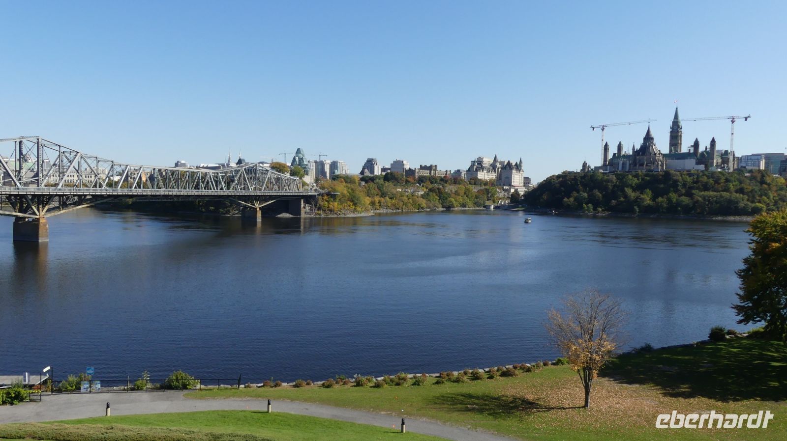 Auf der Fahrt in die kanadische Hauptstadt Ottawa halten wir mittags an einer Tim Hortons Raststätte. In Ottawa angekommen, beginnen wir unsere Stadtbesichtigung am Geschichtsmuseum. Das Canadian Museum of History ist in Form eines umgekippten Kanus gebaut. Von hier aus haben wir einen tollen Blick über den Ottawa-Fluss und die Altstadt mit dem riesigen Parlamentsgebäude. Unsere nächsten Halte sind: