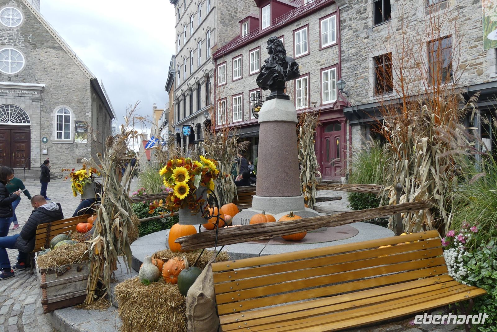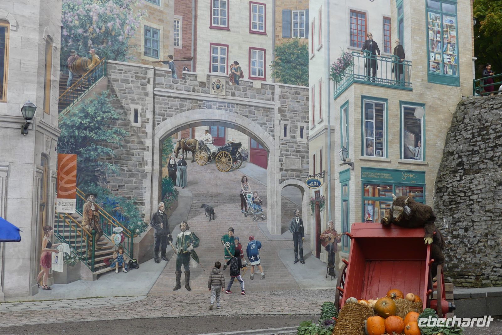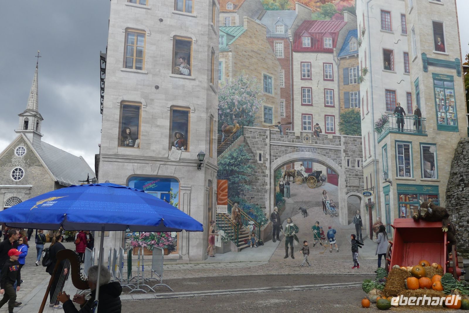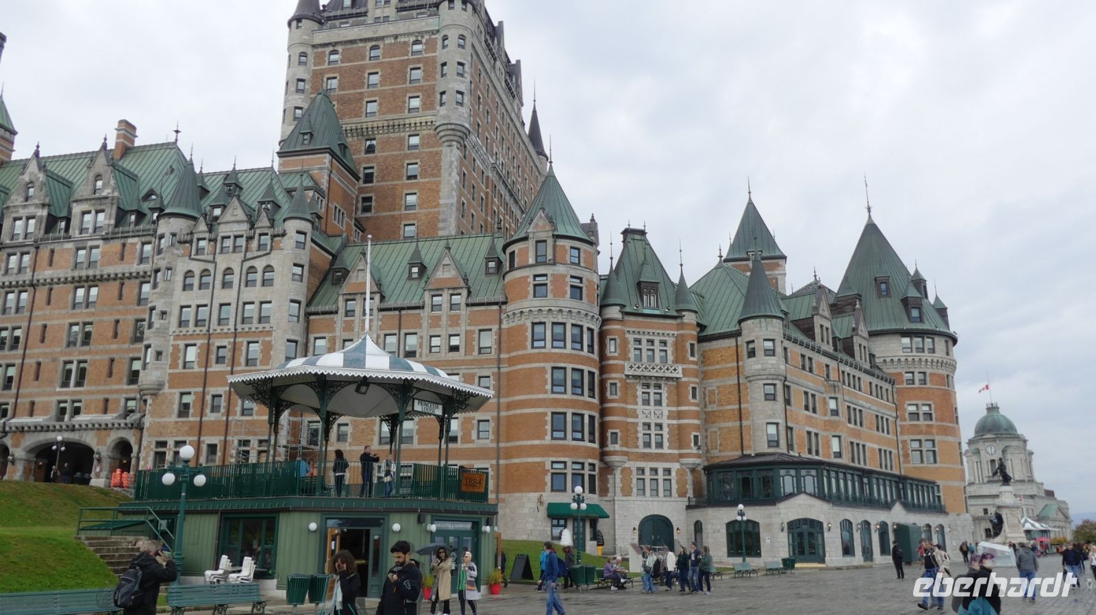 Auch für Quebec haben wir eine eigene Stadtführerin. Wie es der Zufall so will, ist auch Marina Schweizerin. Sie wird uns rund zwei Stunden ihre schöne Stadt zeigen und wir werden begeistert sein von ihrer Erzählweise und einer sehr angenehmen klaren Stimme. Zunächst unternehmen wir eine Orientierungsfahrt. Dabei sehen wir das Wohngebiet Montcalm mit schönen Häusern, Parkanlagen, die Zitadelle und das Parlamentsgebäude. Anschließend nehmen wir uns Zeit für einen ausgiebigen Spaziergang durch die Altstadt. Diese steht auf der UNESCO-Welterbeliste und teilt sich in die Ober- und Unterstadt. Auf der Terrasse Dufferin haben wir einen schönen Ausblick auf das Chateau Frontenac, auf Quebec und den St. Lorenz-Strom. In der Unterstadt gibt es malerische Gässchen wie die Rue de Petit Champlain mit Kunsthandwerkläden und Restaurants. Der Place Royale, ein schöner Platz umrahmt von kleinen geschmückten Steinhäusern, gibt eine beliebte Filmkulisse (Traumschiff; Leonardo DiCaprio in Catch me if you can) ab.