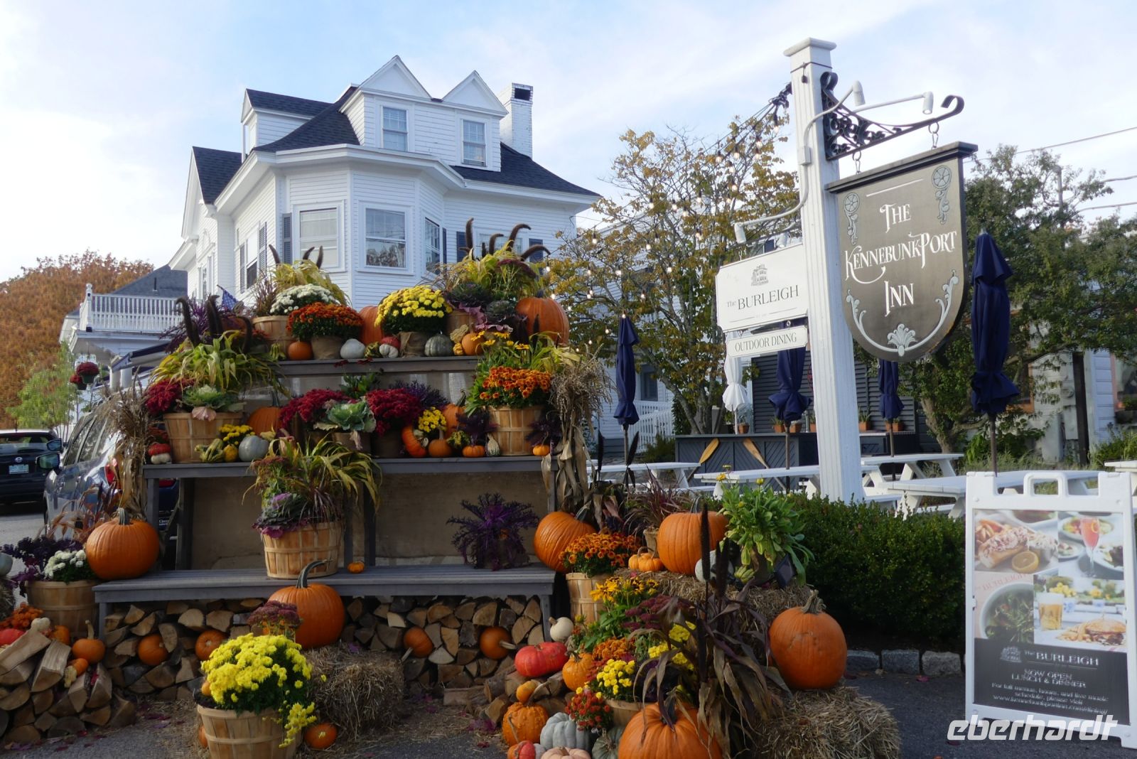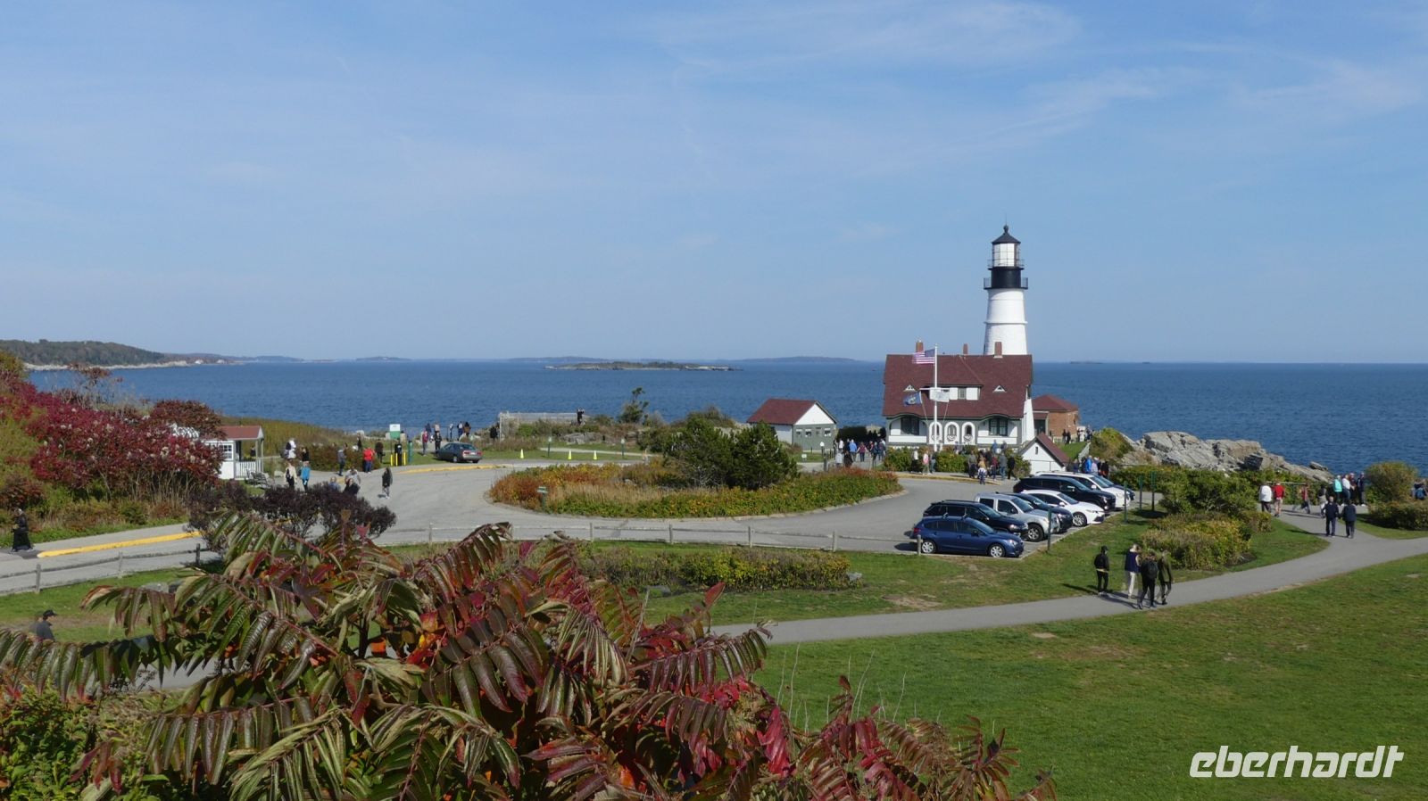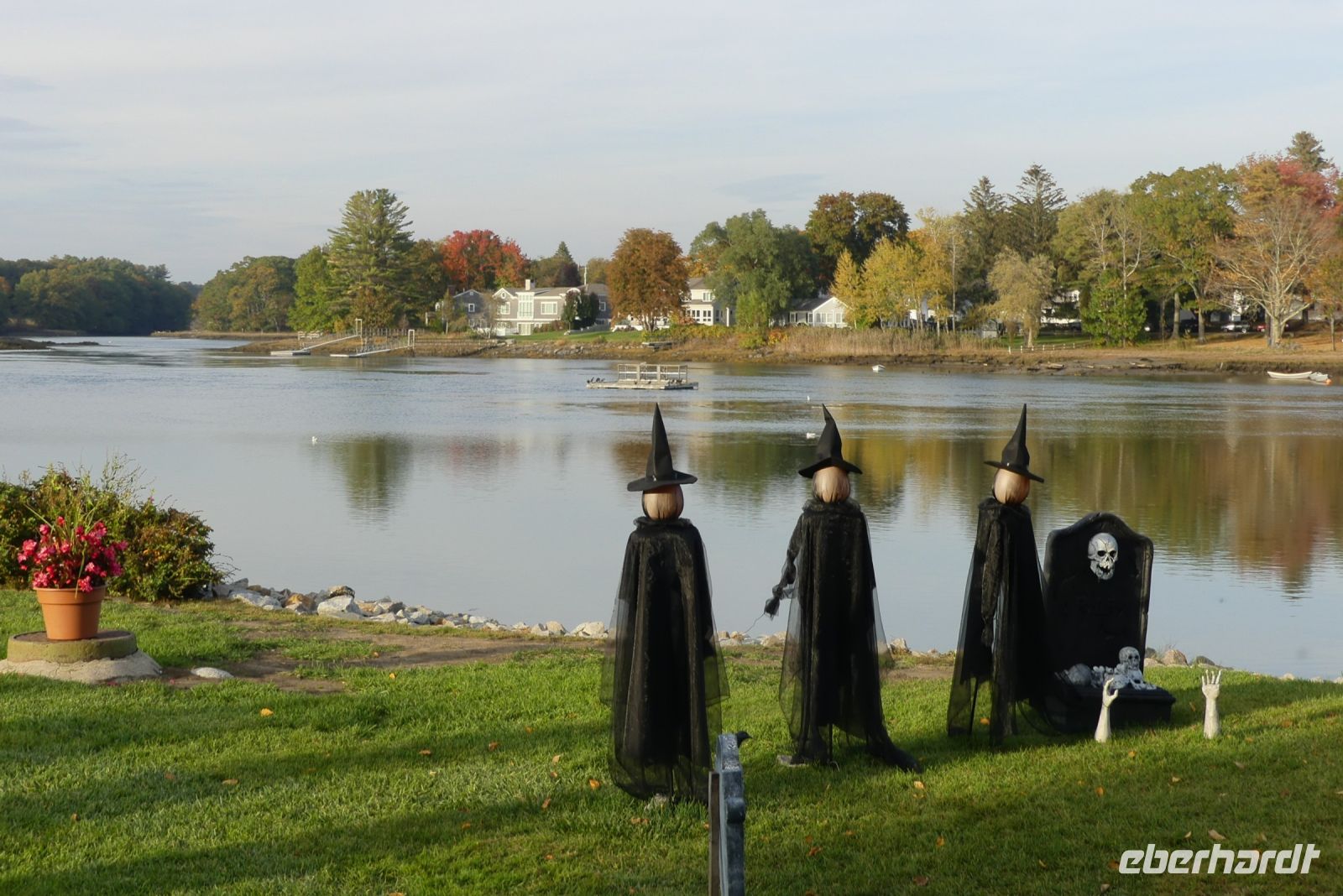 Bei diesem Ausflug lernen wir zunächst Portland etwas näher kennen. Über den Fore River fahren wir weiter nach Cape Elisabeth in South Portland. Wir halten hier, um den schönen Leuchtturm zu fotografieren. Anschließend erreichen wir Kennebunkport. Bekannt ist der Küstenort als beliebtes Seebad und als Sommersitz des früheren US-Präsidenten George H. W. Bush und seiner Familie. Das frühere Fischerdorf hat sich auf die vielen Besucher und Touristen eingestellt. Es gibt teure Lobsterbrötchen und viele Souvenirläden. Halloween wirft auch schon seine Schatten voraus. So grüßt an vielen Stellen im Ort, von Dächern, aus Fenstern und Vorgärten der Gruselschmuck.
