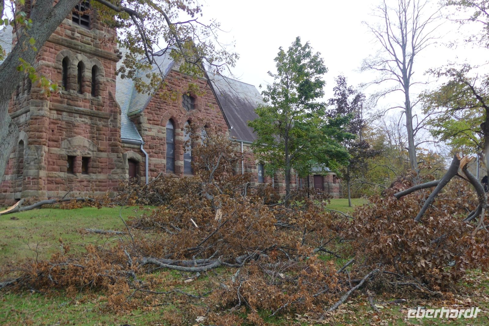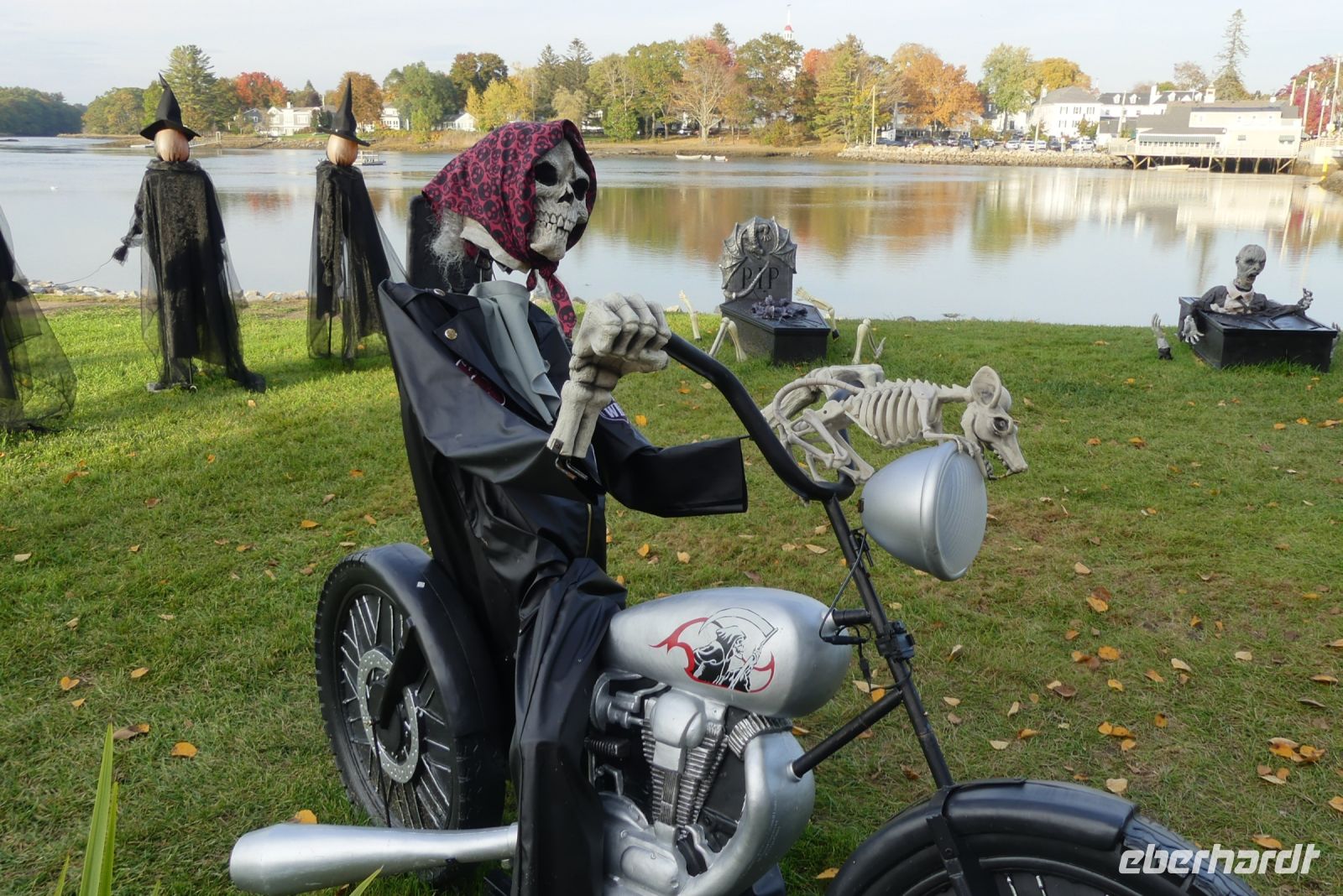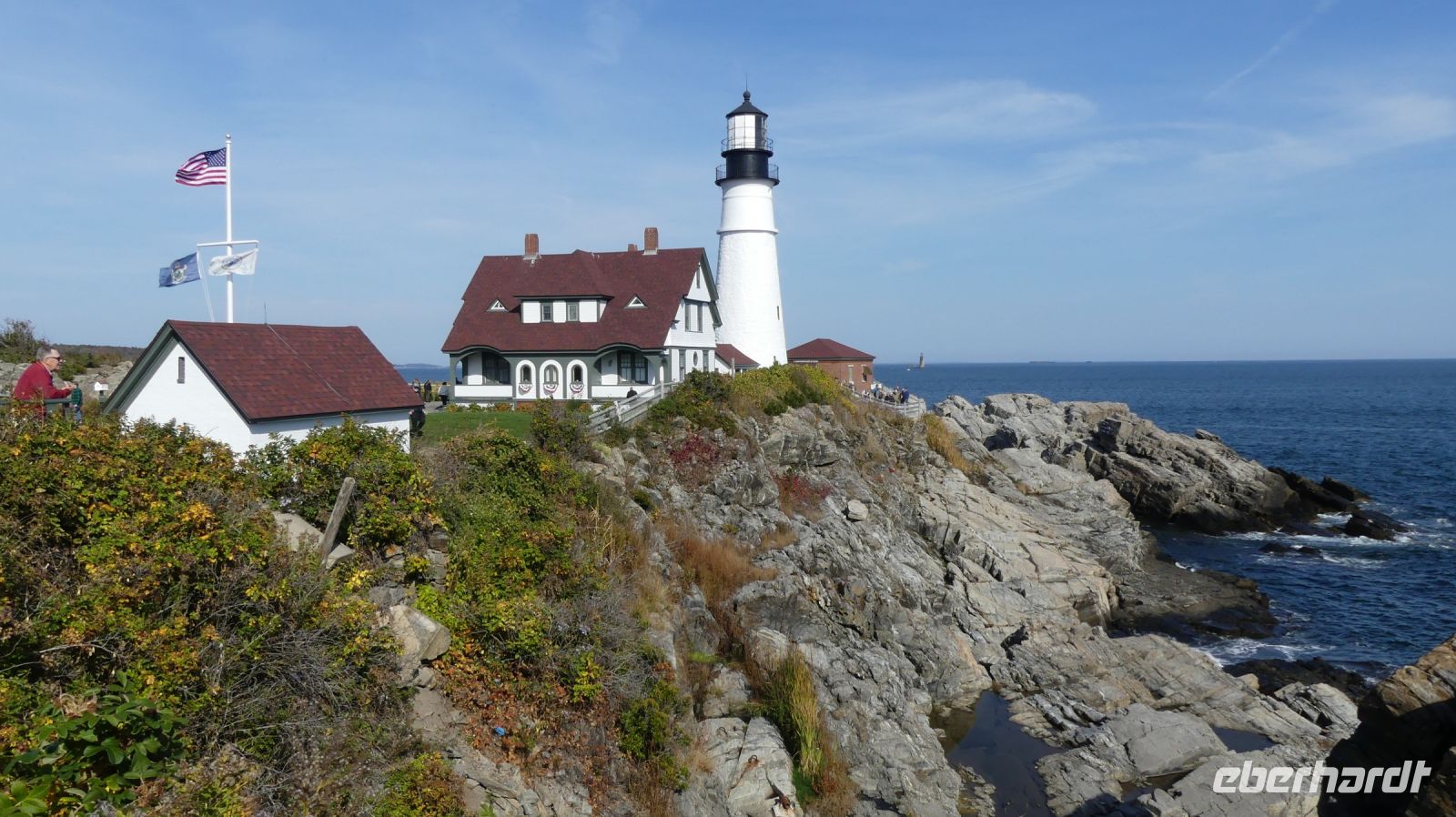 Bei diesem Ausflug lernen wir zunächst Portland etwas näher kennen. Über den Fore River fahren wir weiter nach Cape Elisabeth in South Portland. Wir halten hier, um den schönen Leuchtturm zu fotografieren. Anschließend erreichen wir Kennebunkport. Bekannt ist der Küstenort als beliebtes Seebad und als Sommersitz des früheren US-Präsidenten George H. W. Bush und seiner Familie. Das frühere Fischerdorf hat sich auf die vielen Besucher und Touristen eingestellt. Es gibt teure Lobsterbrötchen und viele Souvenirläden. Halloween wirft auch schon seine Schatten voraus. So grüßt an vielen Stellen im Ort, von Dächern, aus Fenstern und Vorgärten der Gruselschmuck.
