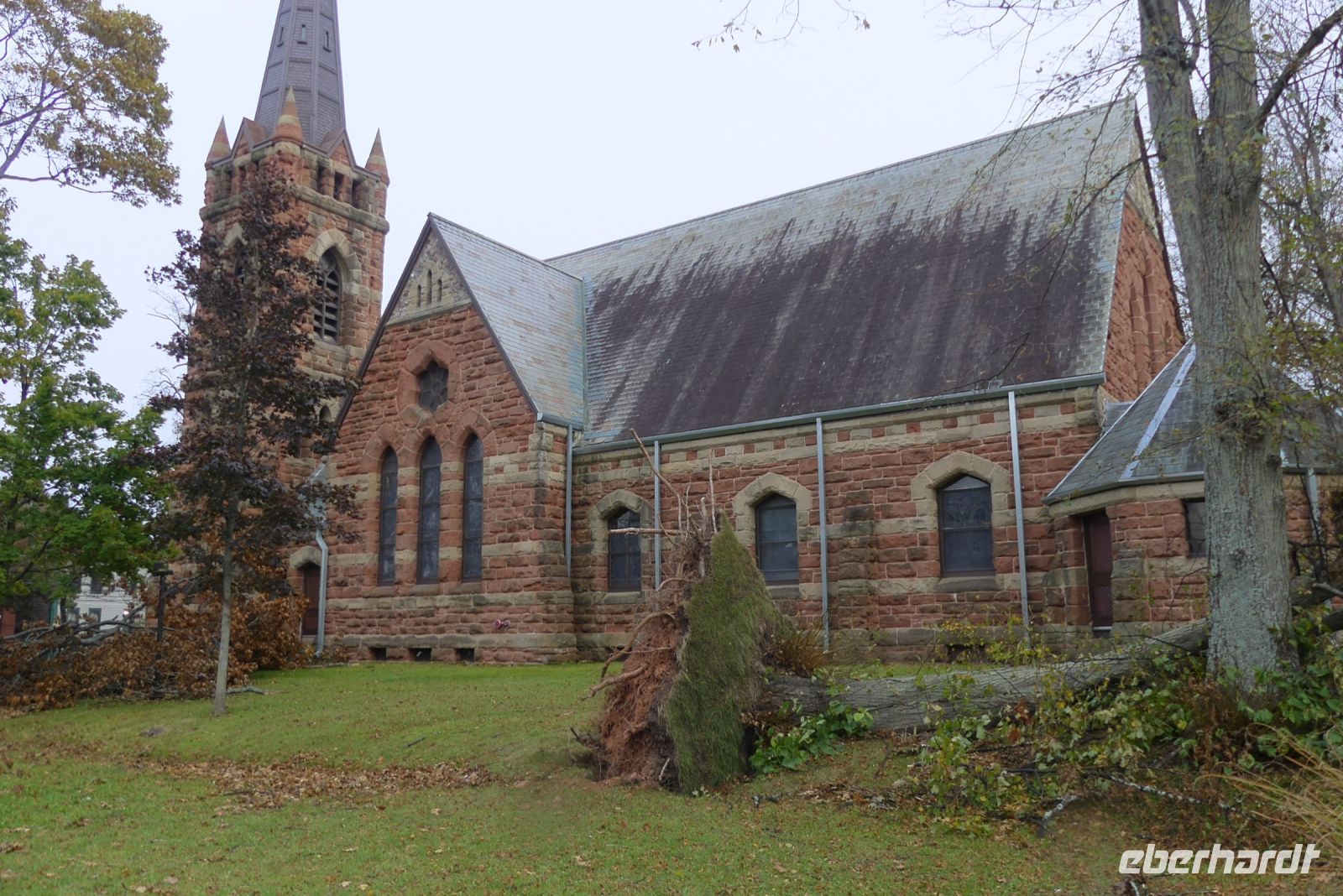 Letzte Nacht haben wir die Uhren eine Stunde vorgestellt. Die Ostkanadischen Provinzen gehören zu einer anderen Zeitzone. Gegen Mittag erreichen wird Charlottetown. Charlottetown ist die Provinzhauptstadt von P.E.I., wie hier kurz Prince Edward Island genannt wird. P.E.I. ist die kleinste Provinz Kanadas. Sie trägt den Namen des Herzogs von Kent, Vater von Queen Victoria. Das kleine Städtchen lässt sich gut zu Fuß erkunden. Die Schäden des Hurrikans Fiona sind noch offensichtlich, vor allem Bäume wurde entwurzelt und einige Dächer sind beschädigt.