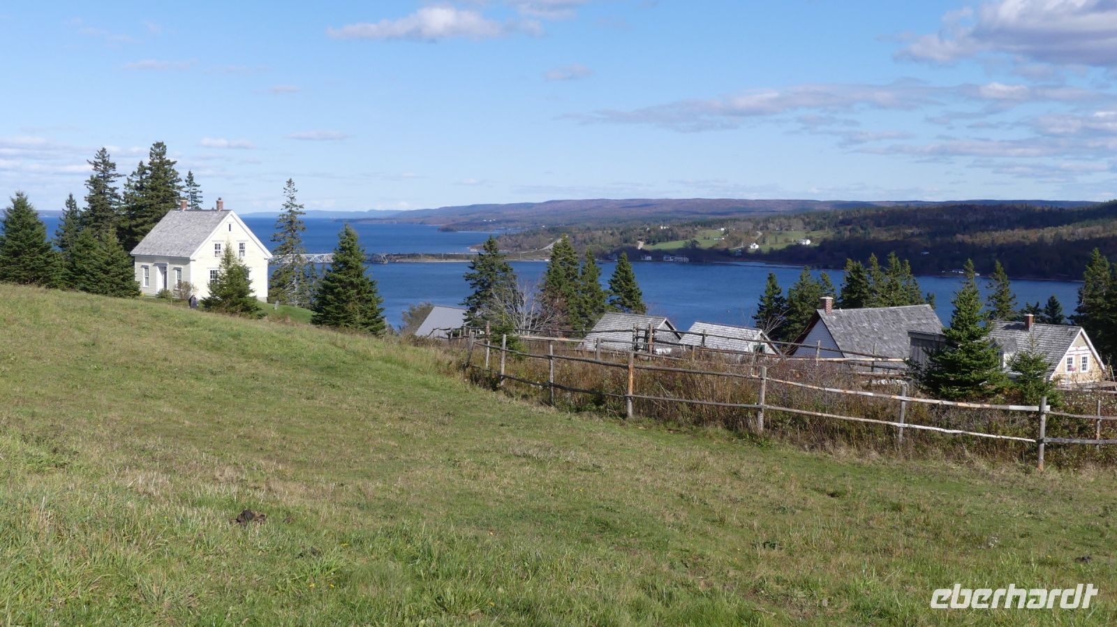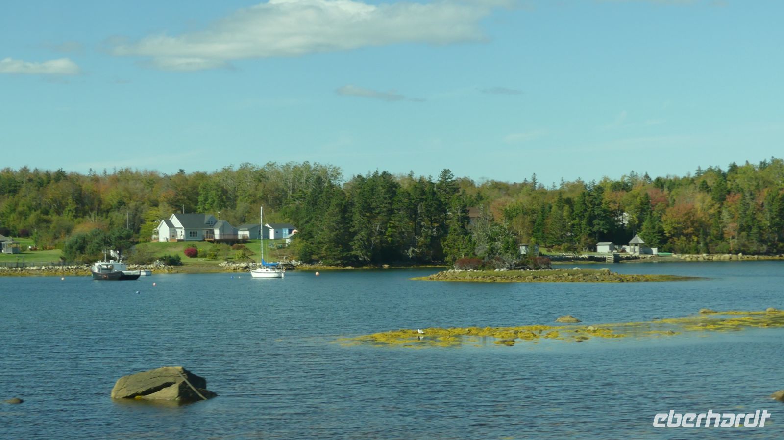 Unsere Busfahrt ins Inselinnere führt entlang des riesigen Binnensees Bras d´Or Lake. Er gilt als größter Salzwassersee weltweit. Unterwegs entdecken wir auch hier Sturmschäden des letzten Hurrikans. Claude meint, dass noch immer einige tausend Bewohner ohne Strom sind. Eine Insel im See wurde Christmas Island genannt. Passend dazu haben sich engagierte Bewohner gefunden, die jährlich Weihnachtspost von Kindern stempeln.