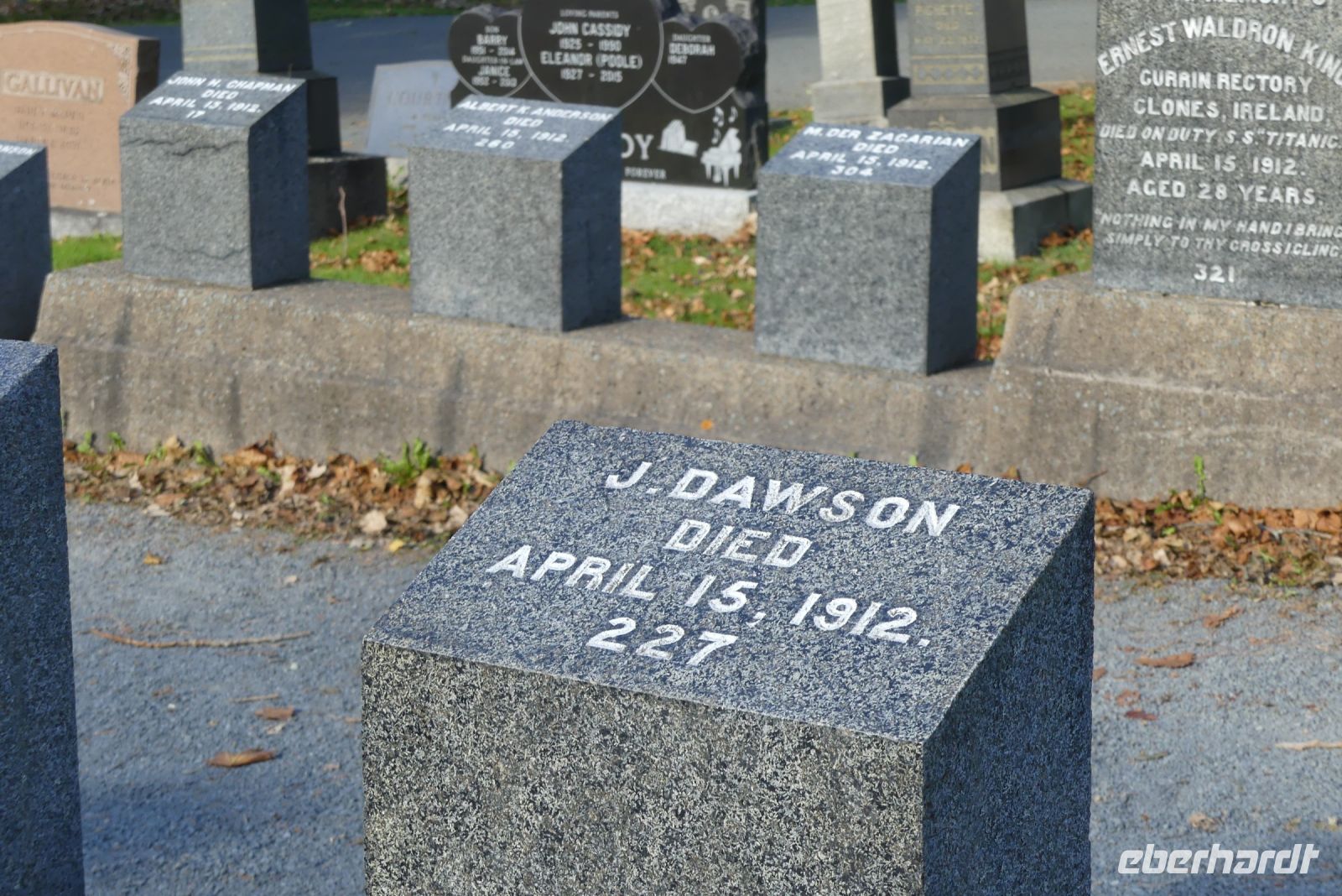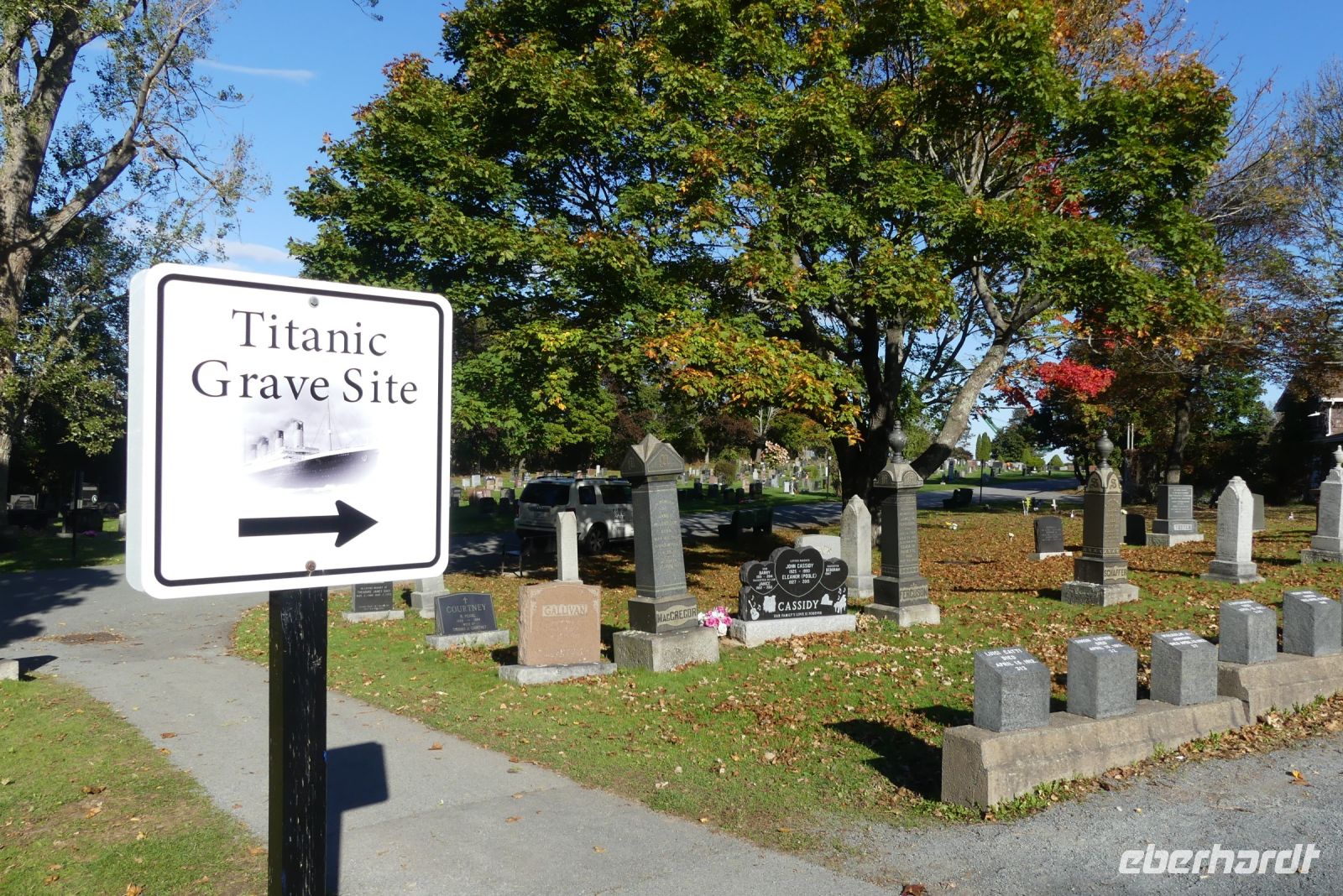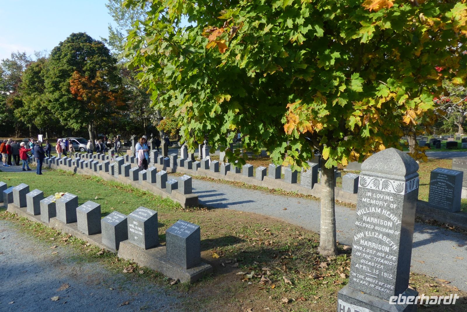 Fünf Jahre zuvor ereignete sich ca. 750 Seemeilen von hier eine andere Katastrophe, der Untergang der Titanic. Von Halifax starteten damals drei Rettungsschiffe zur Unglücksstelle. 120 der geborgenen Toten, darunter Jack Dawson, sind hier in Halifax auf dem Fairview Lawn Friedhof begraben. Ihre Gräber sind in der Form eines Schiffsrumpfes angeordnet.