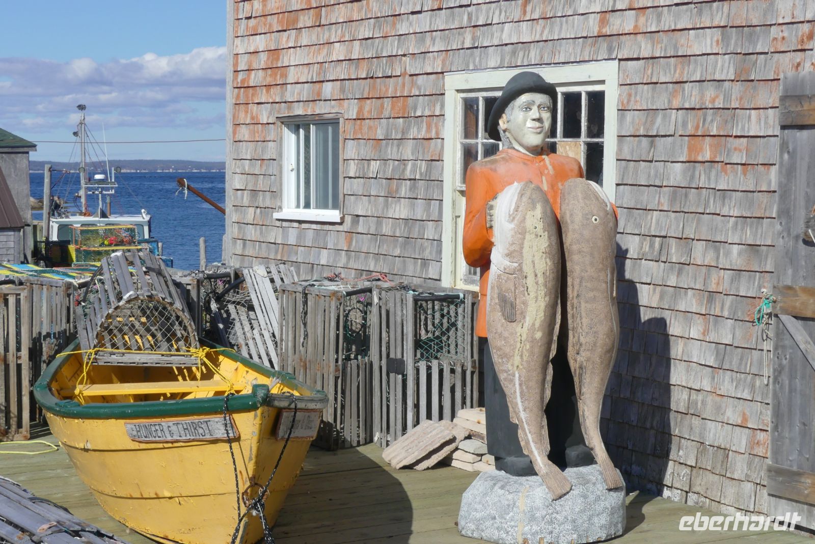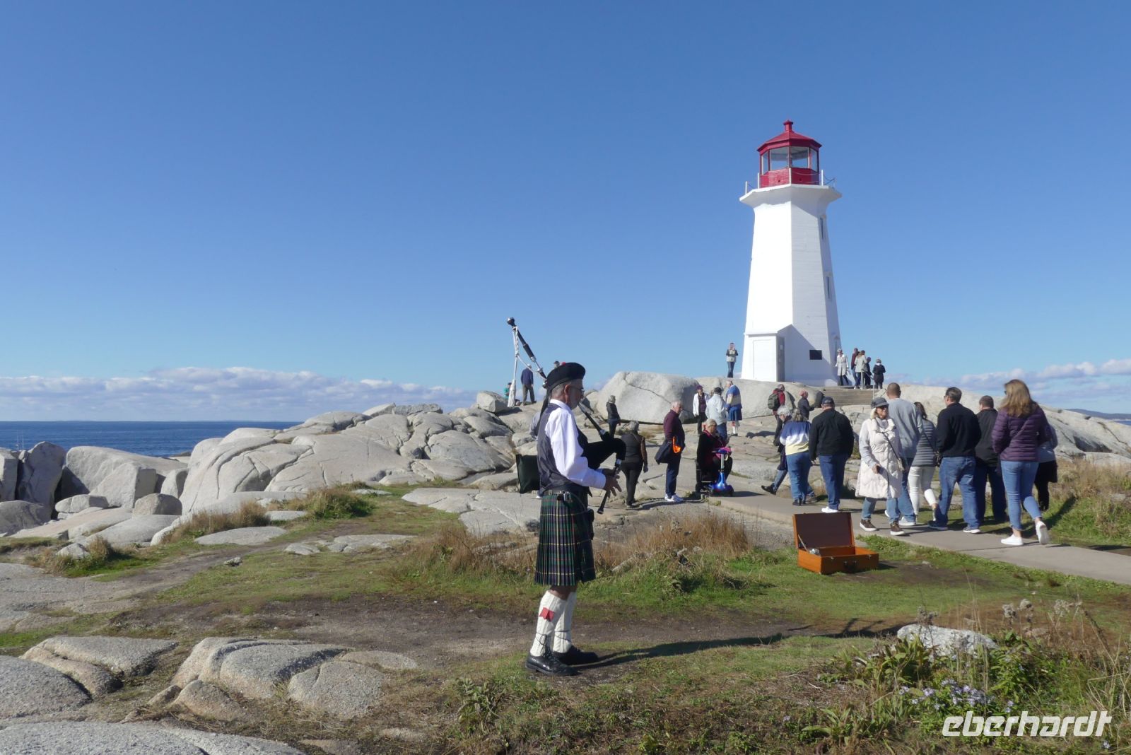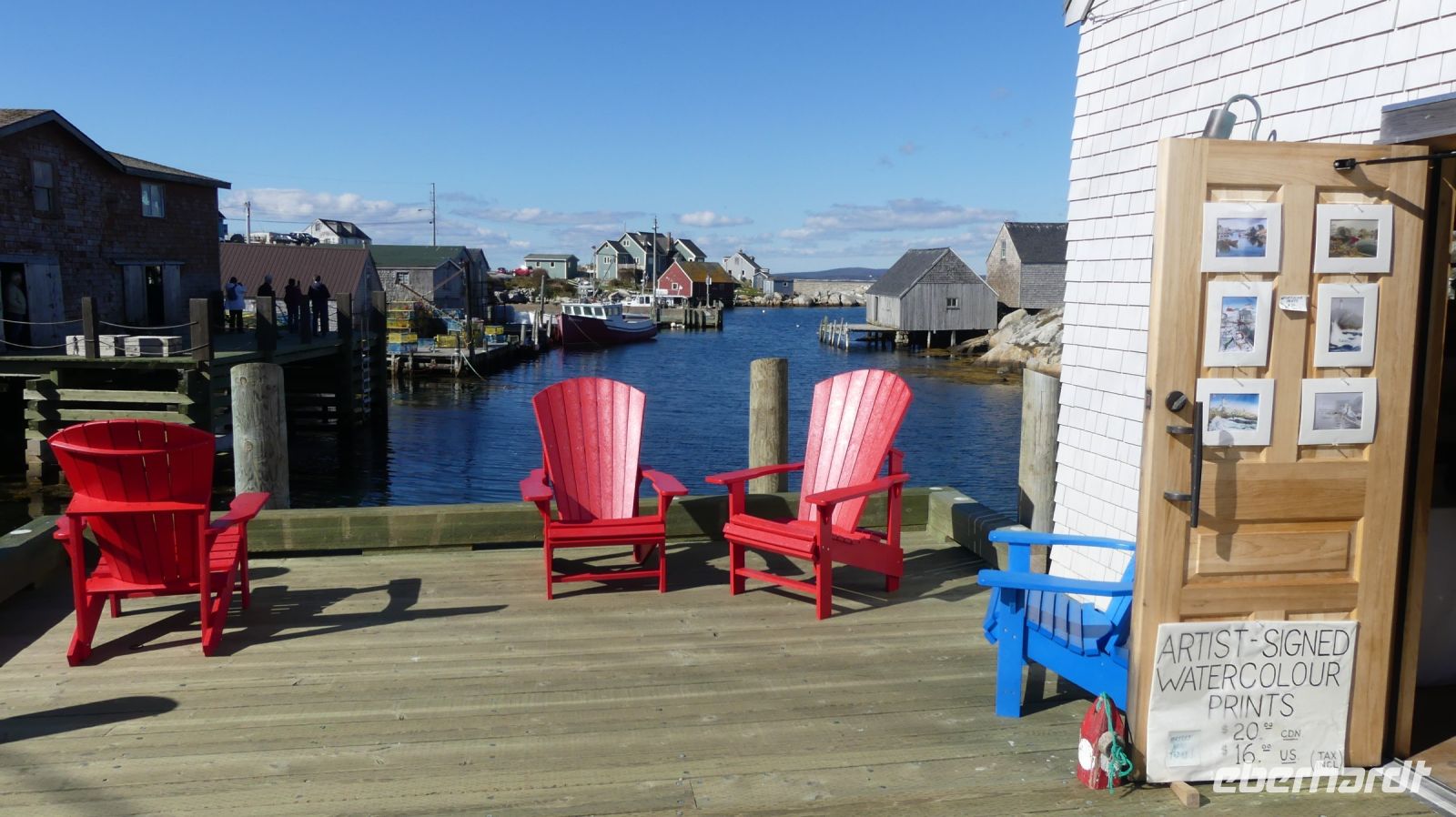 Wir verlassen Halifax Richtung Süden in eine wunderschöne Landschaft. Laubfärbung, Sonnenschein und wundervolle Buchten mit schmucken Häusern prägen das Bild. Für zwei Stunden bleiben wir in Peggys Cove. Ein kleiner Ort, der täglich von vielen Touristen aufgesucht wird. Wahrzeichen ist der Leuchtturm. Vor der malerischen Kulisse spielt ein Dudelsackspieler Amazing Grays, was mich daran erinnert, dass wir uns immer noch in Neu Schottland aufhalten. Die Küstenlandschaft mit den runden Steinen, Holzhäusern und Fischerbooten erinnert mich dagegen an Regionen in Norwegen. Farbige amerikanische Gartenstühle, die Adirondack Stühle passen sehr gut in das Bild.