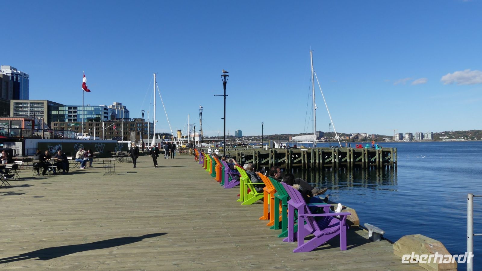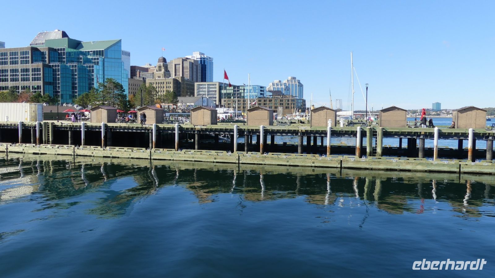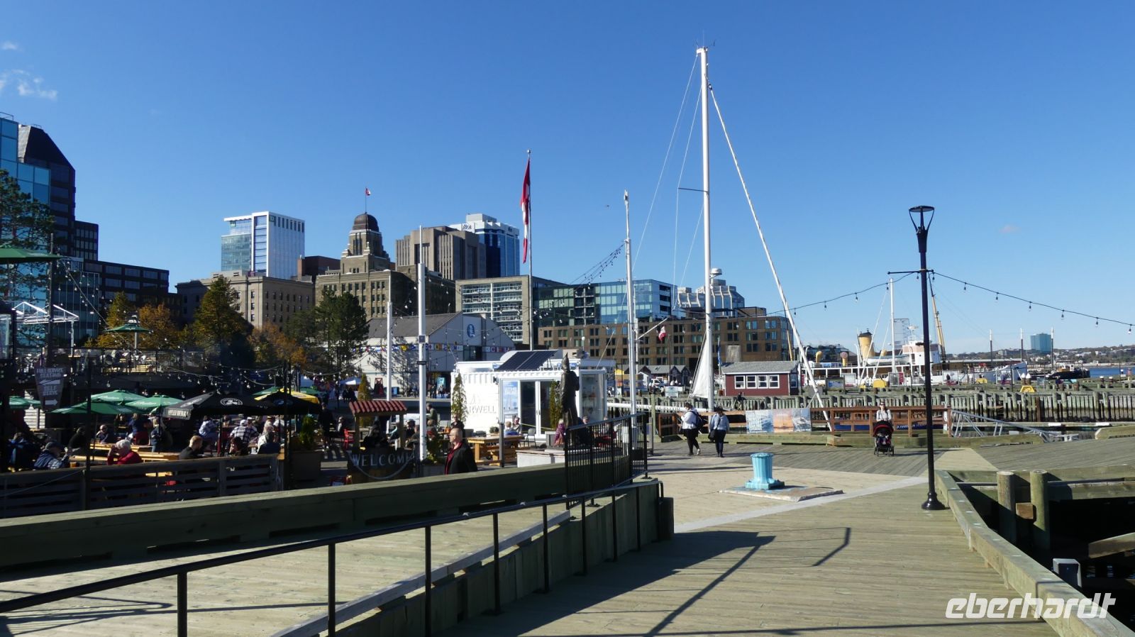 Zurück am Kreuzfahrtterminal in Halifx teilen wir uns auf. Einige nutzen das sonnige Wetter und entscheiden sich für den Poolbereich an Bord. Andere kommen noch mit auf einen Spaziergang entlang der Hafenpromenade, dem Halifax Harbour Walk.
