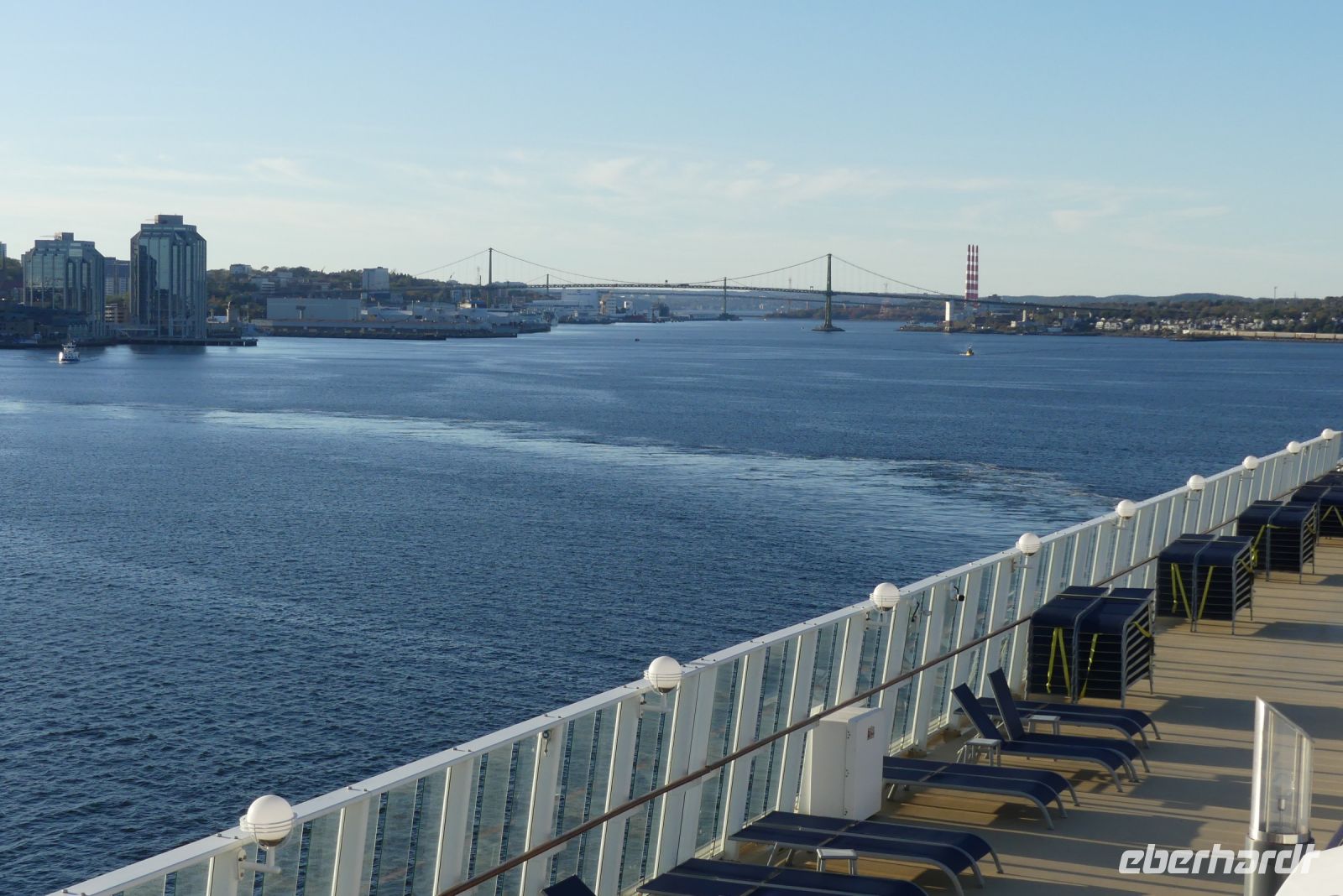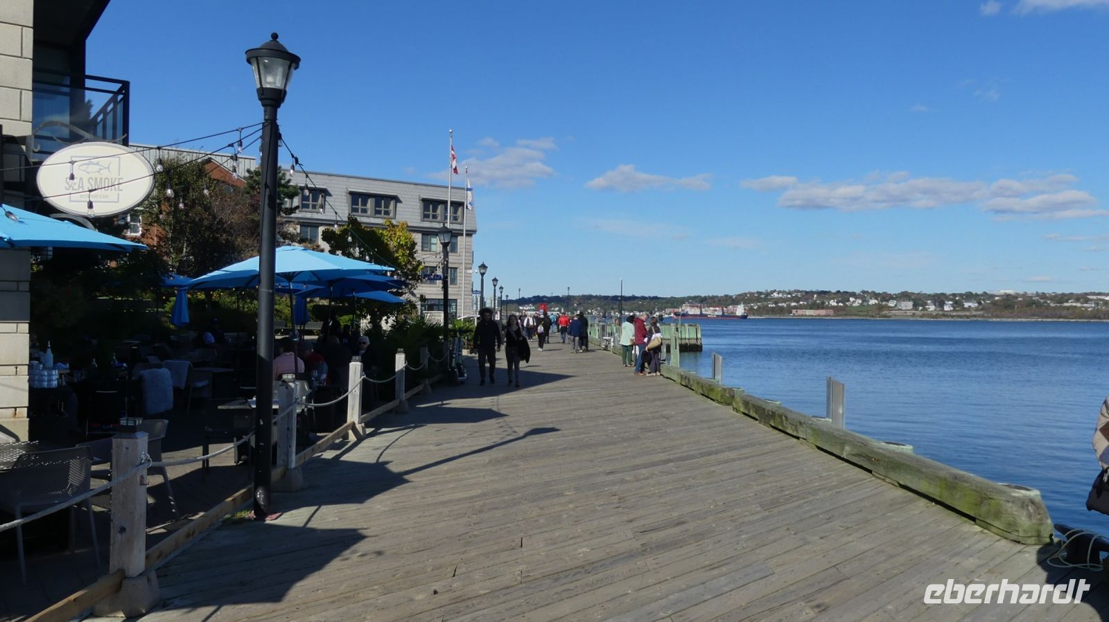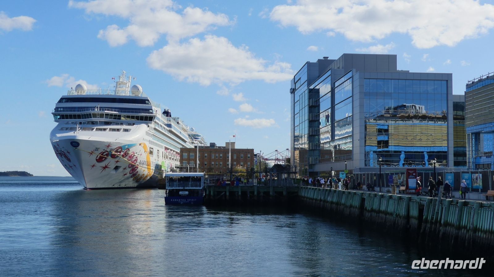 Zurück am Kreuzfahrtterminal in Halifx teilen wir uns auf. Einige nutzen das sonnige Wetter und entscheiden sich für den Poolbereich an Bord. Andere kommen noch mit auf einen Spaziergang entlang der Hafenpromenade, dem Halifax Harbour Walk.