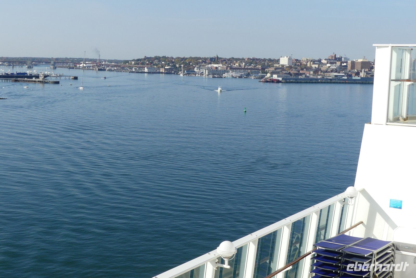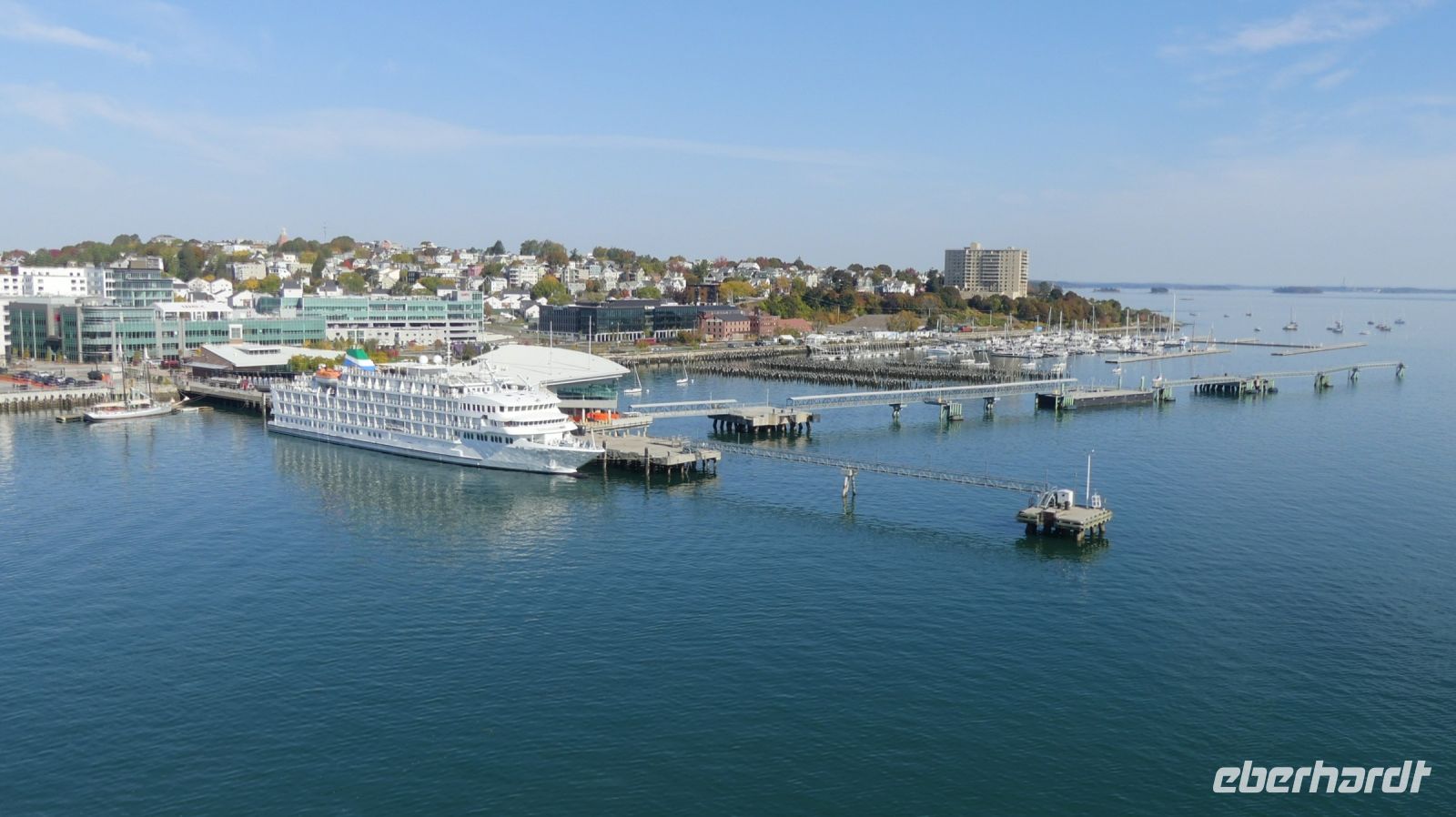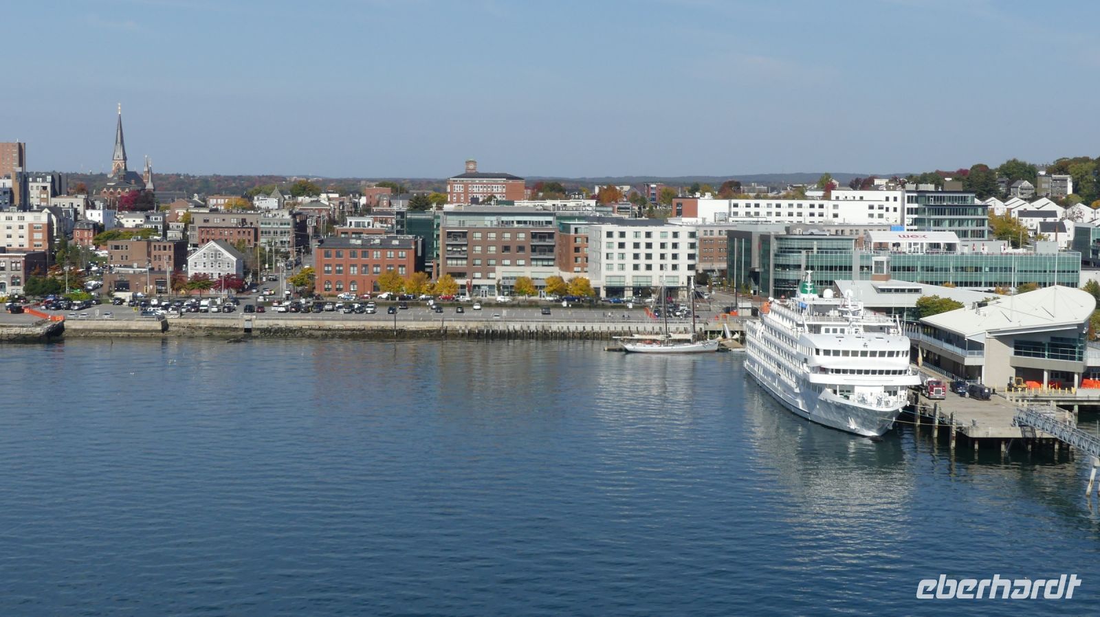 Am Vormittag laufen wir in die tiefe Bucht Casco Bay ein. Wir machen Halt in Portland, der Hauptstadt des US Bundesstaates Main. Die US Behörden kommen an Bord, um die Einreiseformalitäten für die USA abzuwickeln. Jeder Passagier muss mit seinem Pass und ESTA persönlich erscheinen. Durch die Aufteilung in Gruppen und Priorität für die Mittagsausflügler geht es zum Glück ohne Massenauflauf der Passagiere über die Bühne. Ein paar einfache Fragen werden gestellt und Fingerabdrücke genommen. Dann gibt es einen Stempel in den Pass und einen Vermerk auf der Bordkarte. Anschließend kommen die meisten von uns mit zum NCL-Ausflug.