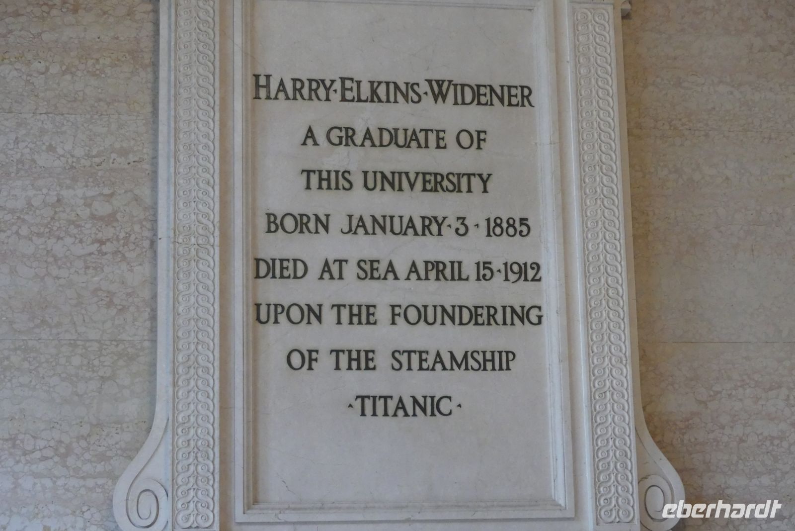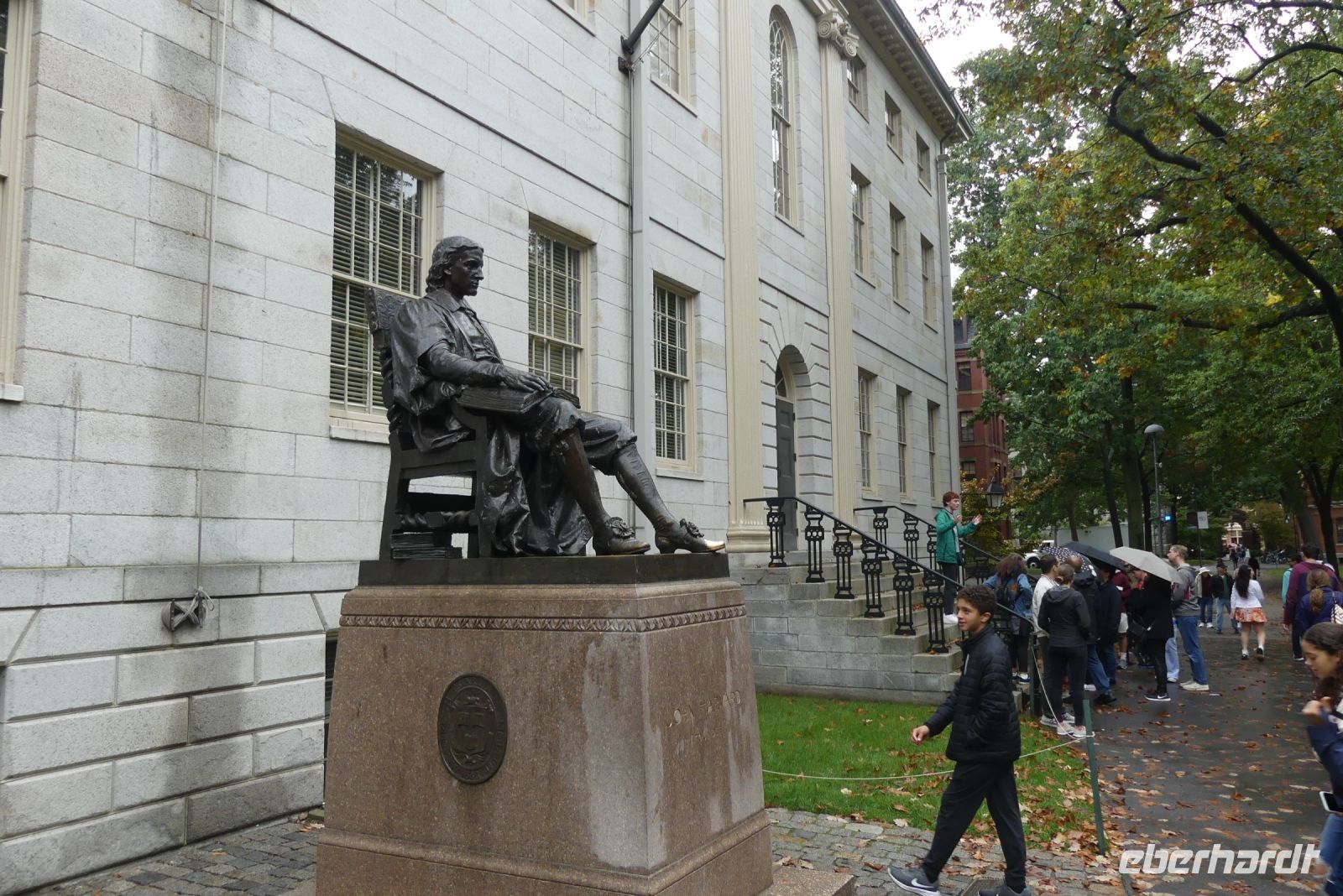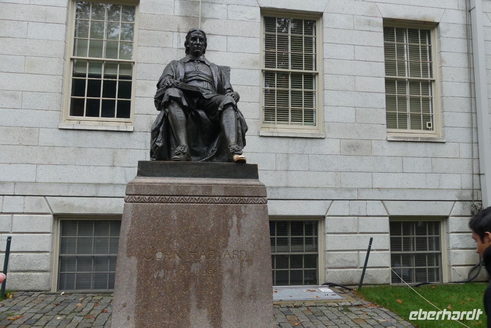 Die 1636 gegründete Harvard Universität ist die älteste Universität der Vereinigten Staaten. Unter den Absolventen sind einige US Präsidenten (J. Adams, G. W. Bush, J. F. Kennedy, B. Obama u. a) und andere bekannte Persönlichkeiten wie Bill Gates oder Schauspieler Tommy Lee Jones u. a. Übrigens hat auch unser Gesundheitsminister hier studiert. Bei unserem Rundgang auf dem Campus kommen wir an der Massachusetts Hall (älteste Gebäude und Sitz des Universitätspräsidenten), der John-Harvard-Statue und der Bibliothek vorbei. Letztere enthält die größte private Büchersammlung weltweit (unterirdisches System…). Die Gründung der Harry Elkins Widener Bibliothek geht auf den Harvard Absolventen Harry Widener zurück, der beim Titanic-Unglück ums Leben kam.