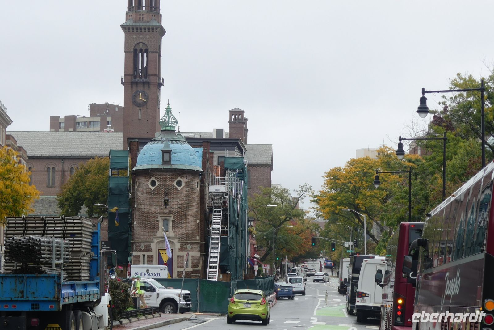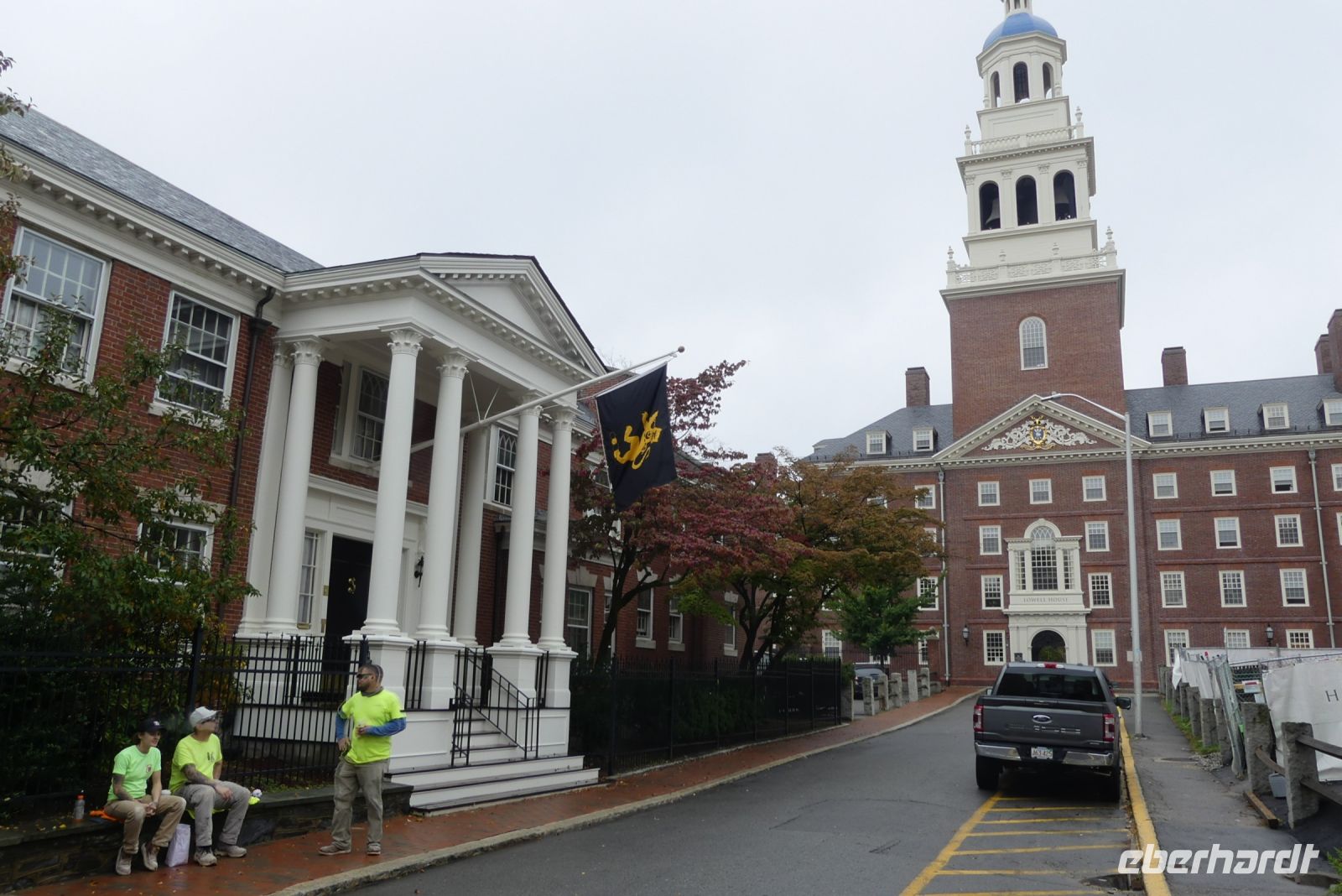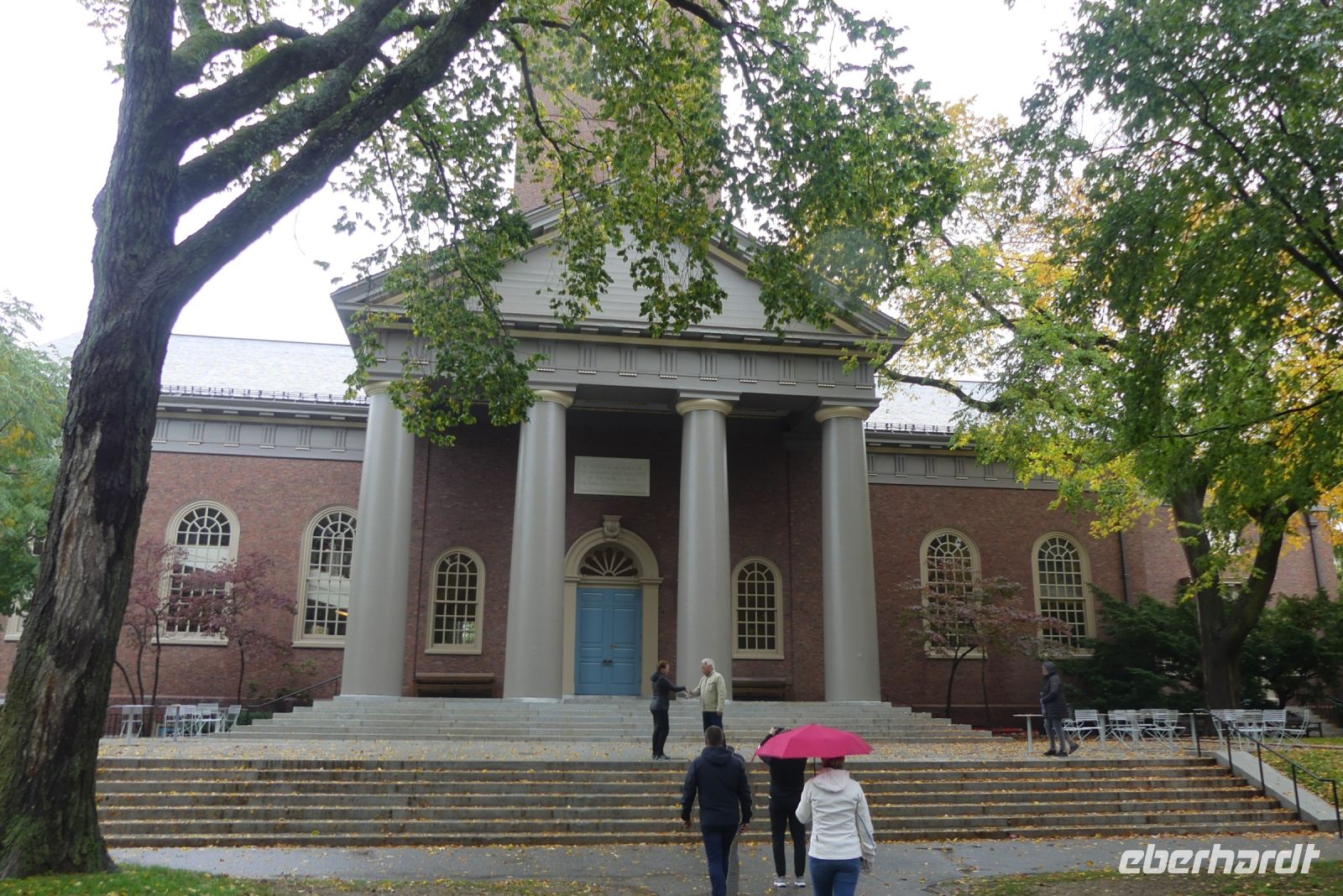 Die berühmte Harvard Universität liegt im Vorort Cambridge und ein Besuch im Rahmen unserer Stadtrundfahrt war aus Zeitgründen eigentlich nicht vorgesehen. Umso größer ist die Freude, als Mary meint, dass wir nach Harvard fahren. Das ist noch mal ein toller Höhepunkt für heute. Zudem hat es inzwischen aufgehört zu regnen. Der Weg nach Cambridge führt uns über den Charles River und vorbei am MIT (Massachusetts Institute of Technology).