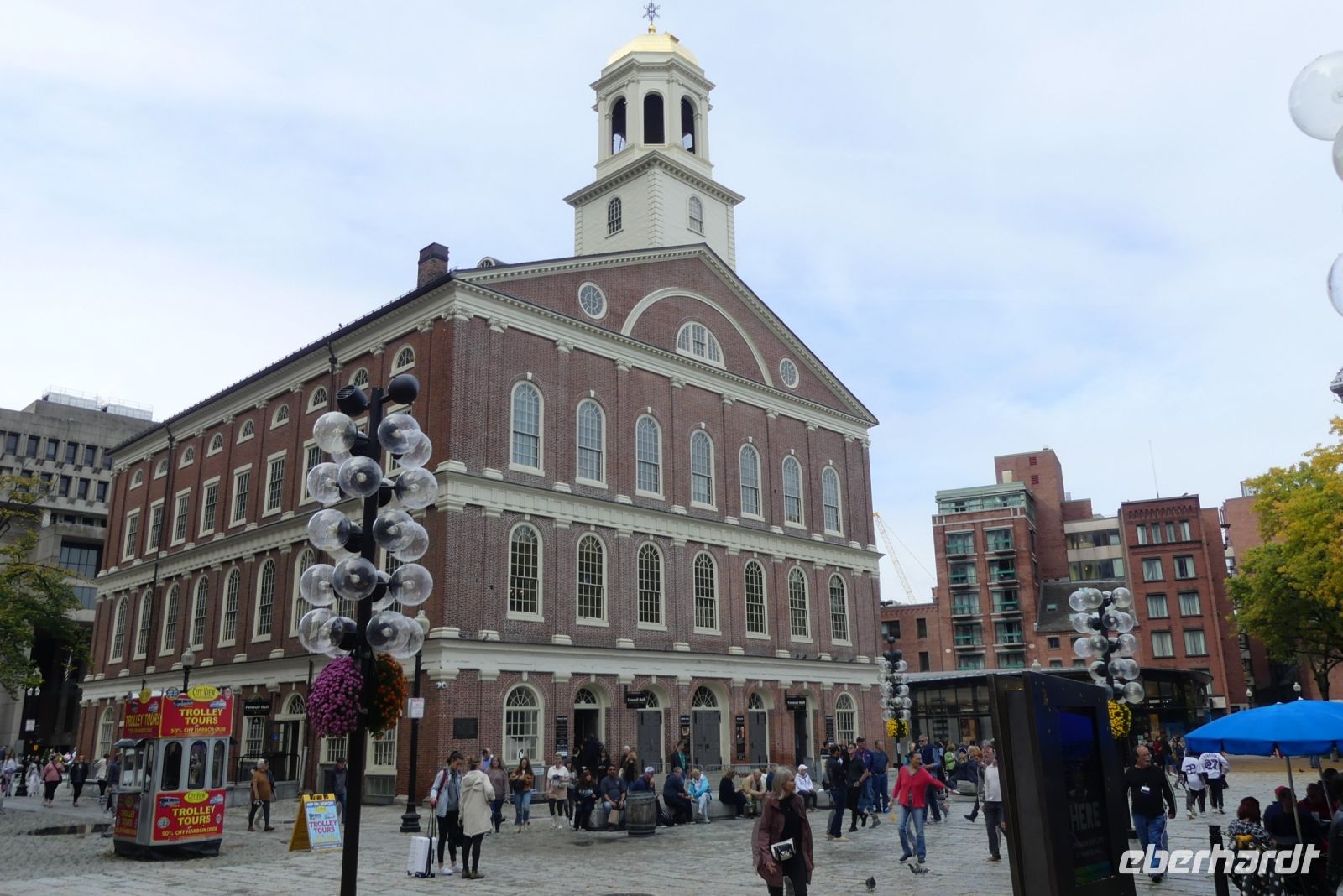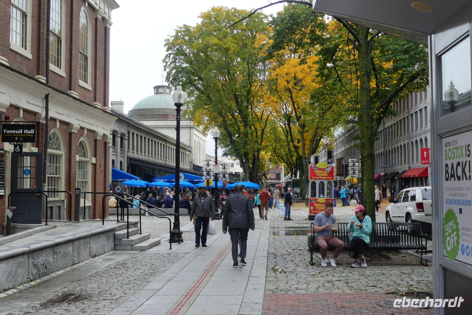 Von Cambridge fahren wir zurück über den Charles River mit tollem Ausblick auf das Bostoner Ufer (Mary „ der eine Million Dollar Blick“) zum Stadtteil Beacon Hill und halten schließlich am Quincy Market. Inzwischen zeigt sich auch die Sonne und wir verbringen hier die Mittagspause.