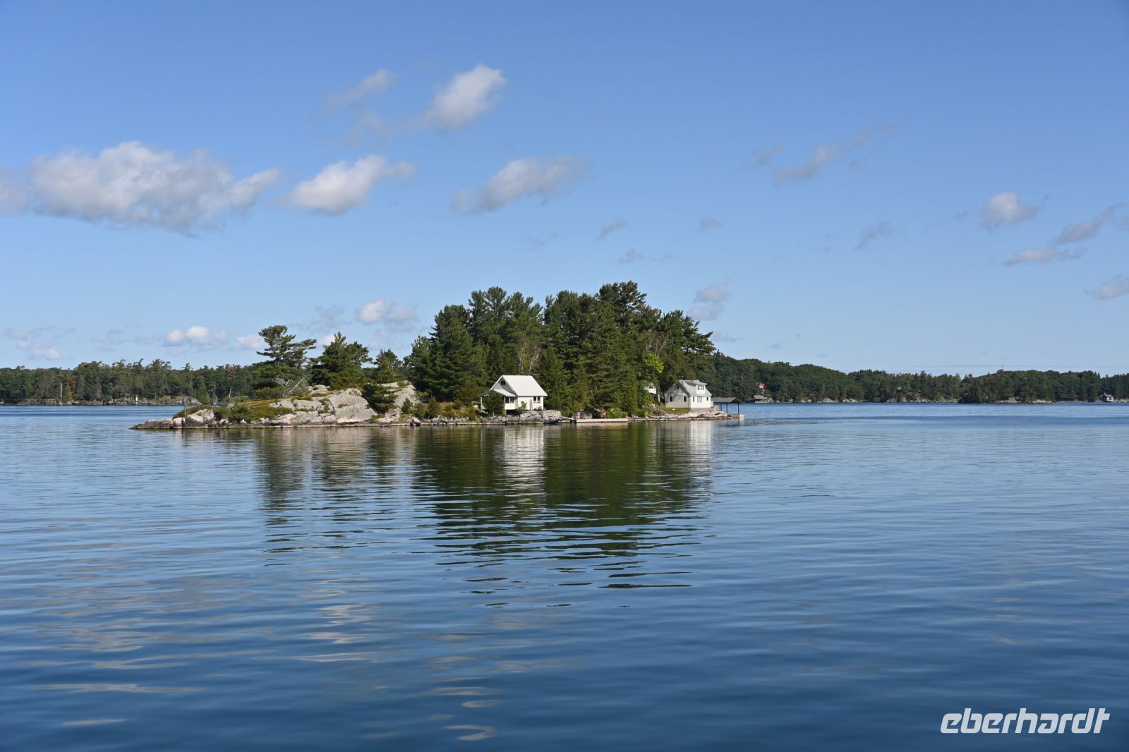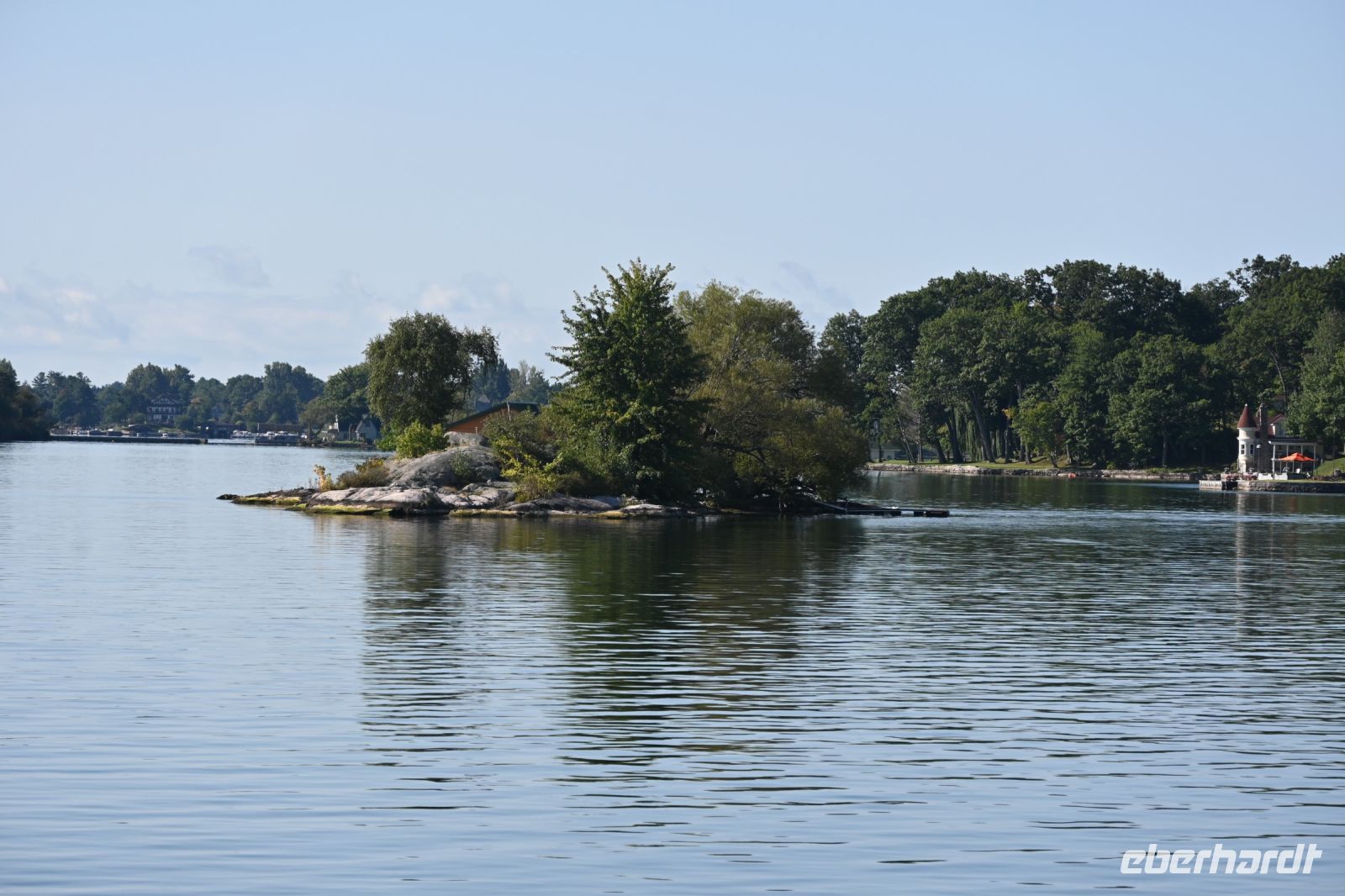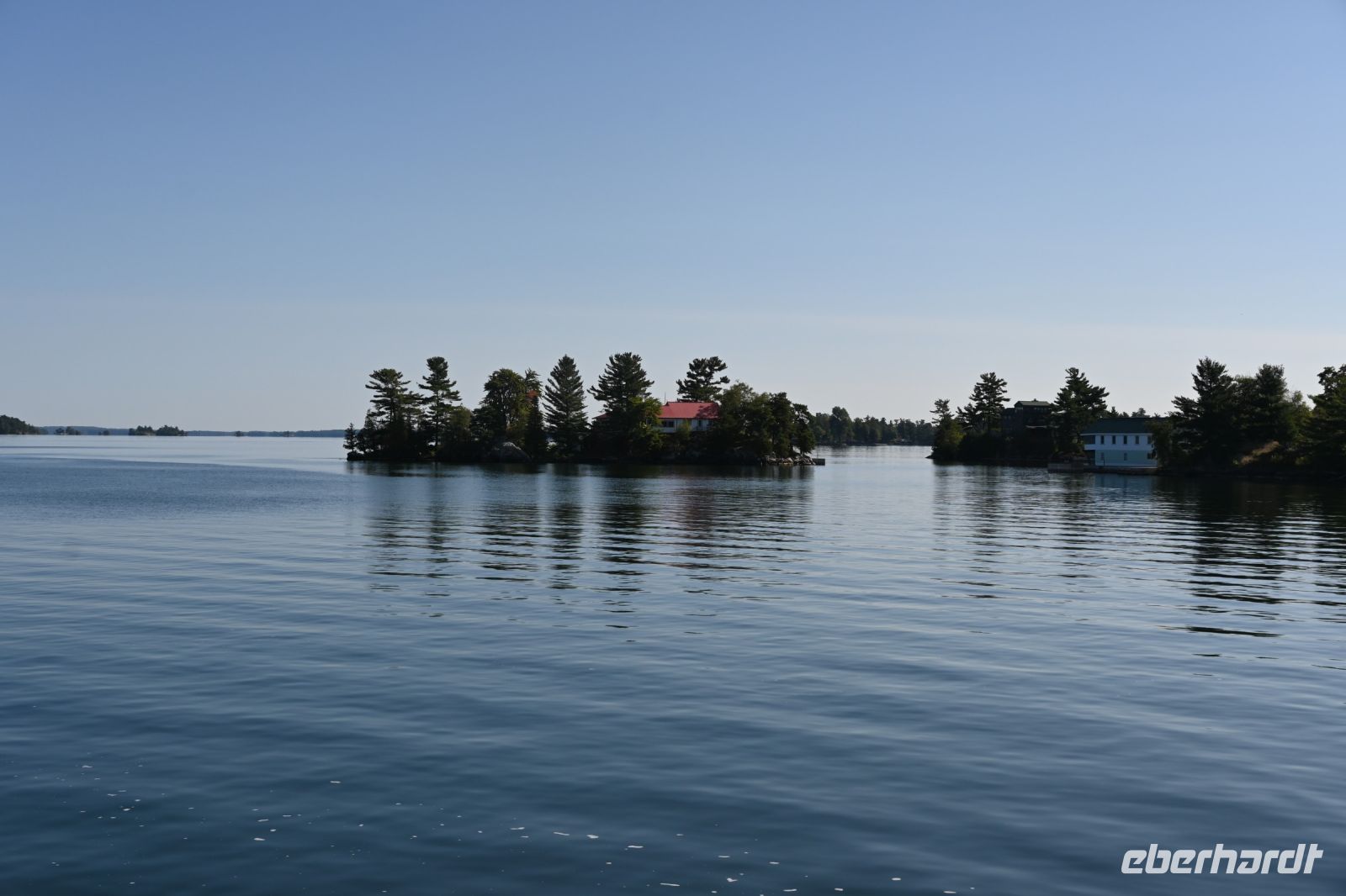 Auch von Kingston gibt es Bootstouren in den Nationalpark, jedoch fahren wir noch etwas weiter hinein und erreichen Rockfort. Von hier startet unsere Bootstour und wir fahren durch einen Teil der circa 1.800 Inseln, von denen ein Teil auf der amerikanisch Seite liegt. Die kleineren und romantischeren Inseln liegen jedoch auf der kanadischen Seite. Damit es als Insel zählt, muss diese mindestens 2qm groß sein und ein Baum darauf wachsen. Das Gebiet wird gerade von den Einheimischen gerne als Ferienort genutzt. Boot fahren, Angeln, schwimmen und tauchen ist hier sehr beliebt.