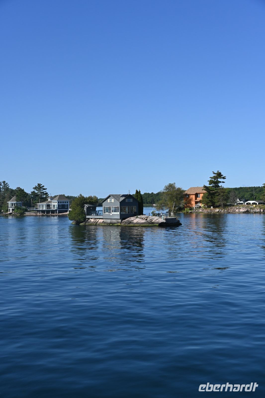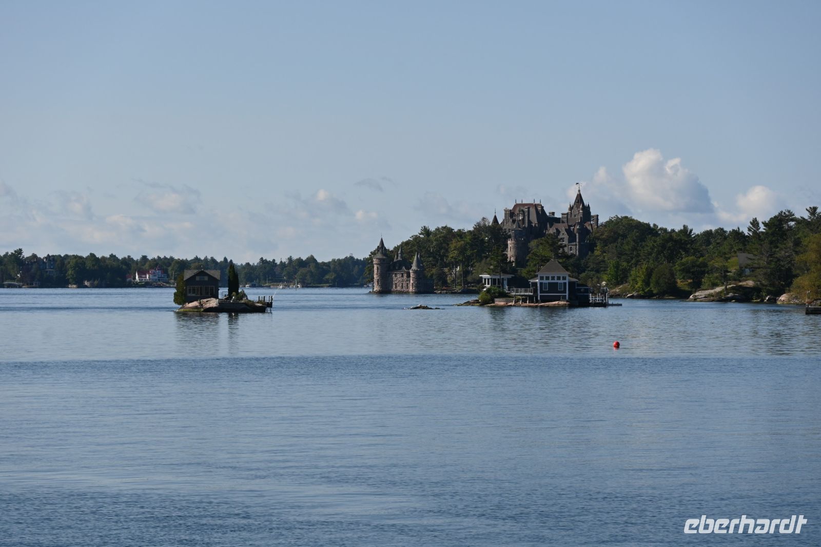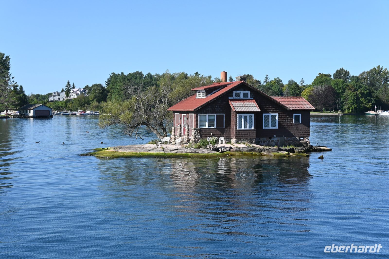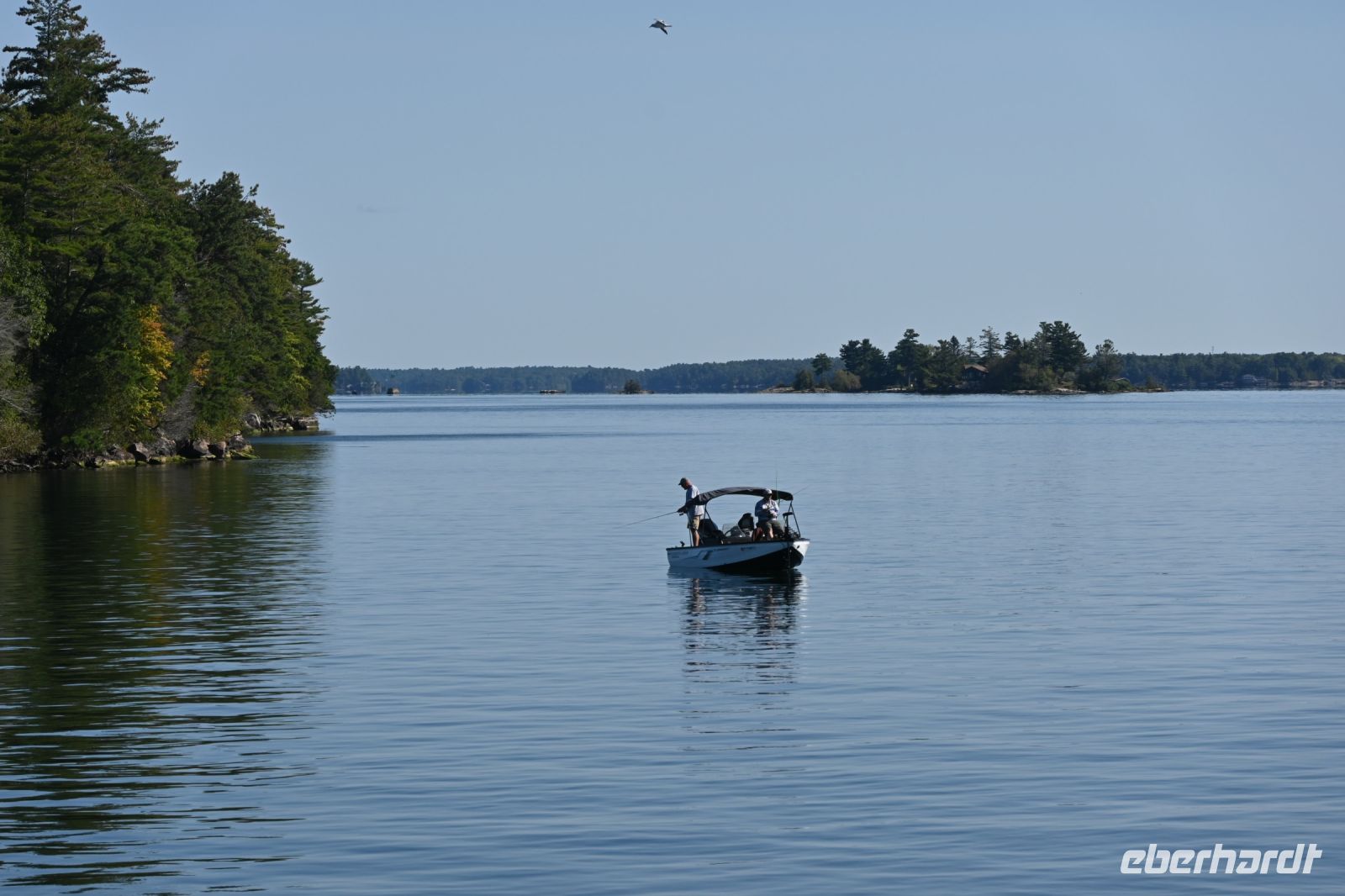 Auch von Kingston gibt es Bootstouren in den Nationalpark, jedoch fahren wir noch etwas weiter hinein und erreichen Rockfort. Von hier startet unsere Bootstour und wir fahren durch einen Teil der circa 1.800 Inseln, von denen ein Teil auf der amerikanisch Seite liegt. Die kleineren und romantischeren Inseln liegen jedoch auf der kanadischen Seite. Damit es als Insel zählt, muss diese mindestens 2qm groß sein und ein Baum darauf wachsen. Das Gebiet wird gerade von den Einheimischen gerne als Ferienort genutzt. Boot fahren, Angeln, schwimmen und tauchen ist hier sehr beliebt.