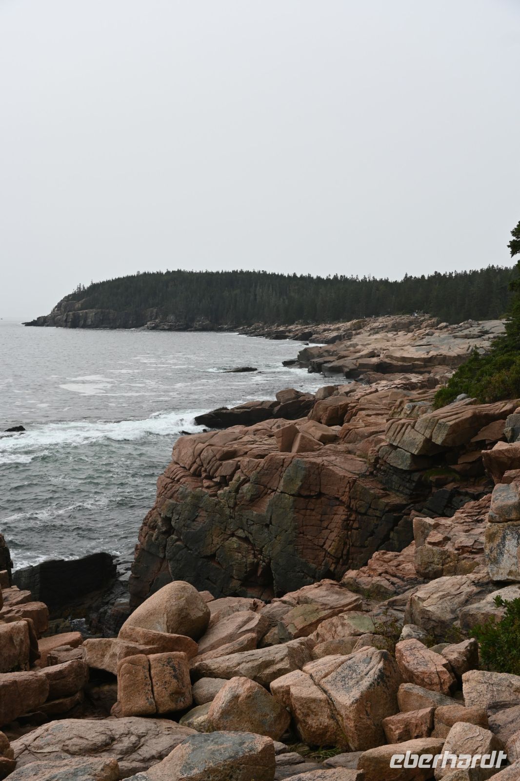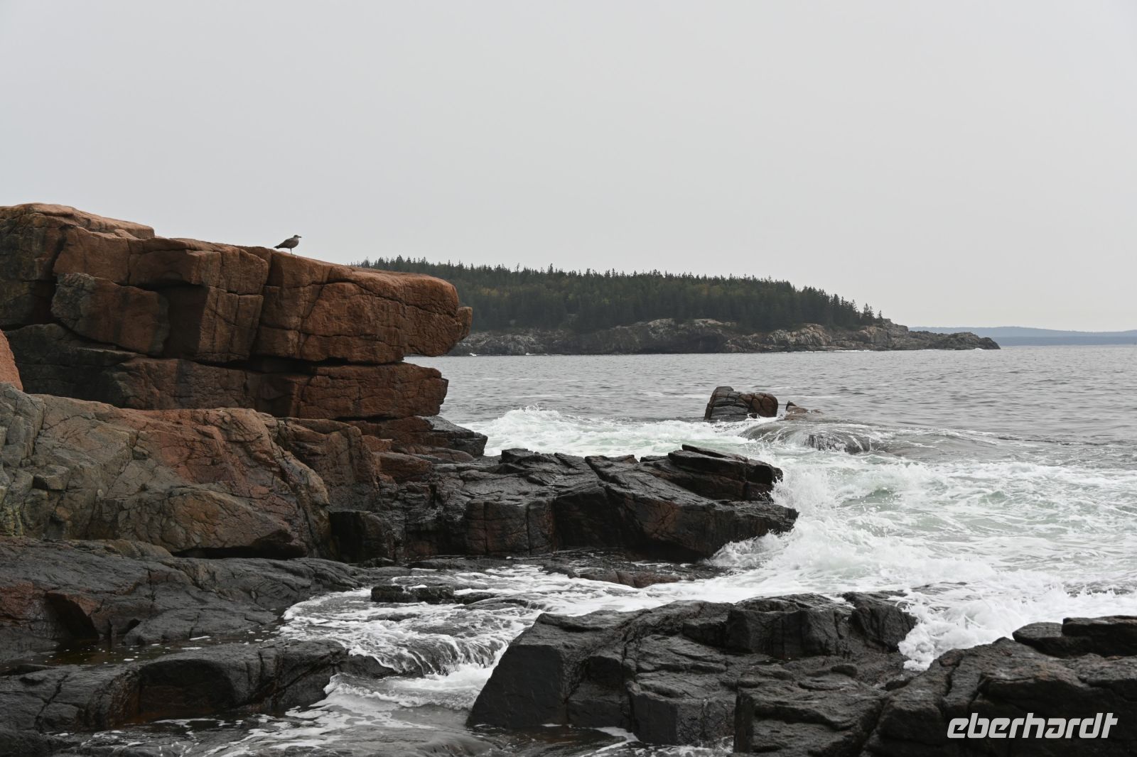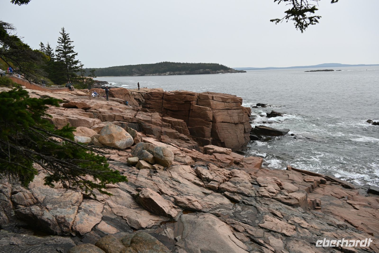 Beliebtes Ausflugsziel hier auf der Mount Desert Island und auch unser Ziel für heute ist der Acadia Nationalpark mit dem 467m hohen Cadillac Mountain. Dieser ist die größte Erhebung an der amerikanischen Atlantikküste. Ein Rundweg führt uns mit dem Reisebus durch den Park. Ganzjährig können Einwohner und Besucher die insgesamt 200 Kilometer Wanderwege durch den Park nutzen, aber auch für Fahrradfahrer ist es hier ein Paradies. Der Park wurde durch einige Menschen mit viel Geld zu dem was er heute ist, unteranderem ein Mitglied der Rockefeller Familie kaufte ein Stück Land um die Natur zu schützen.