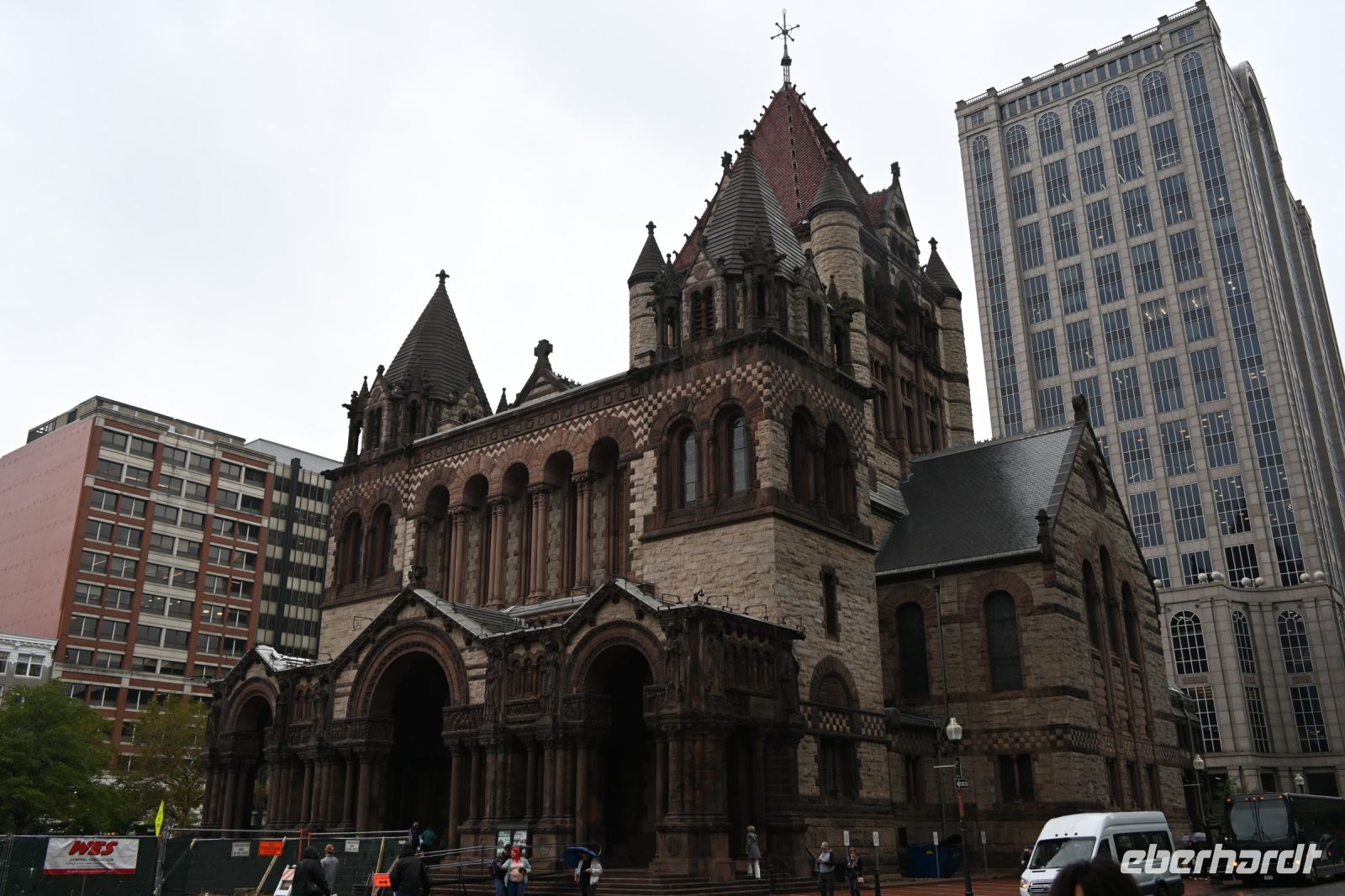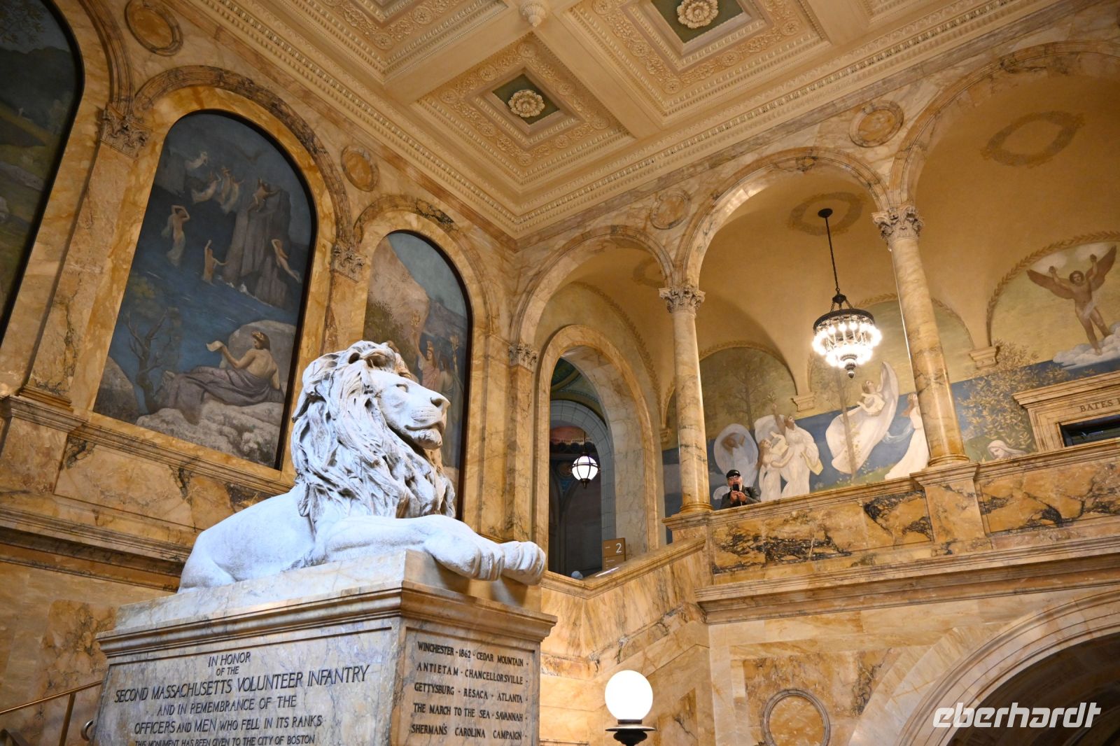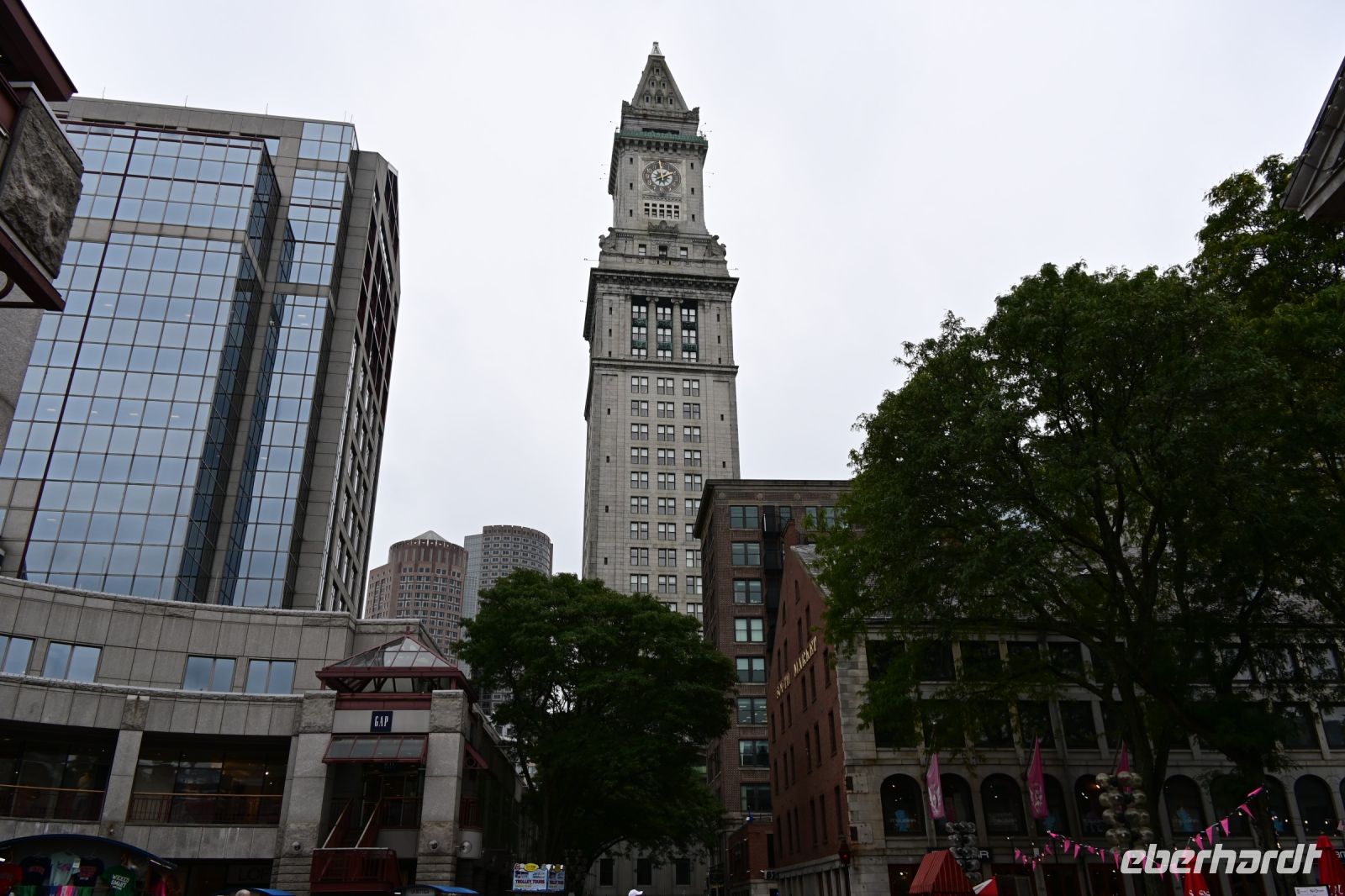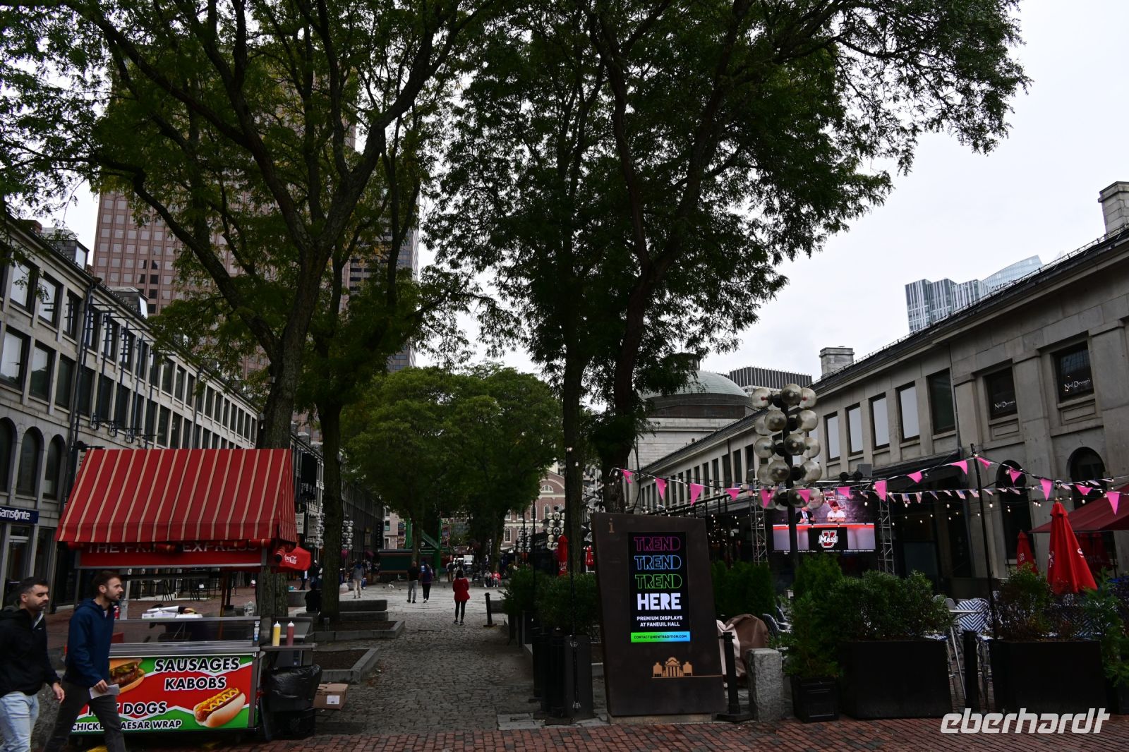 Weiter geht es für uns durch die Stadt. Auch sehr viel Tradition hat hier der, seit über 120 Jahren, stattfindende Boston-Marathon. Mit unserem Bus überqueren wir die Ziellinie. Einen Stopp machen wir an der Trinity Church und der Bibliothek. Um die hier gesammelten 23 Millionen Bücher, Schriften, Briefe, Karten usw. durchzuschauen, müssten wir wahrscheinlich noch ein paar Tage länger bleiben. Während uns Mary Margaret den Rest der Stadt zeigt, erzählt sie noch viel über die Geschichte der Stadt. Da das alles in englisch passiert, ist es für uns sehr schwierig ihr zu folgen. Daher sind wir froh, als Gary für unsere Mittagspause einen guten Parkplatz findet und wir am Quincy Market verschnaufen können. In der Markthalle wird alles von süß bis herzhaft verkauft, hier sollte keiner hungrig raus gehen.