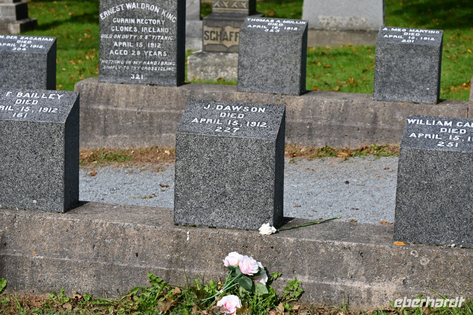 Unsere Fahrt führt uns noch an einer der fünf Zitadellen in und um Halifax vorbei. Von hier hat man einen guten Blick auf den stets eisfreien Hafen, daher kommen hierher auch viele Frachtschiffe. Am Rand der Stadt liegt ein großer Friedhof, hierher wurden nach dem Untergang der Titanic 120 Opfer gebracht und beerdigt. Bis heute sind nicht alle Personen identifiziert und so sind die Gräber nur mit Nummer statt der Namen versehen. Auch nach 111 Jahren werden hier noch Blumen niedergelegt.
