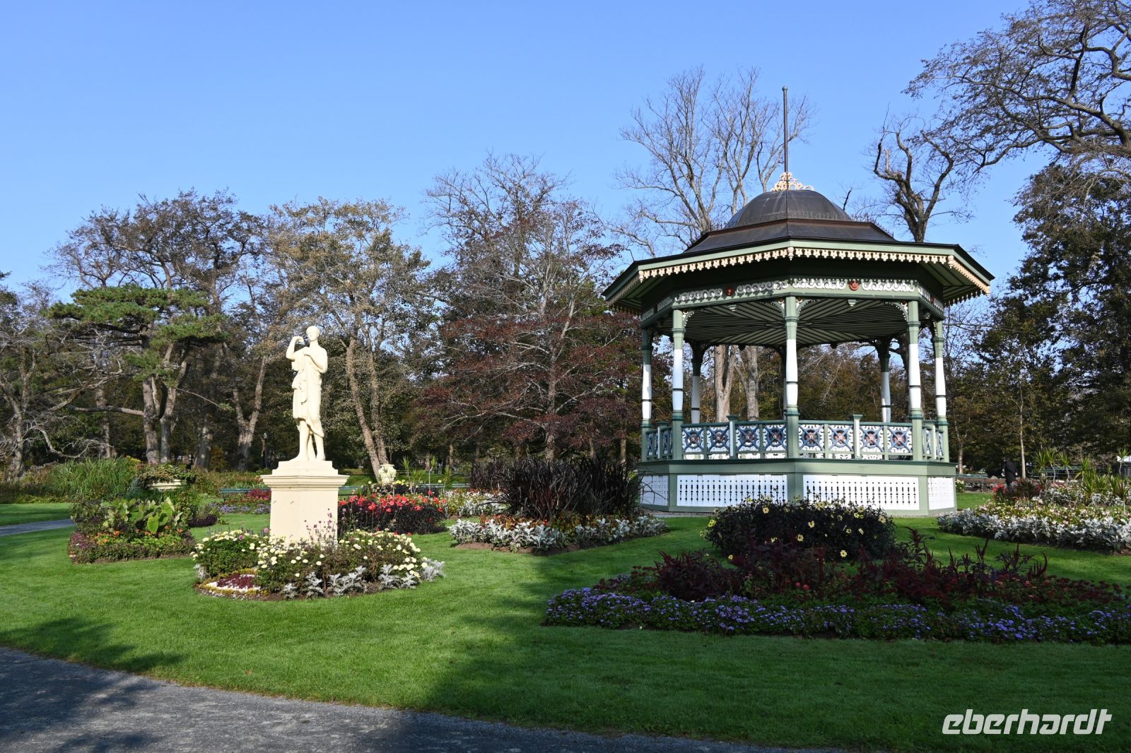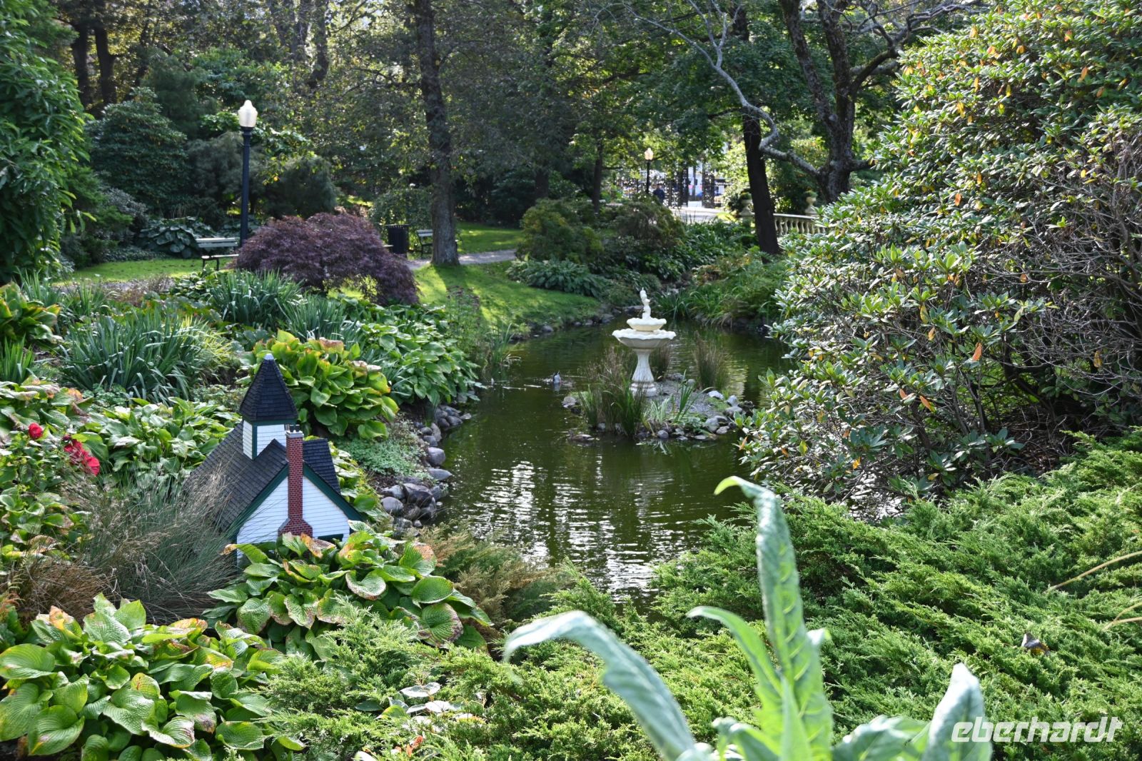 Mit unserem Bus geht es erstmal durch Halifax, der Hauptstadt von Nova Scotia. Mitten in der Stadt liegt der Public Garden. Dieser gehörte einst vier Bauern, die hier Blumen und Gemüse anbauten. Dann kaufte die Stadt ihnen das Land ab und machte einen öffentlichen Garten daraus. Er ist im viktorianischem Stil angelegt und schon der Vater von Queen Elisabeth pflanzte hier einen Baum an. Alles ist wunderbar gepflegt und noch einige Rosen und Dahlien blühen.