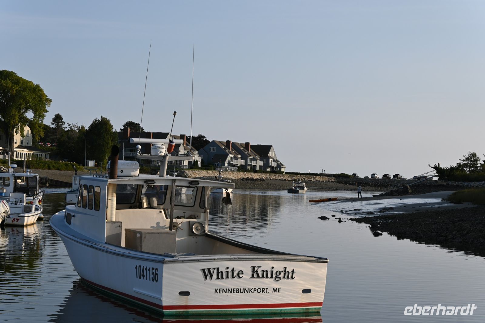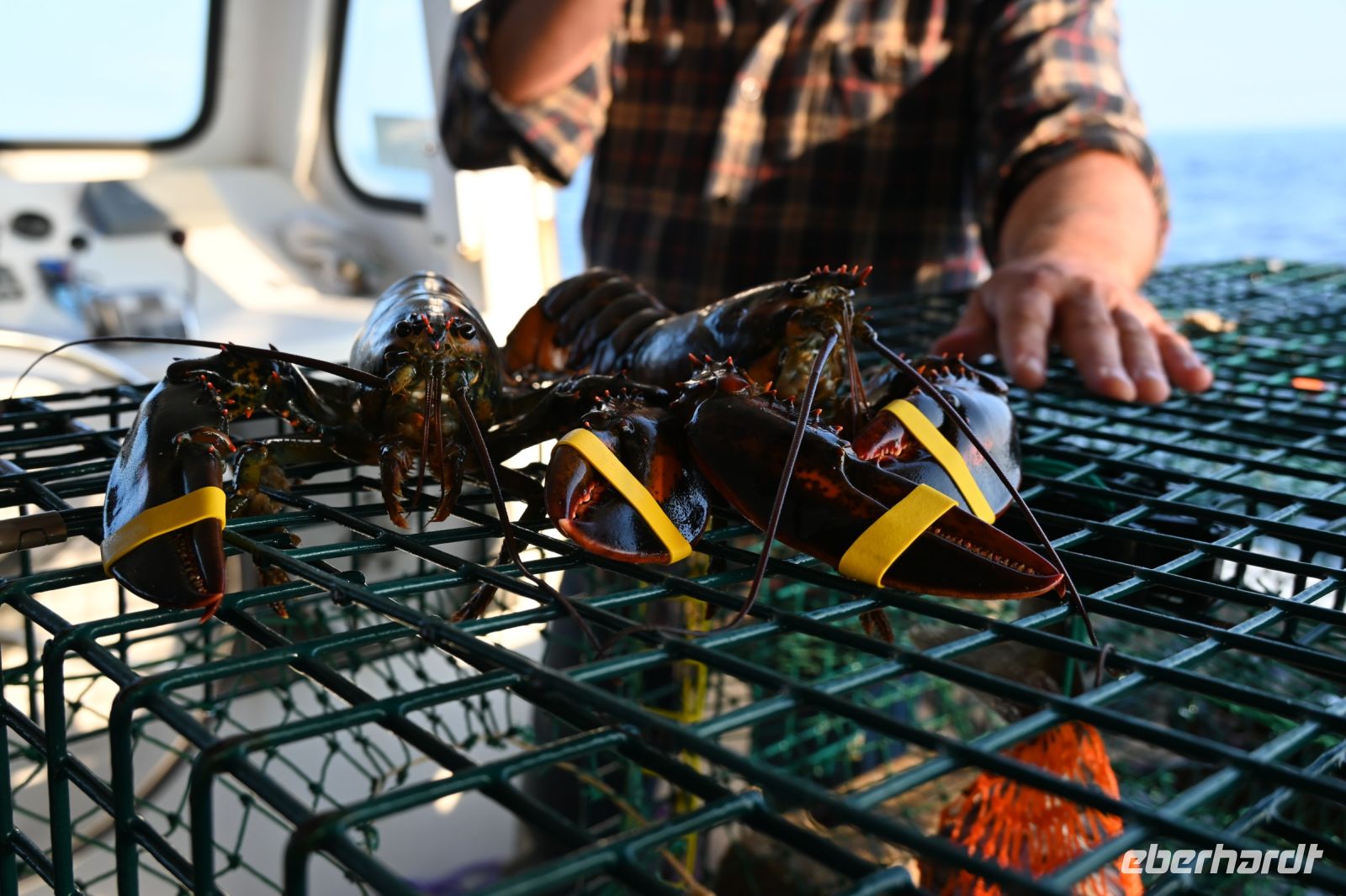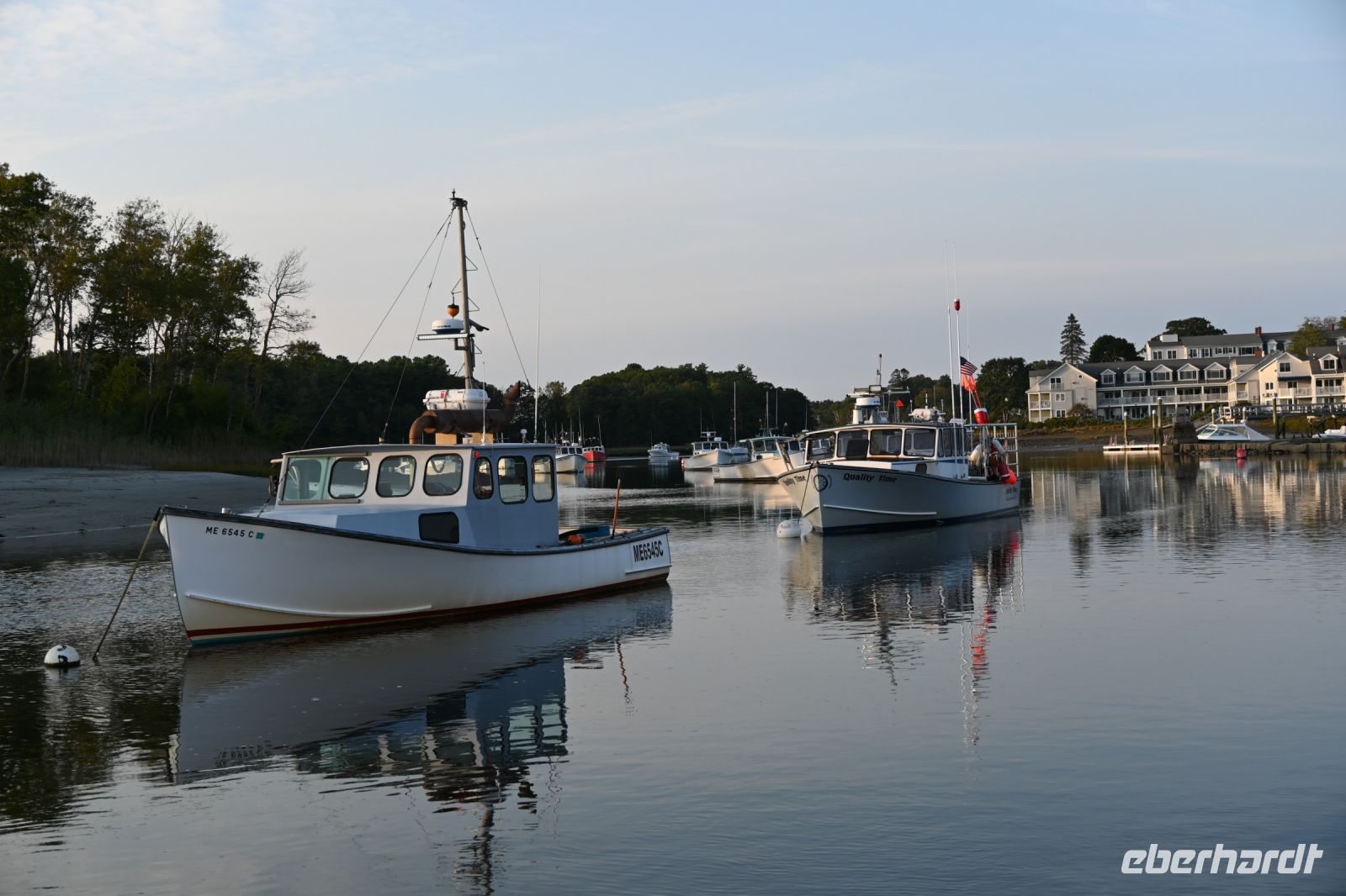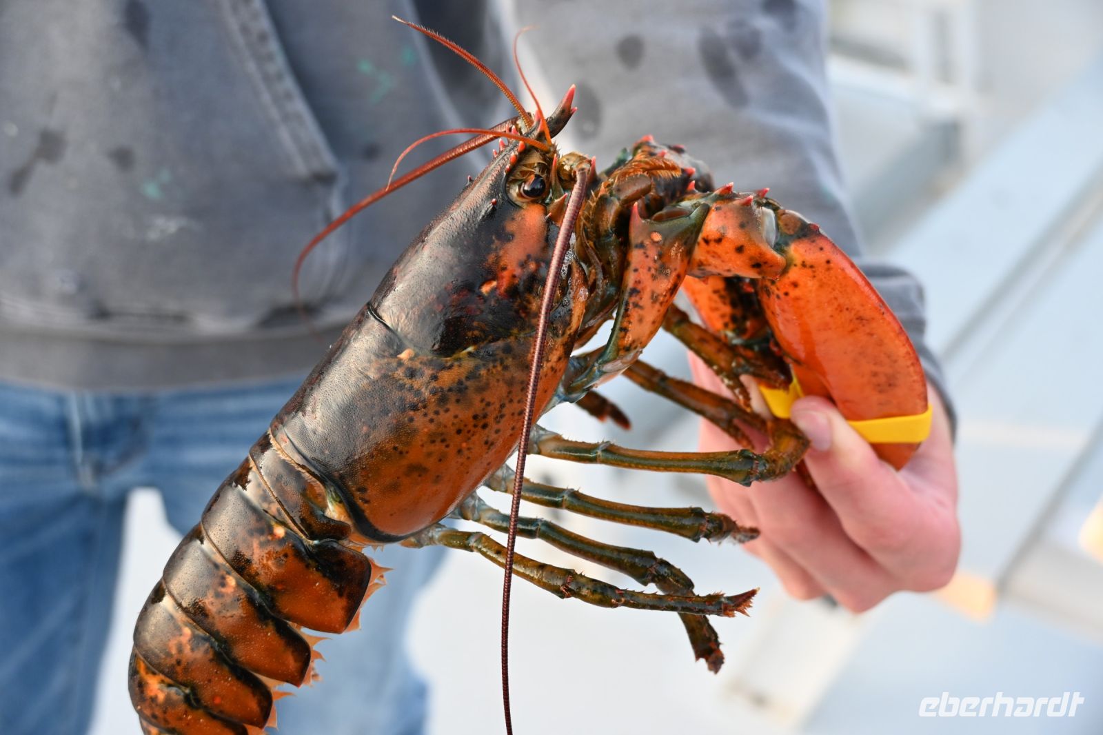 Fast unbemerkt über eine kleine Brücke erreichen wir Kennebunkport. Der Fischerort wird von vielen Läden und Restaurants geprägt. Wir haben etwas Freizeit und sollen anschließend bei einer Bootsfahrt nochmal eine andere Seite kennenlernen. Anfangs schwierig, die Ebbe versucht uns einen Strich durch die Rechnung zu machen. Doch dann kann es los gehen. Auf dem Fluss gibt es zahlreiche Fischer- und Sportboote. Letztendlich erreichen wir das offene Meer. Wenn wir zurück blicken, haben wir einen tollen Blick auf die kleine Bucht mit dem langen Strand. Wir hatten uns schon gewundert, wozu die vielen kleinen Bojen im Wasser sind und konnten uns noch keine Erklärung dafür geben, bis unser Kapitän eine dieser aufs Schiff holt und über einen Seilzug alles an die Oberfläche befördert. Am Ende des Seils ist ein Korb befestigt. Von diesen hatten wir schon einige an den Häfen gesehen. Damit werden Lobster (Hummer) gefangen. Und unser Kapitän hat Glück und hat schon etwas gefangen. Jedoch sind die Exemplare noch zu klein und müssen wieder zurück, für unsere Anschauung reicht es aber allemal.