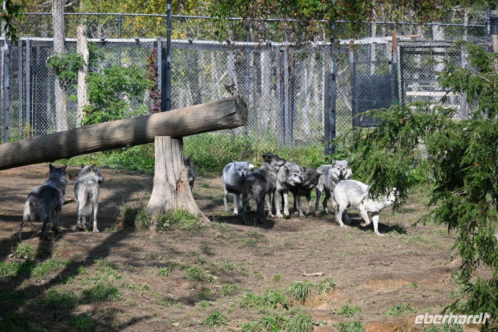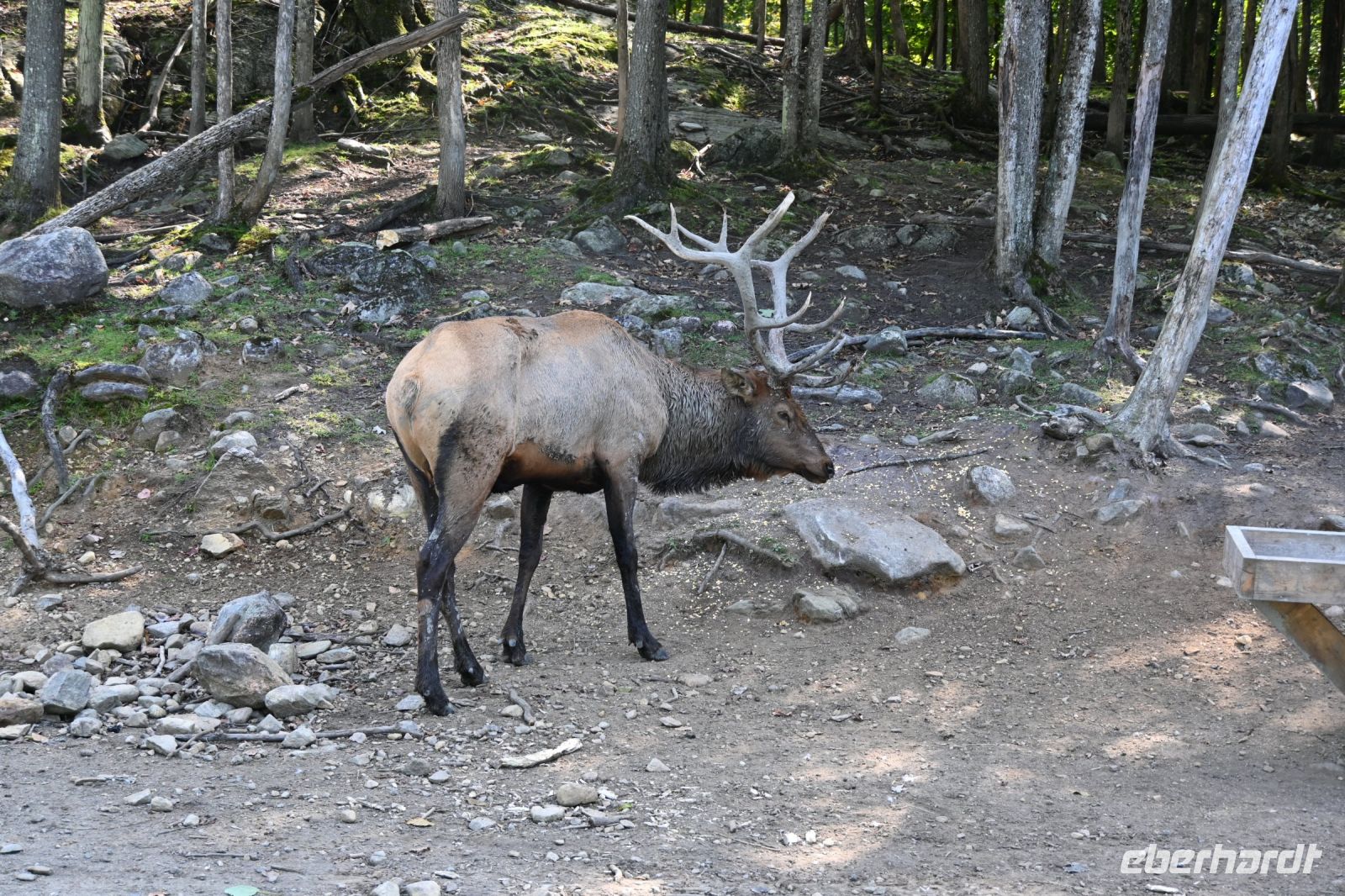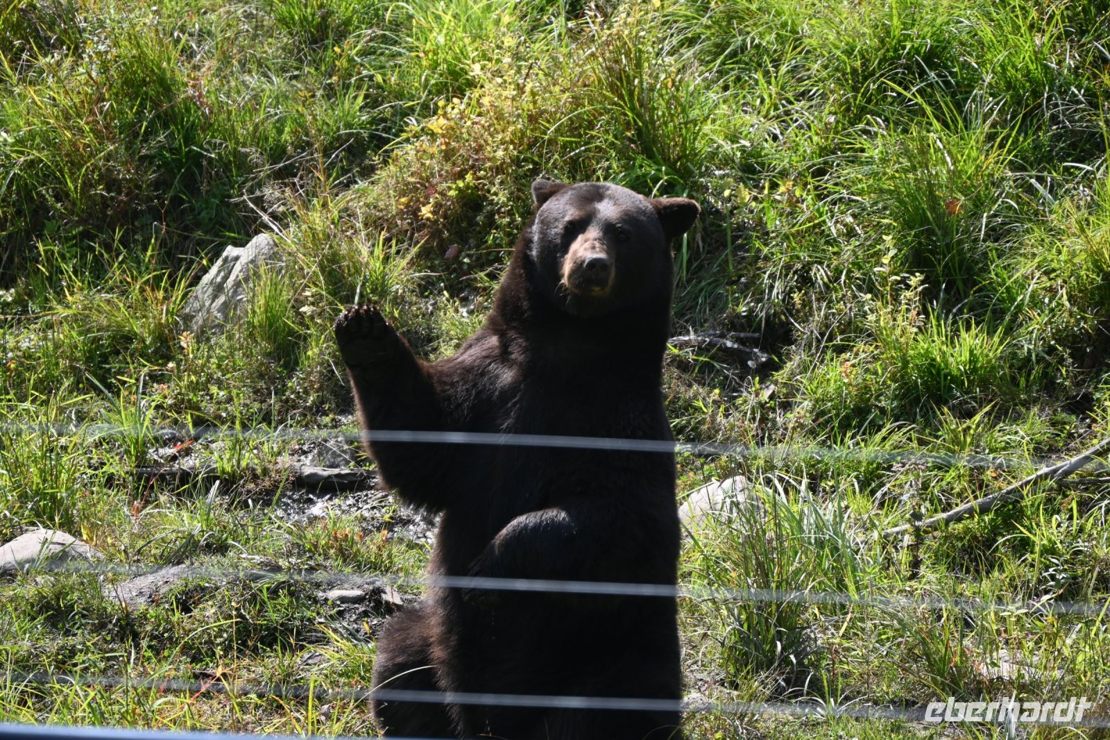 Überpünktlich sind wir heute bei unserem ersten Ausflug. Zwischen Ottawa und Montreal liegt der Omega Park. Mit einer Art Safaribus haben wir hier die Möglichkeit, die Tiere in ihrem natürlichen Lebensraum zu beobachten. Leider wurde unserem Fahrer des Parks die falsche Abfahrtszeit mitgeteilt und so starten wir leider verspätet. Als er endlich da ist, sind alle schnell im Bus. Wir werden mit Möhren ausgestattet und schon geht es los. Auf einem 15 Kilometer Rundweg erwarten uns hungrige Wapitis, obwohl schon zwei Busse vor uns in den Park gefahren sind, ist der Hunger nach Möhren anscheinend noch nicht gestillt. Der Wildpark hat eine Größe von 2200 Hektar mit ungefähr 600 Tieren. Es gibt Wildschweine, Schwarzbären, Biber, Füchse und auch Elche. Alles Tiere, die hier in Kanada heimisch oder eingewandert sind.