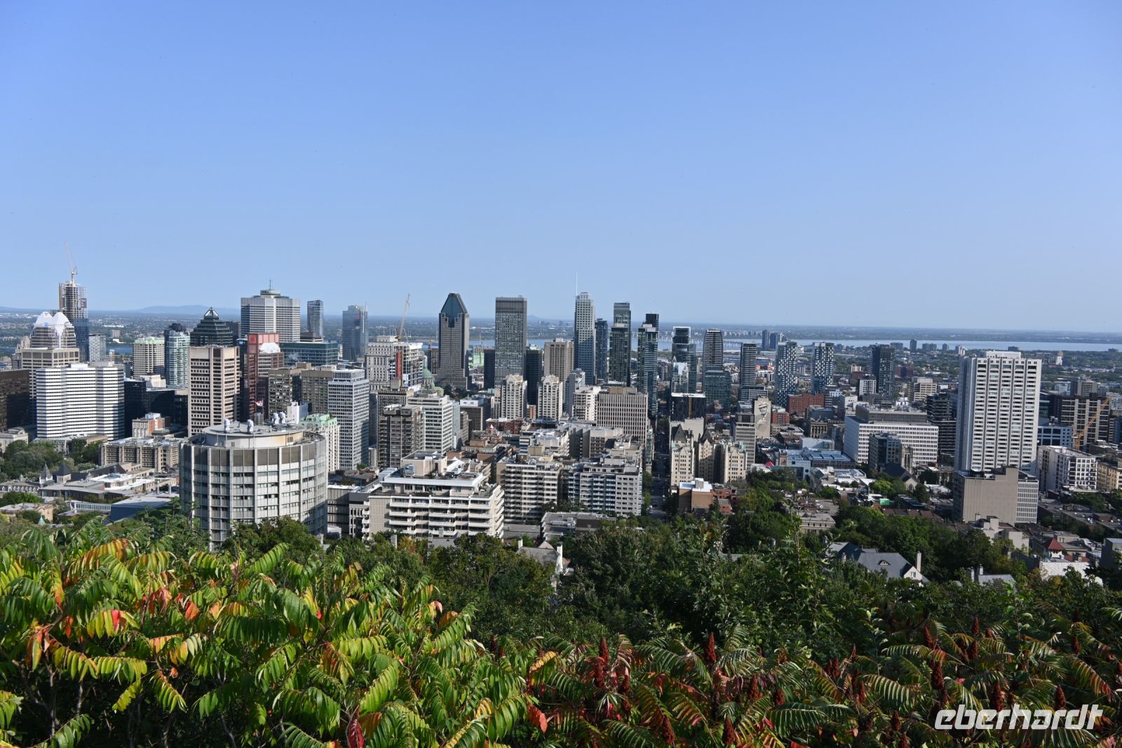 Unsere Rundfahrt führt uns durch den Großteil der Stadt. Doch am Besten lässt sich doch alles von oben überblicken, so lotst Bettina uns auf den Mont Royal. Von dem Hügelzug haben wir einen wunderbaren Blick über die Stadt bis hin zum St. Lorenz Strom. Wieder zwischen den Wolkenkratzern angekommen führt uns Bettina in die Unterstadt. Wie auch in Toronto finden die Einwohner hier alles, was sie zum täglichen Leben benötigen. Mit einem 32 Kilometer langem Netz werden Geschäfte, Bahnstationen und auch Stadien und Veranstaltungshallen verbunden. Im Winter bei Schnee und Kälte brauchen die Einwohner also nicht an die Oberfläche.
