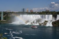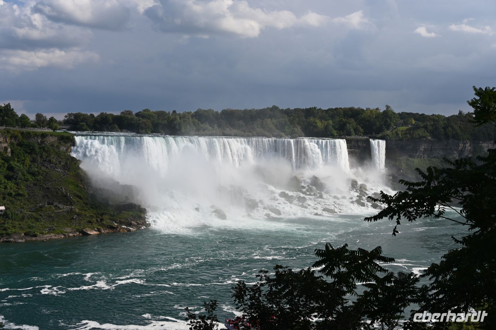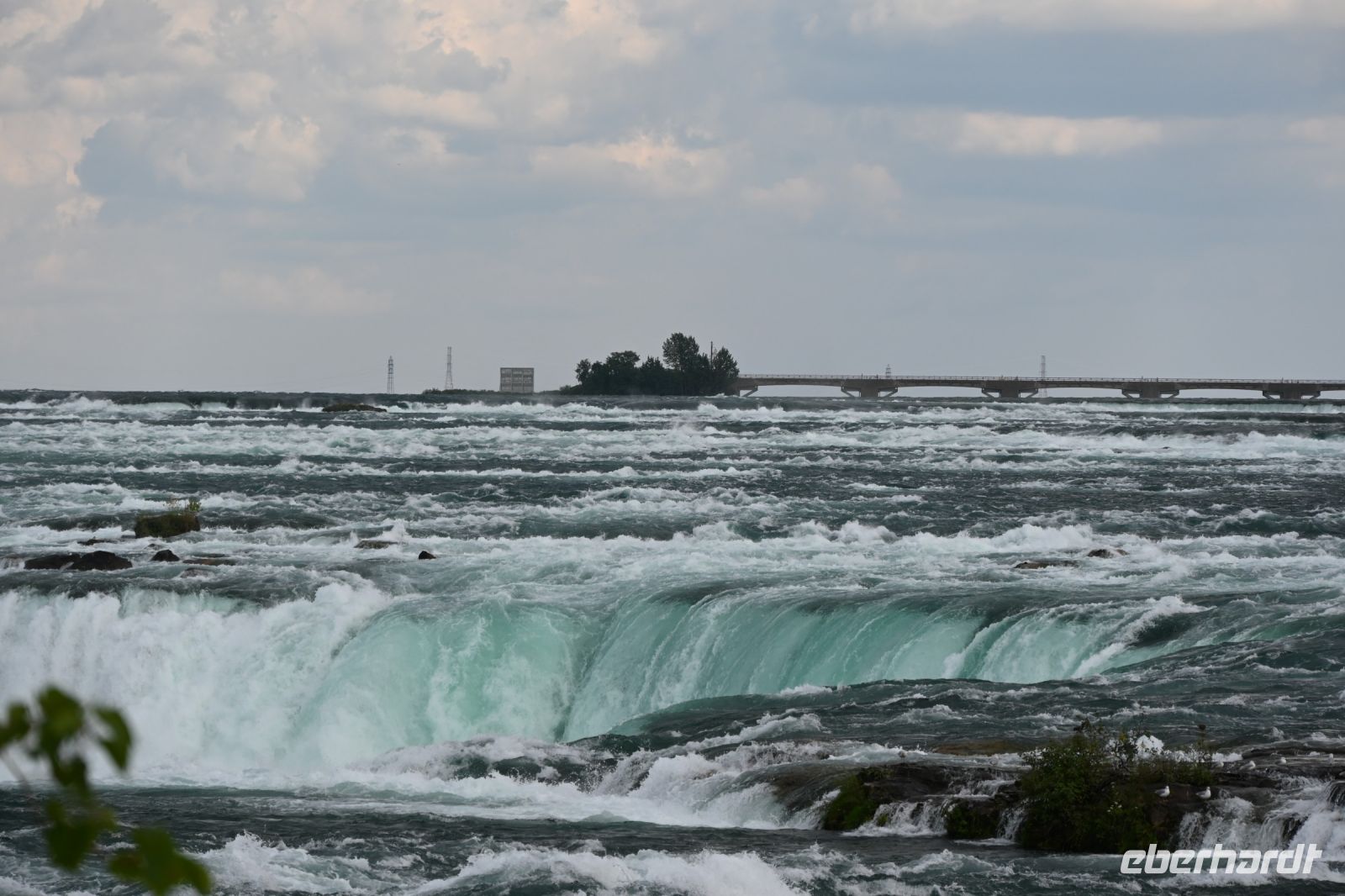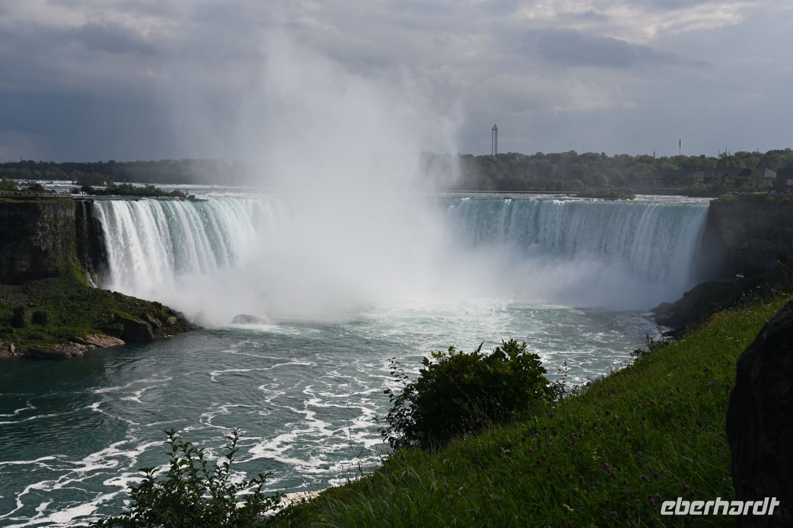 Auf unserer circa 400 Kilometer langen Strecke erzählt uns Margarith noch einiges über die Niagara Fälle. Durch die 6,4 Millionen Liter die pro Sekunde die 57 Meter nach unten stürzen, wird natürlich auch Gestein abgetragen. So kam es dazu, dass in der Nacht und im Winter 50% des Wassers über die Kraftwerke geleitet und Strom erzeugt wird. Seit der Entstehung vor rund 11.000 Jahren haben sich die Fälle schon elf Kilometer in Richtung Eriesee bewegt, 28 Kilometer ist der Fluss noch vom See entfernt. Damit bleibt uns noch etwas Zeit dieses Naturschauspiel zu bewundern.