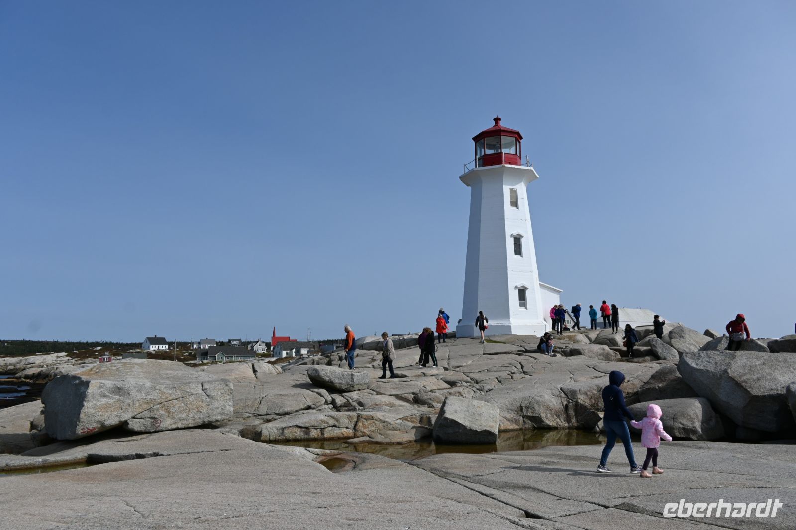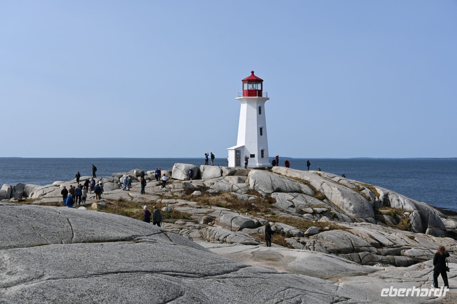 Wir verlassen Halifax und machen uns auf den Weg zum Wohl meistfotografierten Leuchtturm weltweit. An der östlichen Küste der Halbinsel Nova Scotia liegt das beschauliche Örtchen Peggys Cove. Mit nicht mal 1.000 Einwohnern ist hier ganz schön was los. Zahlreiche Touristen kommen hier her für das Foto vom 1915 erbauten Leuchtturm. Er thront auf, vom Wasser rund geschliffenen, Felsen. Wer auf ein Foto ohne Menschen hofft, muss schon bei Sonnenaufgang hier sein. Wenn man mehr Zeit hat, fährt man entlang der Küste und schaut sich auch noch die anderen 159 Leuchttürme an.