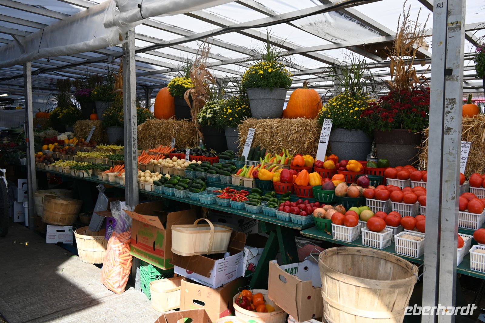 Mit festem Boden unter den Füßen geht es weiter im Bus durch die Stadt. Der St. Lawrence Market war einst das Rathaus von Toronto, heute werden hier von Dienstag bis Sonntag in den Geschäften zahlreiche Lebensmittel verkauft. In einem kleinen Zelt direkt in der Nähe verkaufen auch die Bauern aus der Umgebung einmal wöchentlich ihre frischen Lebensmittel.