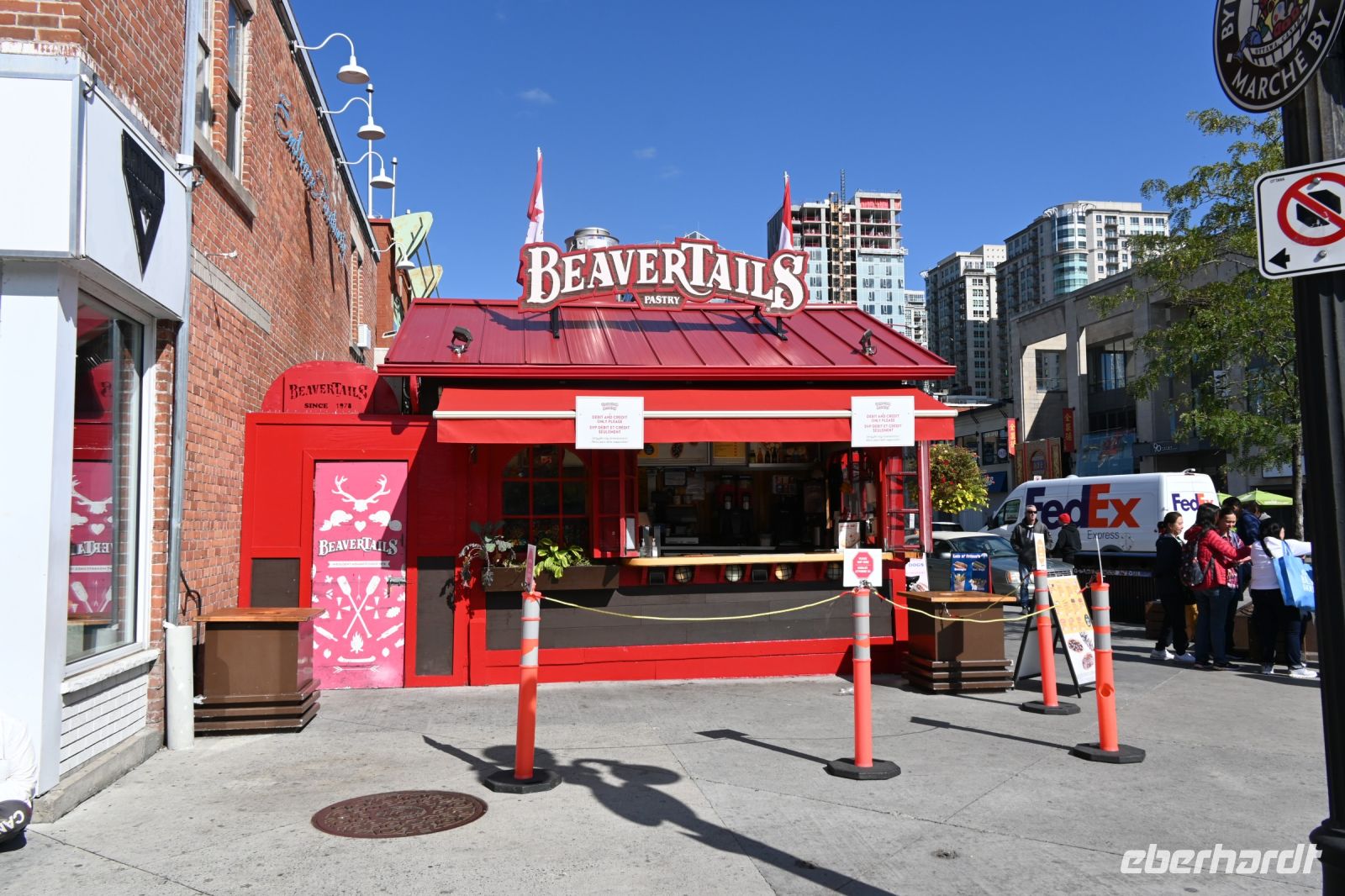 Da es bereits Mittagszeit ist, halten wir an der Markthalle. Hier gibt es die bekannten „Beavertails“, ein aus Vollkornmehl hergestellter Teig, welcher zur Form eines Biberschwanzes gezogen und frittiert wird. Anschließend wird das ganze mit unterschiedlichen Süßigkeiten, je nach Geschmack, getoppt. Das Original ist mit Zucker und Zimt.