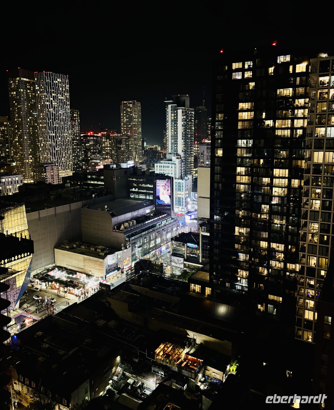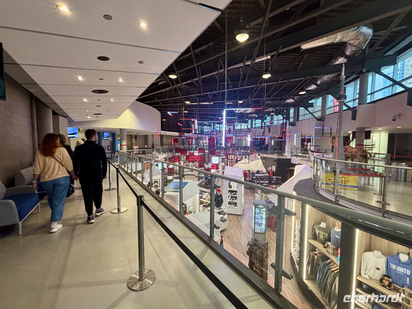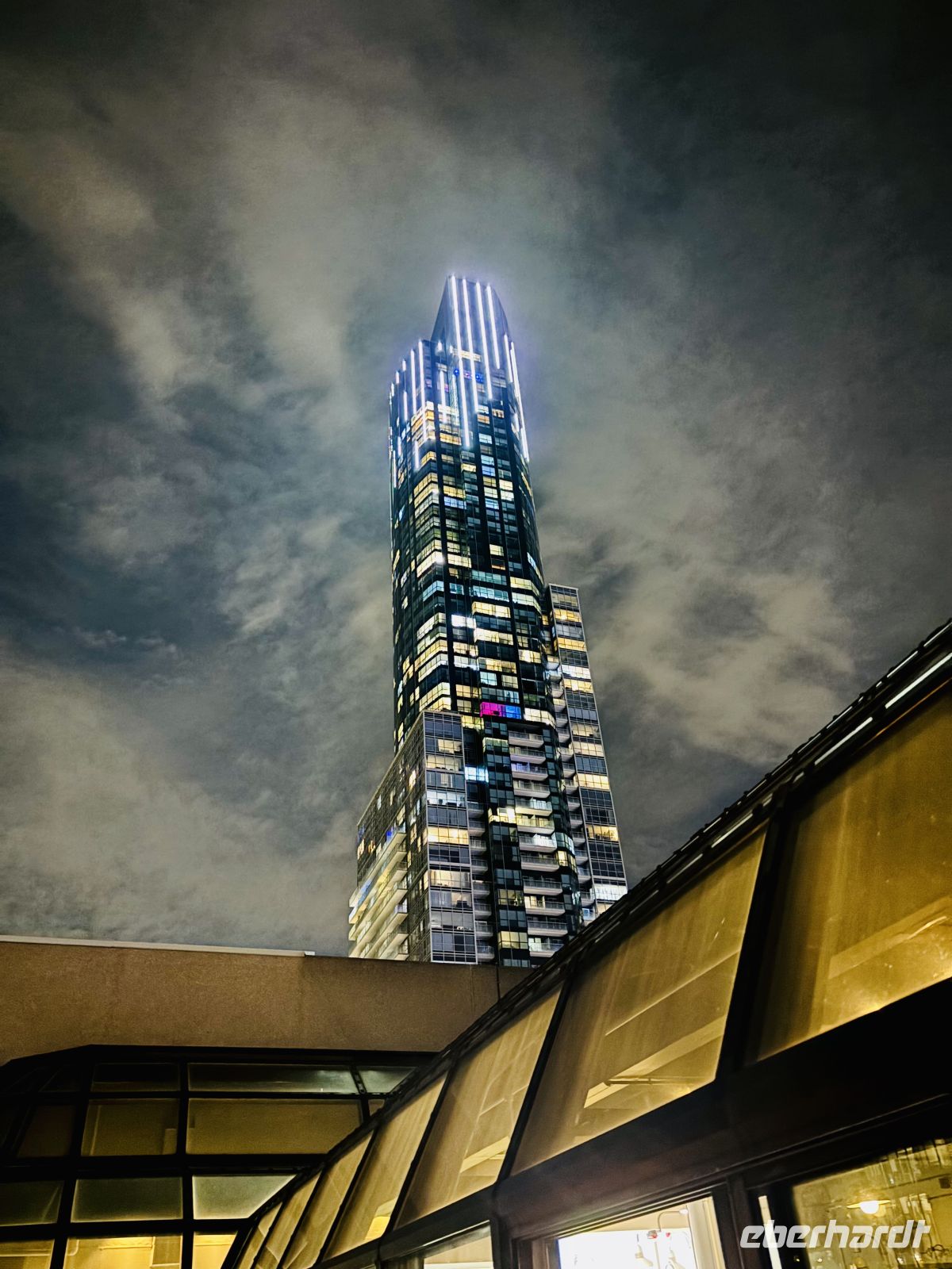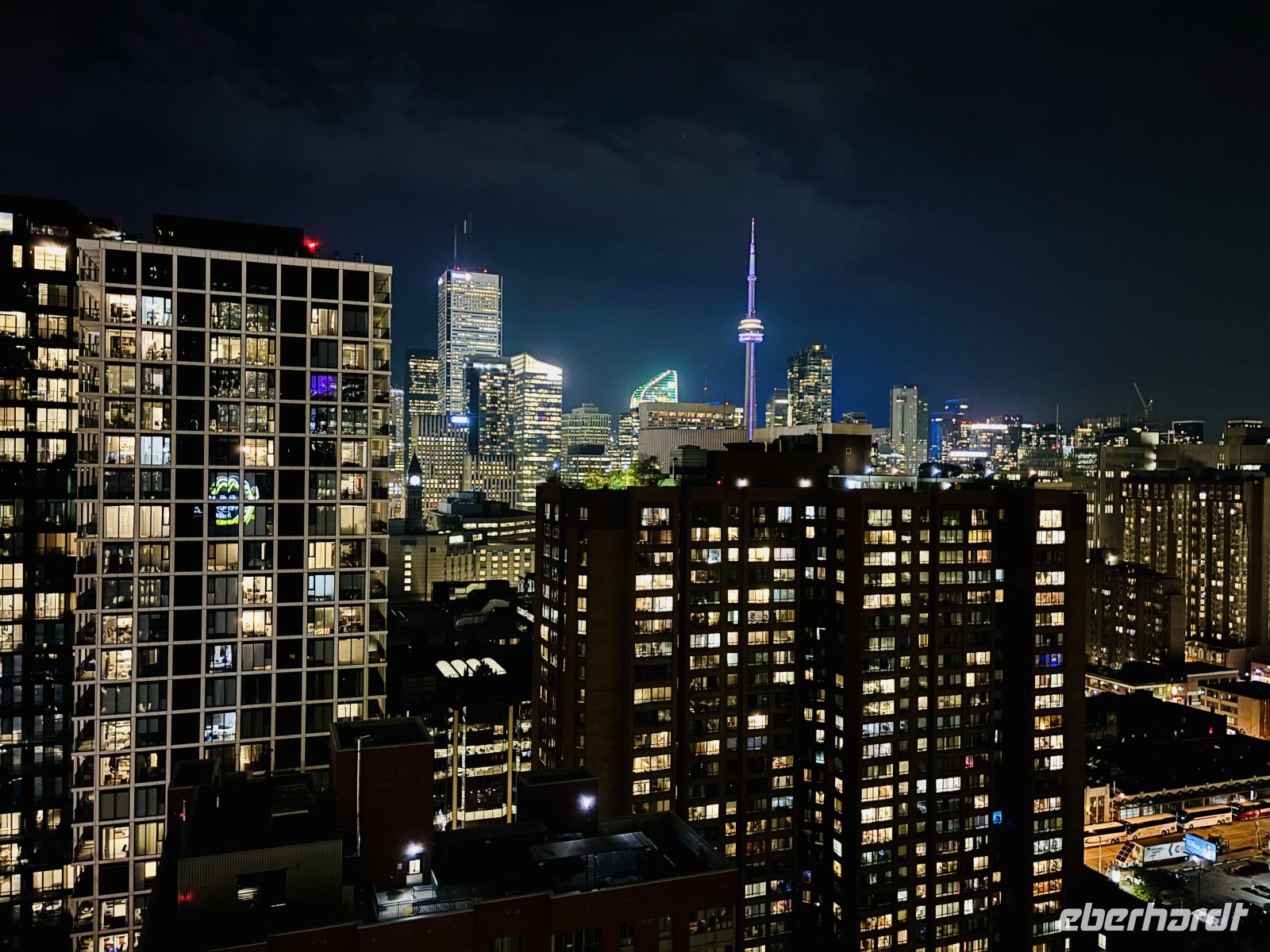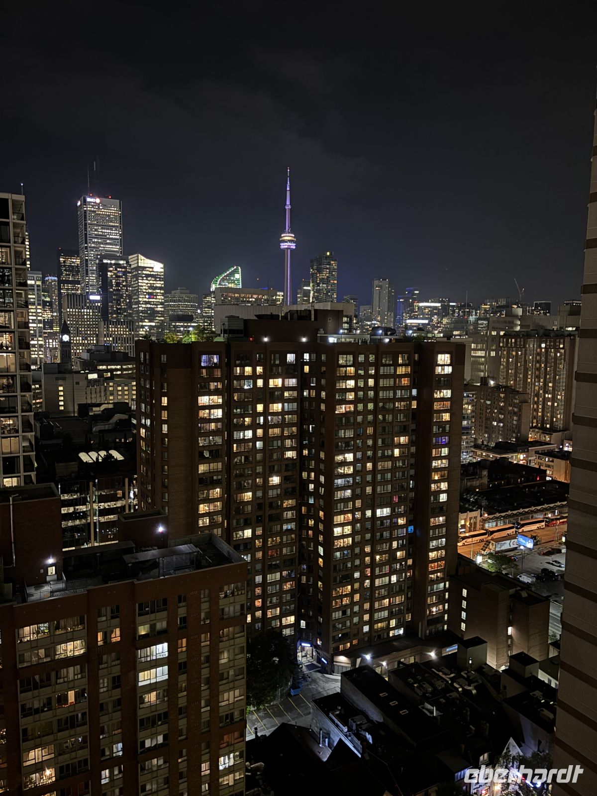 Höhepunkt unsererBesichtigungstour ist mit Sicherheit der 550 Meter hohe CN Tower, der 1976 erbaut wurde und seinen Namen der kanadischen Eisenbahngesellschaft Canadian National Railway verdankt. Wir haben Glück, außer uns sind fast keine Besucher da. Die Aufzüge und die Panoramaterrassen haben wir fast für uns alleine, keine Warteschlangen, kein Stau. Mit atemberaubender Geschwindigkeit schießen wir hinauf auf die Aussichtsplattform in fast 450 m Höhe. Ganz Wagemutige überqueren das gläserne Fußbodenareal und genießen den Blick in die Tiefe – vielleicht mit leichter Gänsehaut...?