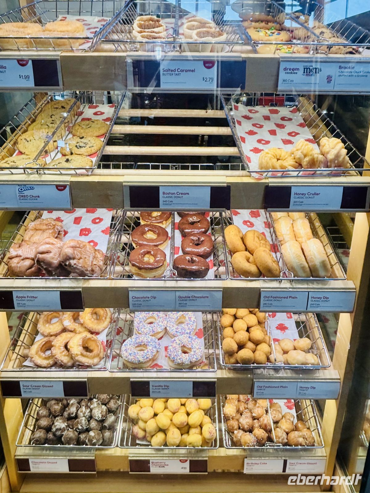 Dann verlassen wir die quirlige Großstadt und fahren entlang der Ufer des gigantischen Ontariosees, der in seinen Ausmaßen eher an ein Binnenmeer erinnert, in ländlichere Gebiete. Über 80 Weingüter gibt es in der milden Niagara-Region, wo hauptsächlich Riesling und Chardonnay angebaut werden. Wir machen eine Mittagspause und lernen die Kult-Backwarenkette Tim Horton’s kennen - ein Muss für jeden Kanada-Urlauber. Hier gibt es die berühmten „Donut-Holes“ (auch „Timbits“ genannt), frittierte Teigbällchen, die aussehen, als wären sie aus einem Donut herausgeschnitten.