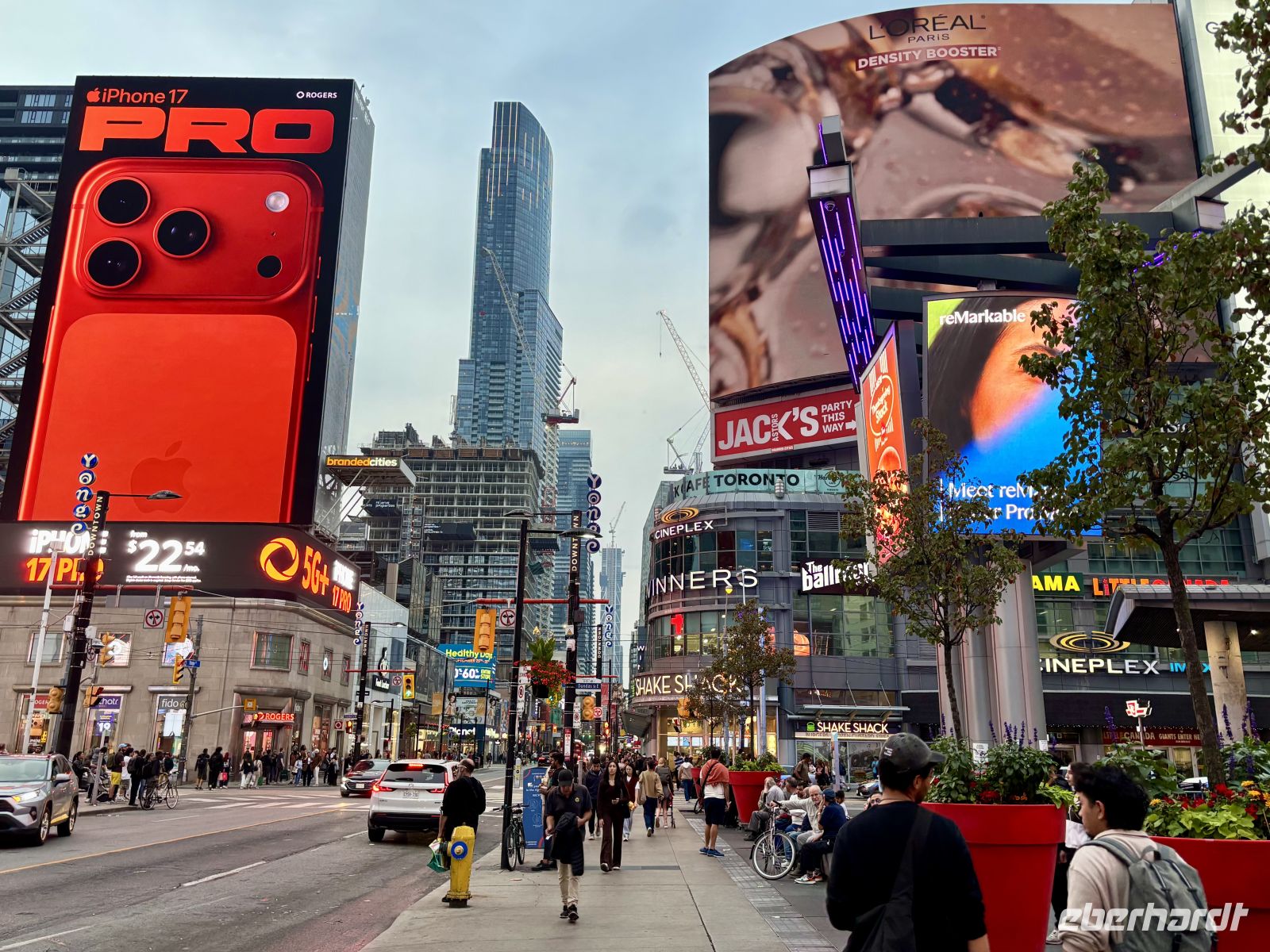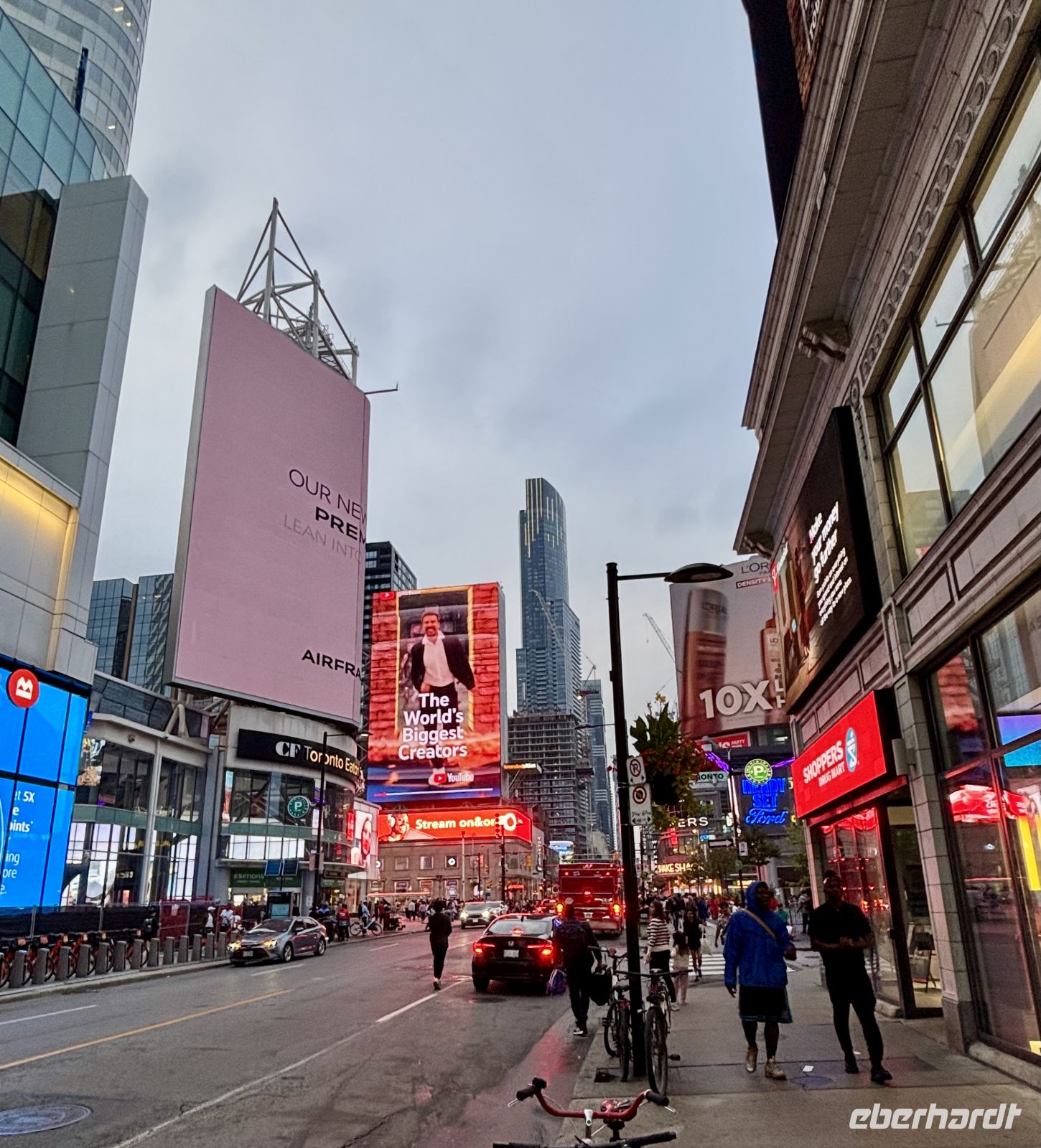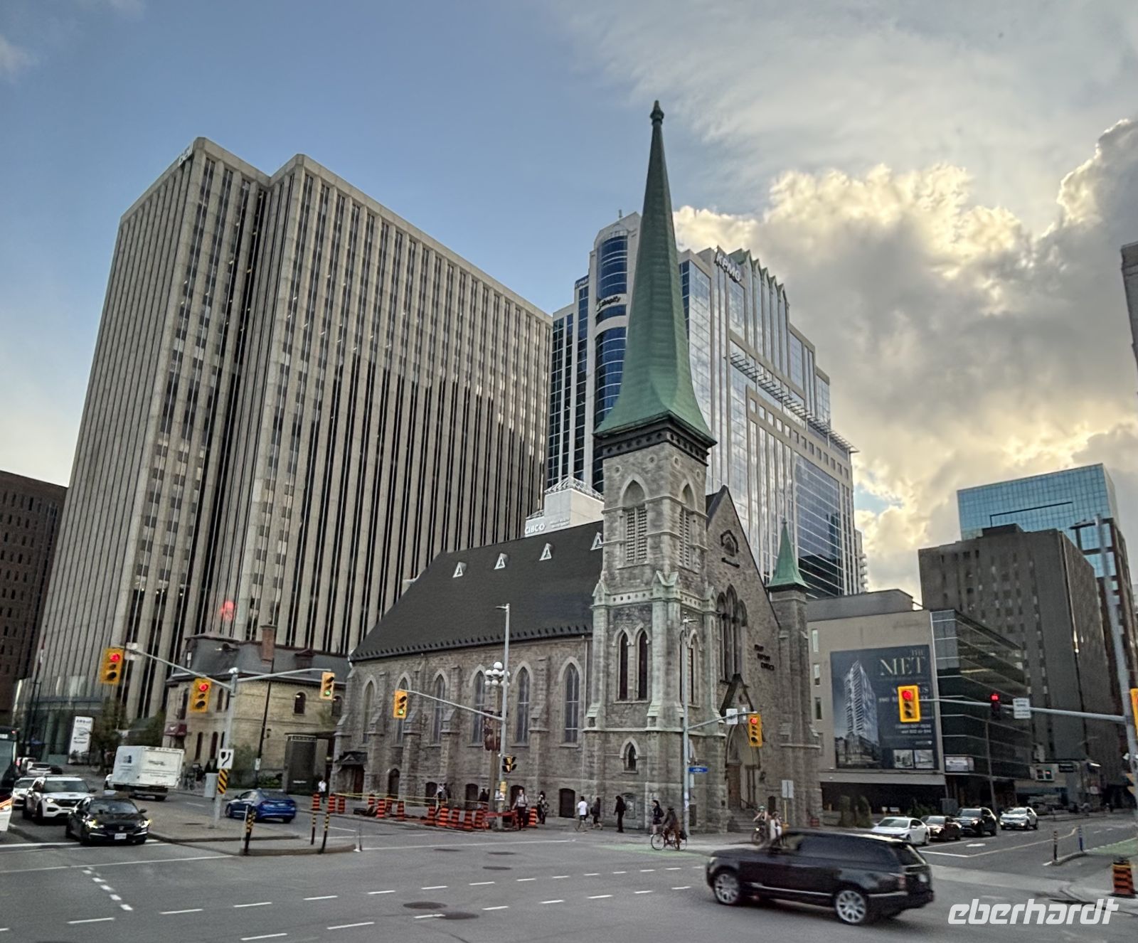 Nach dem Frühstück starten wir mit Dagmar, die lebhafte Metropole Toronto, Hauptstadt der Provinz Ontario, mit ihren 3 Millionen Einwohnern zu erobern. Obwohl es eine Großstadt ist und wir morgens durch den Berufsverkehr fahren, sind die Straßen frei und wir können unsere Rundfahrt ohne Probleme durchführen. Es geht durch die Altstadt und das Bankenviertel, wir sehen die Oper und das Kunstmuseum.