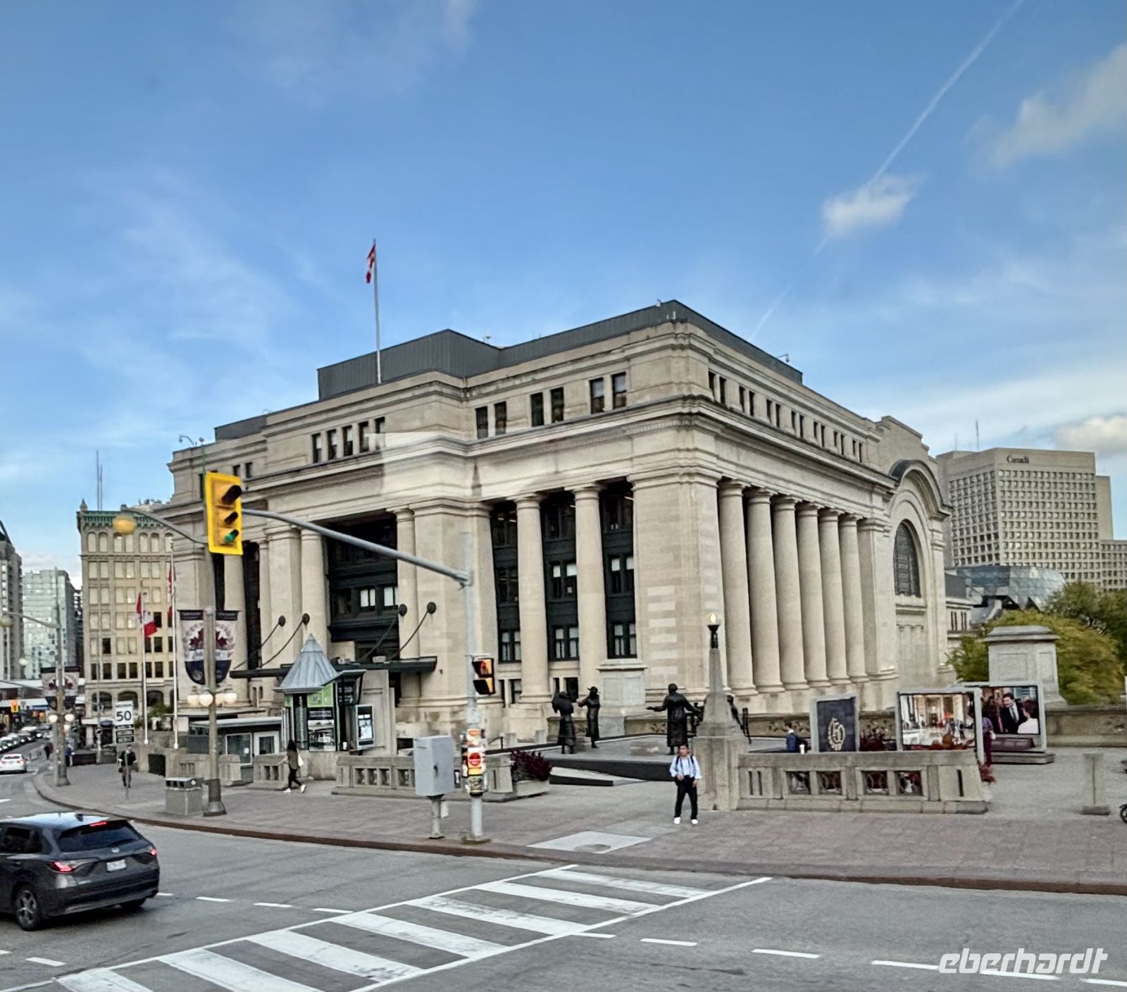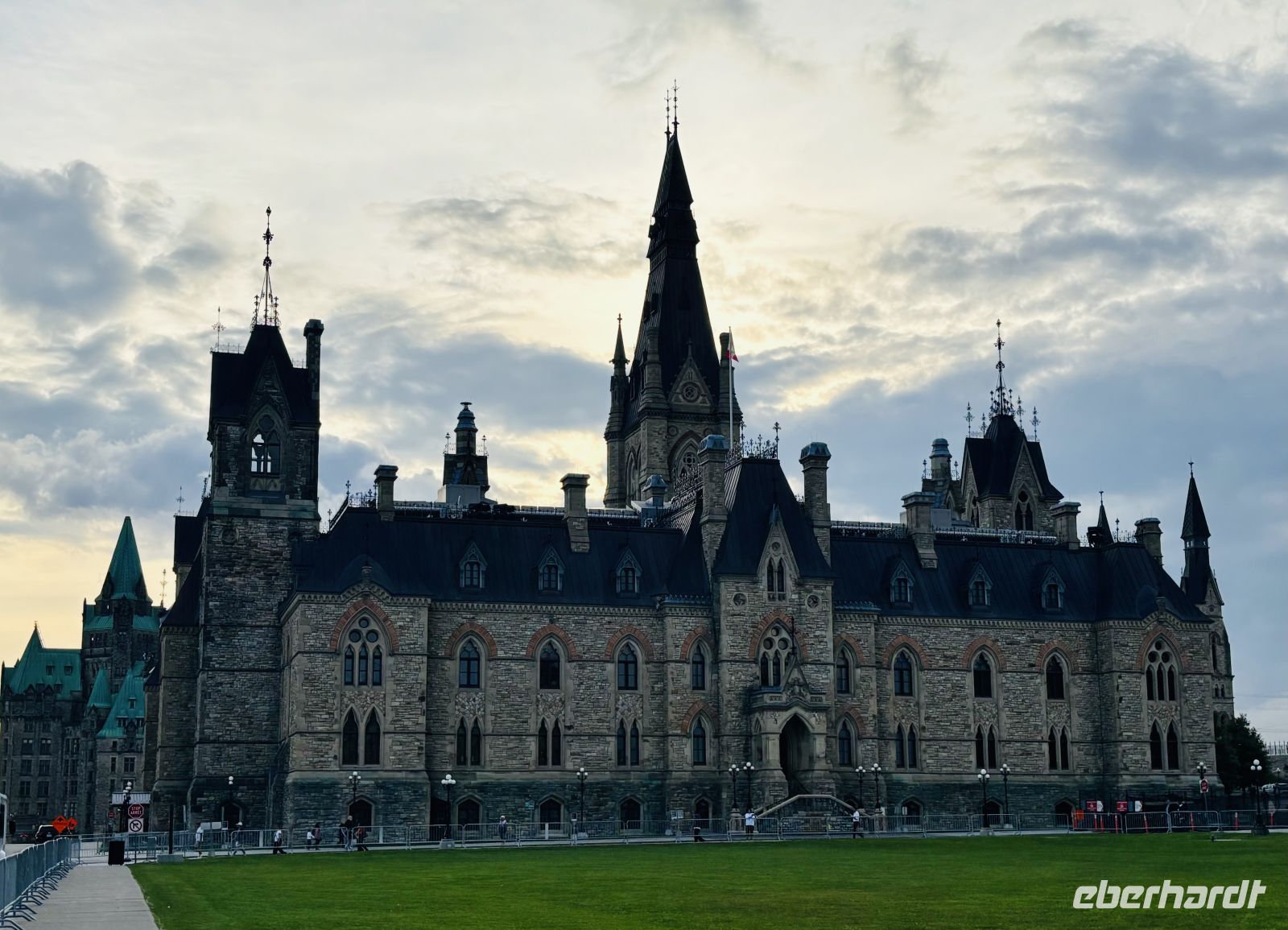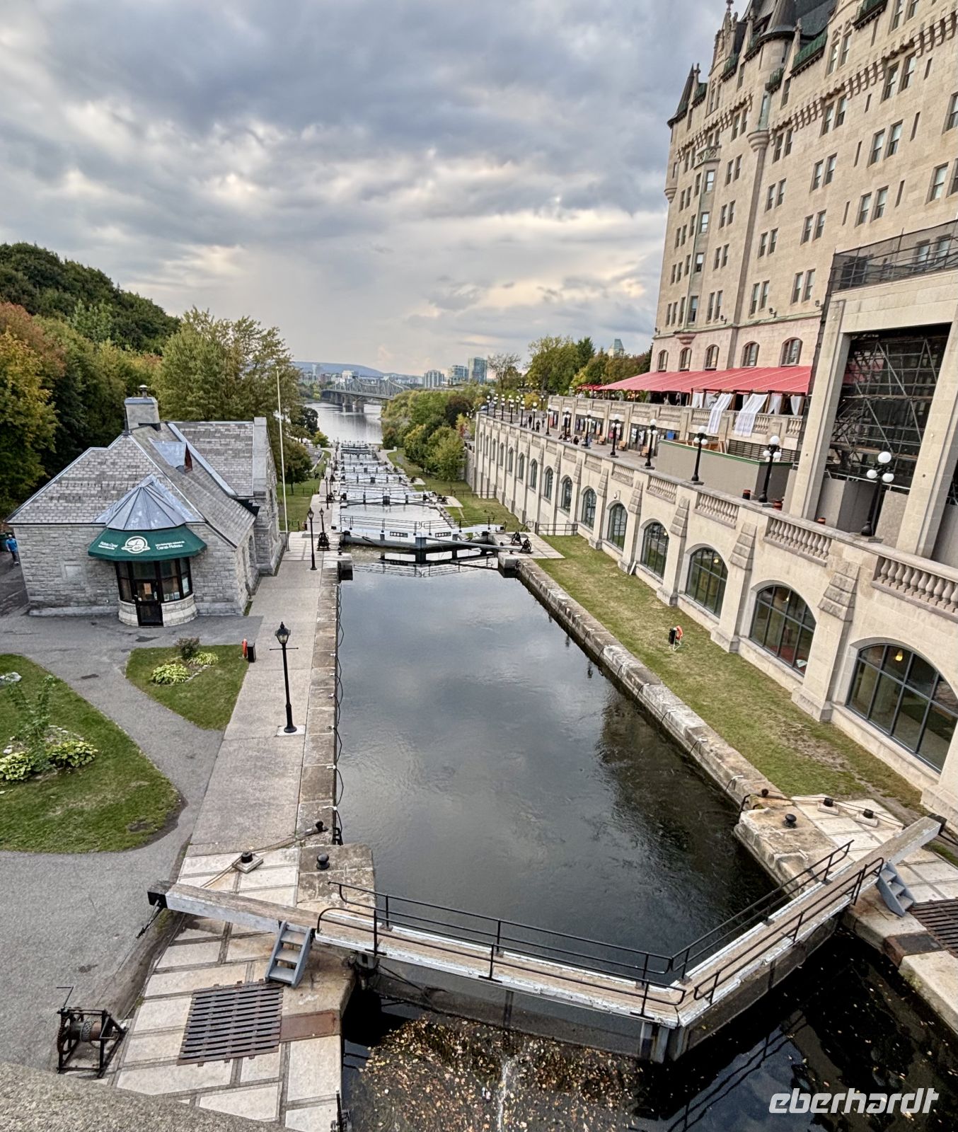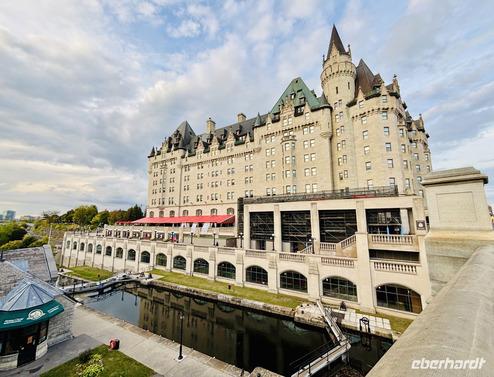 Wir genießen die Bootsfahrt und die wunderschönen Villen auf den kleinen Inseln. Nach einer langen Weiterfahrt erreichen wir am Nachmittag dann Kanadas Hauptstadt Ottawa, berühmt-berüchtigt als eine der kältesten Städte der Welt. Unsere Reiseleiterin Dagmar macht mit uns eine Orientierungsfahrt durch die Stadt und wir sehen die Basilika Notre-Dame aus dem 19. Jh., das Kunstmuseum, das Regierungsviertel Parliament Hill, die belebte Fußgängerzone Sparks Street, den künstlich angelegten Rideau-Kanal, den Supreme Court of Canada und bewundern die prachtvolle Architektur. Schließlich erreichen wir unser heutiges Hotel, das Holiday Inn Ottawa Downtown. Später machen wir einen Abendspaziergang, um das Parlamentsgebäude, das Luxushotel Château Laurier und die Schleusenanlage des Rideau-Kanals in Ruhe zu betrachten. Danach gehen wir noch mit einem Teil unserer Reisegruppe gemeinsam essen im Restaurant Occo, nur zwei Minuten vom Hotel entfernt und genießen die köstlichen Gerichte.