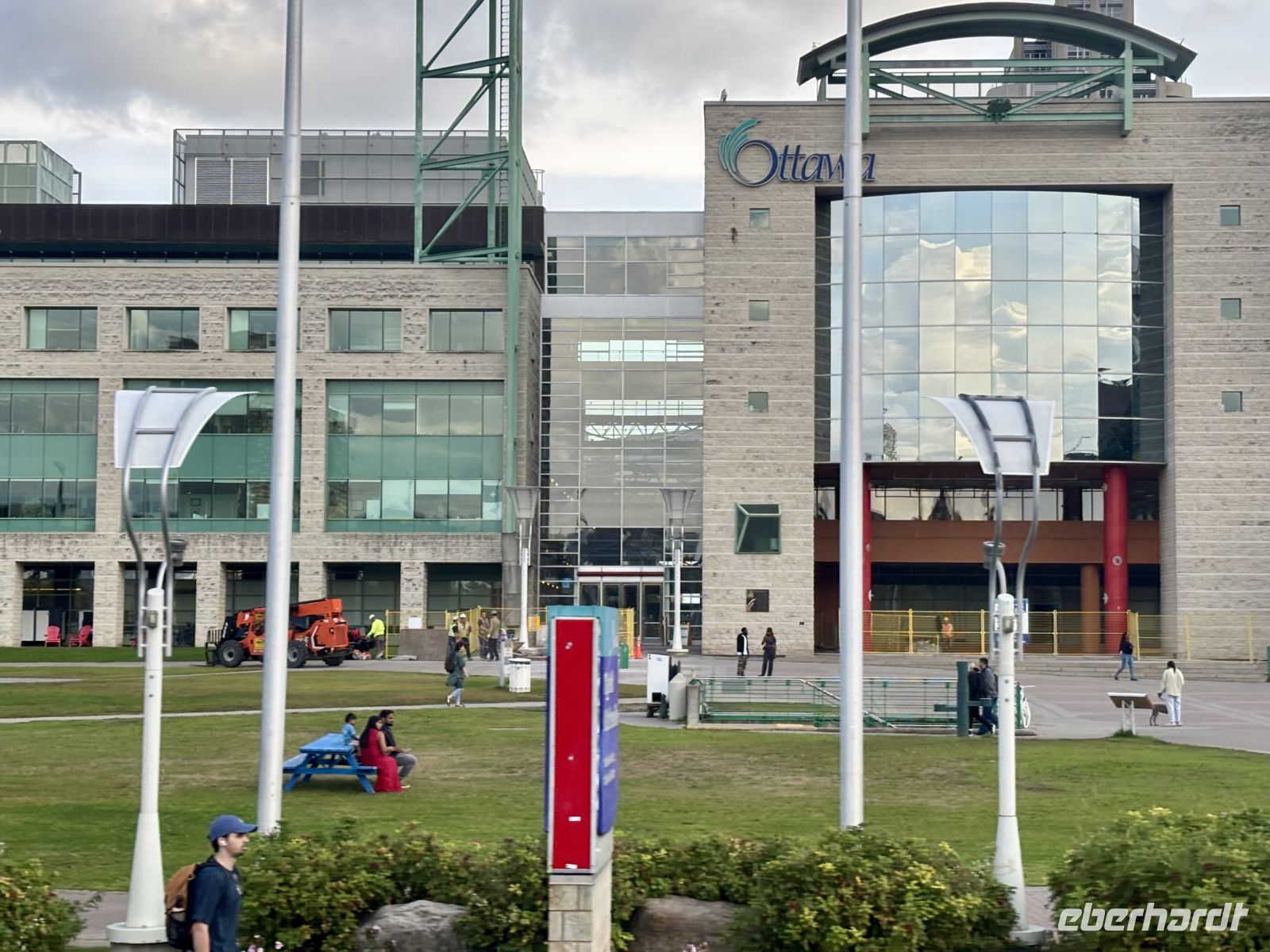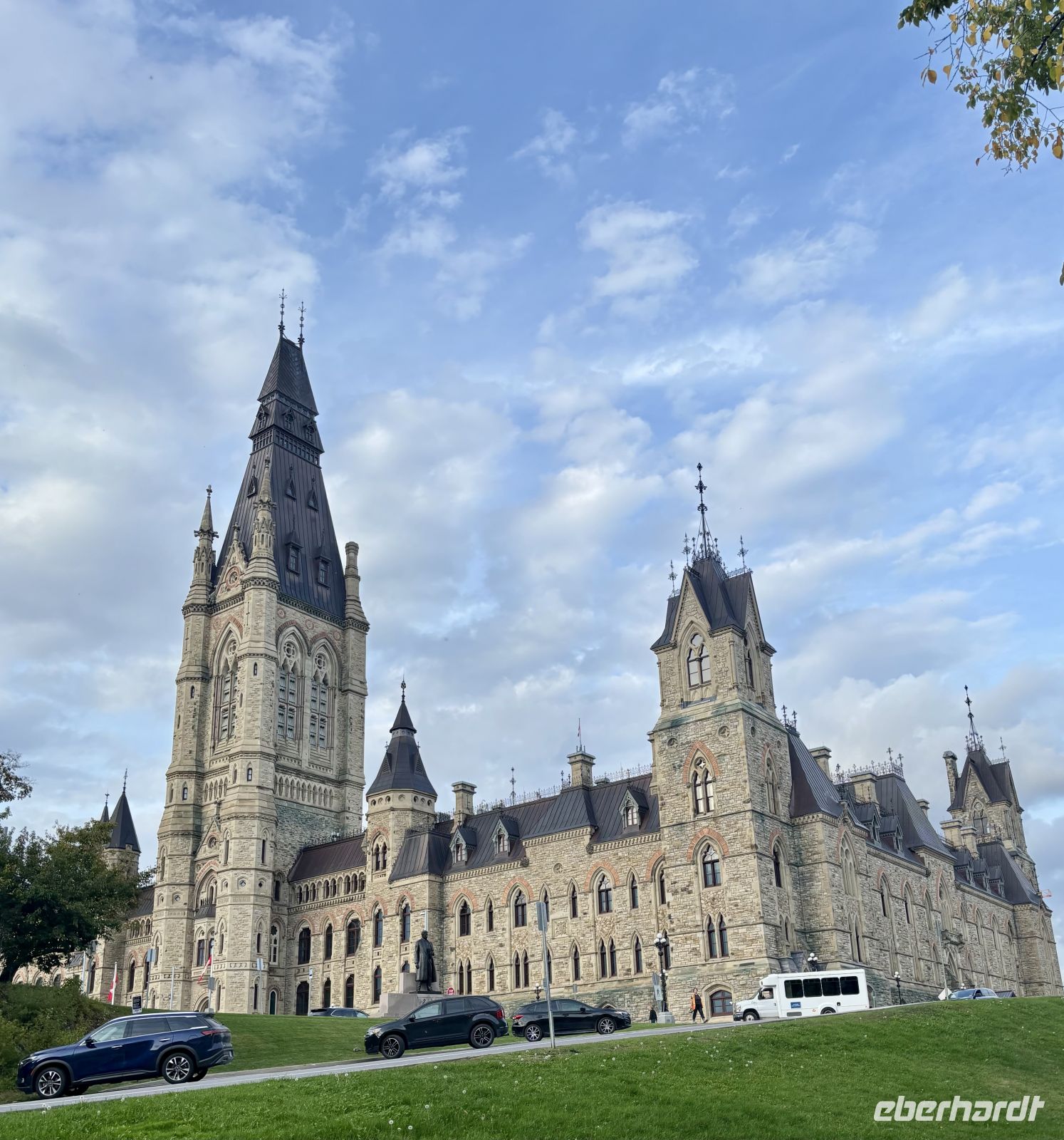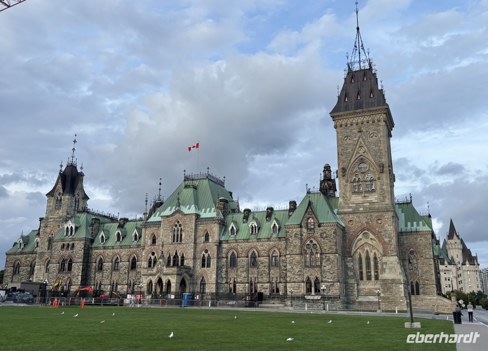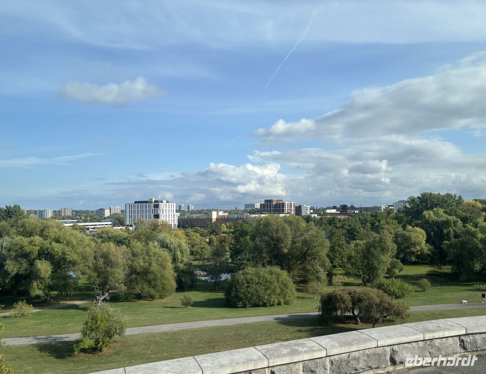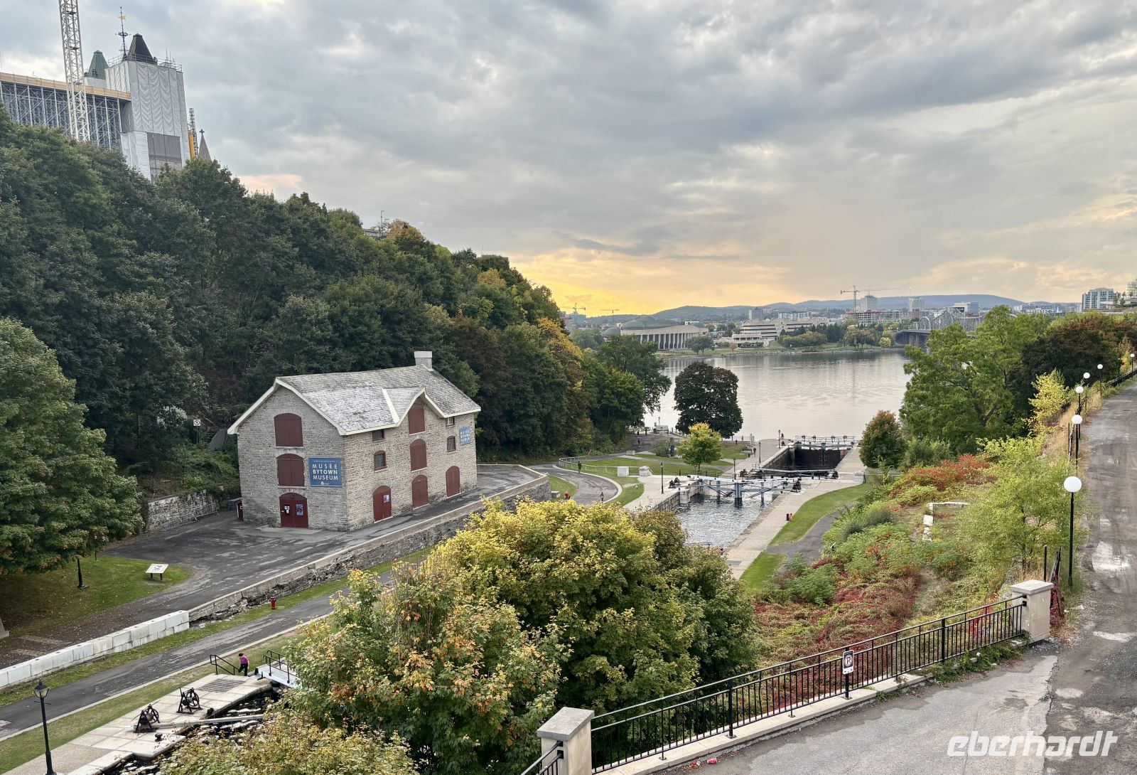 Wir genießen die Bootsfahrt und die wunderschönen Villen auf den kleinen Inseln. Nach einer langen Weiterfahrt erreichen wir am Nachmittag dann Kanadas Hauptstadt Ottawa, berühmt-berüchtigt als eine der kältesten Städte der Welt. Unsere Reiseleiterin Dagmar macht mit uns eine Orientierungsfahrt durch die Stadt und wir sehen die Basilika Notre-Dame aus dem 19. Jh., das Kunstmuseum, das Regierungsviertel Parliament Hill, die belebte Fußgängerzone Sparks Street, den künstlich angelegten Rideau-Kanal, den Supreme Court of Canada und bewundern die prachtvolle Architektur. Schließlich erreichen wir unser heutiges Hotel, das Holiday Inn Ottawa Downtown. Später machen wir einen Abendspaziergang, um das Parlamentsgebäude, das Luxushotel Château Laurier und die Schleusenanlage des Rideau-Kanals in Ruhe zu betrachten. Danach gehen wir noch mit einem Teil unserer Reisegruppe gemeinsam essen im Restaurant Occo, nur zwei Minuten vom Hotel entfernt und genießen die köstlichen Gerichte.