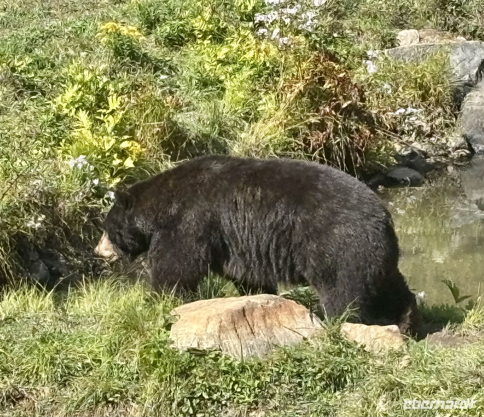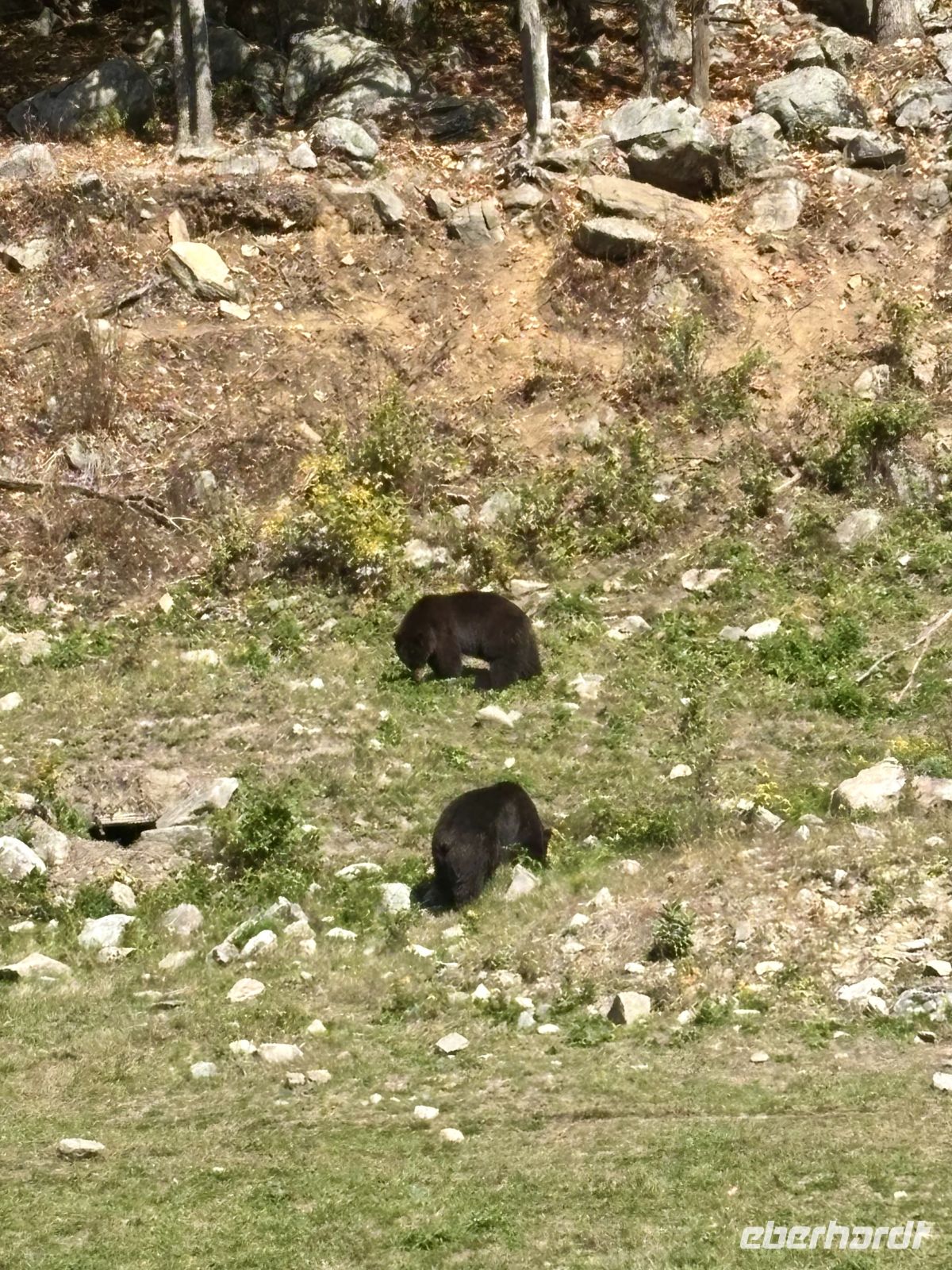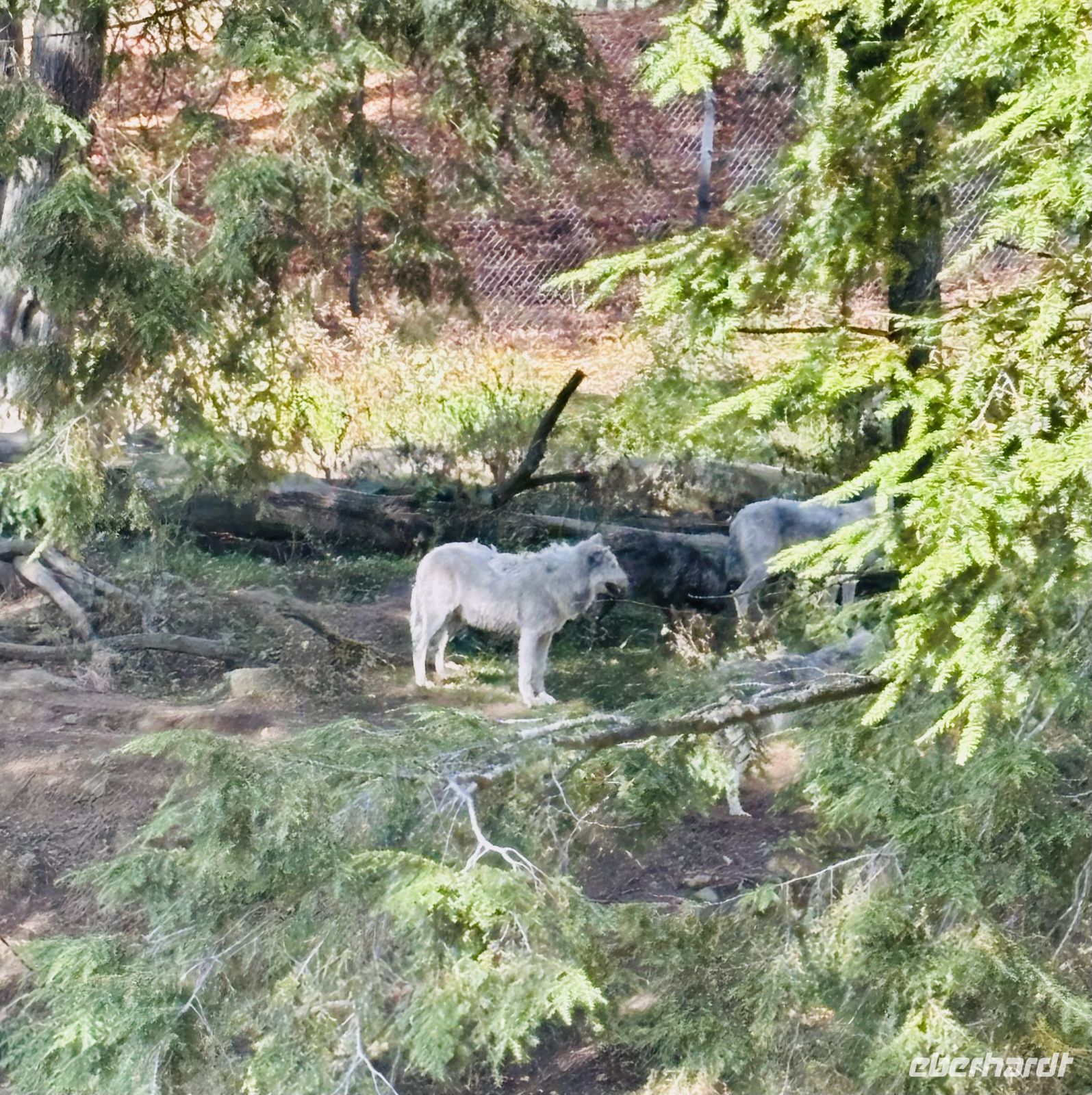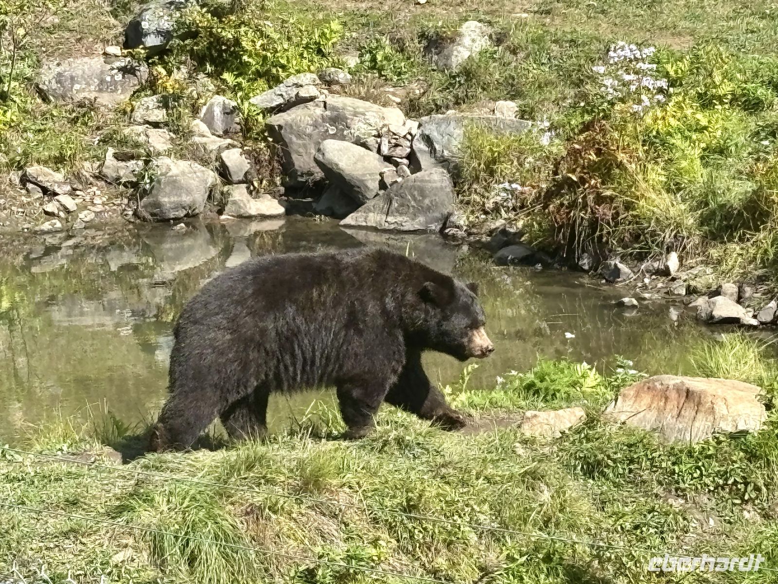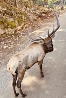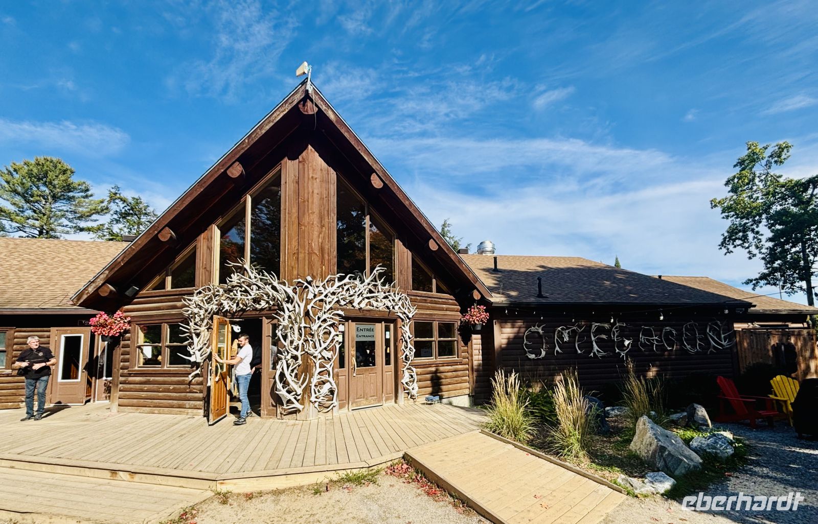 Es ist, als ob die Tiere des Parks nur auf uns gewartet hätten, alle zeigen sich. Unzählige Karibus belagern auf dem Rundweg die Fahrzeuge und strecken uns ihre Schnauze entgegen. Majestätische Hirsche mit unglaublichen Geweihen liegen im Schatten der Bäume, Wildschweine wuseln durch das Unterholz und über die Wege, Wölfe durchstreifen ihr Gehege und mindestens sechs Bären können wir beobachten. In unserem Bus springen wir ständig mit gezückter Kamera von einer Seite auf die andere, denn immer wieder bieten sich neue Fotomotive und alles vor der Kulisse des wunderschönen Herbstwaldes, dessen Farben im Sonnenschein leuchten.