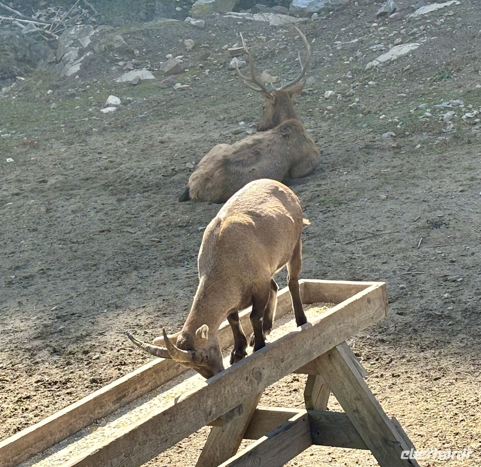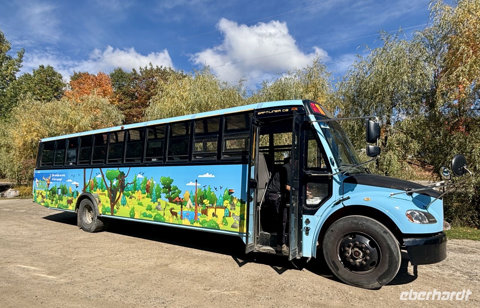 Wir steigen um in einen offenen Bus, vorher haben wir uns im Shop noch mit Möhren versorgt, um den tierischen Parkbewohnern auch eine kleines „Leckerli“ anbieten zu können. Und das wird auch gerne angenommen...