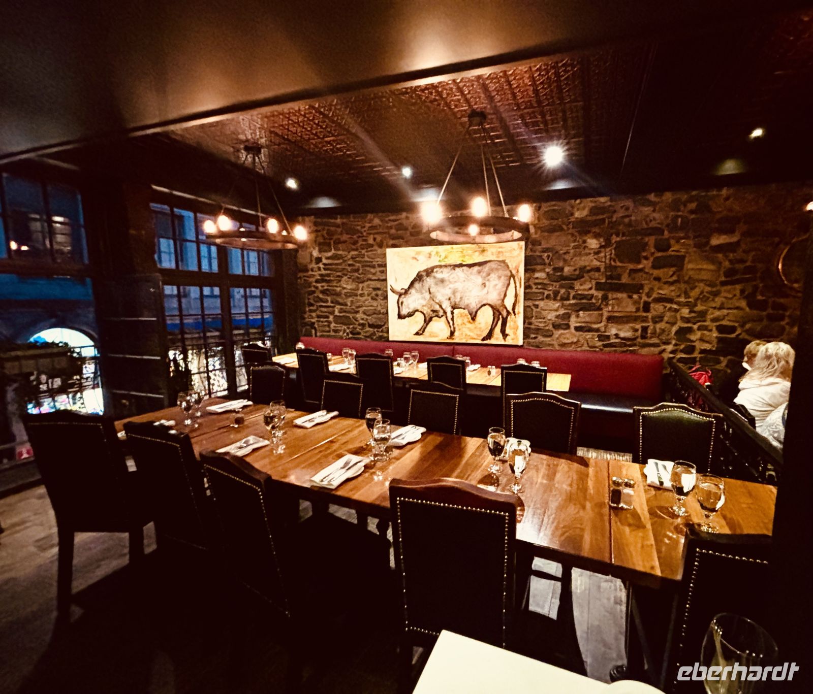 Wir checken ein in unserem heutigen Hotel Hyatt Place Montreal Downtown und am Abend gehen wir gemeinsam essen in das Vieux Port Steakhouse. In dem urigen Lokal, das typisch ist für die Altstadt, das „Vieux Montreal“ herrscht reger und sehr lebhafter Betrieb, was den Geräuschpegel in die Höhe treibt. Unser Busfahrer Fred bringt uns zurück zum Hotel, um uns den Fußweg von 30 Minuten zu ersparen und wir fallen satt und müde ins Bett.