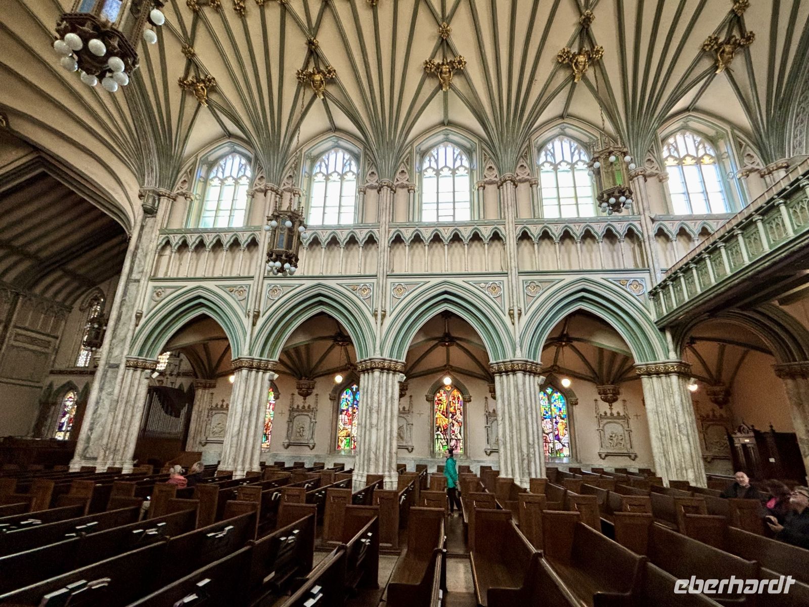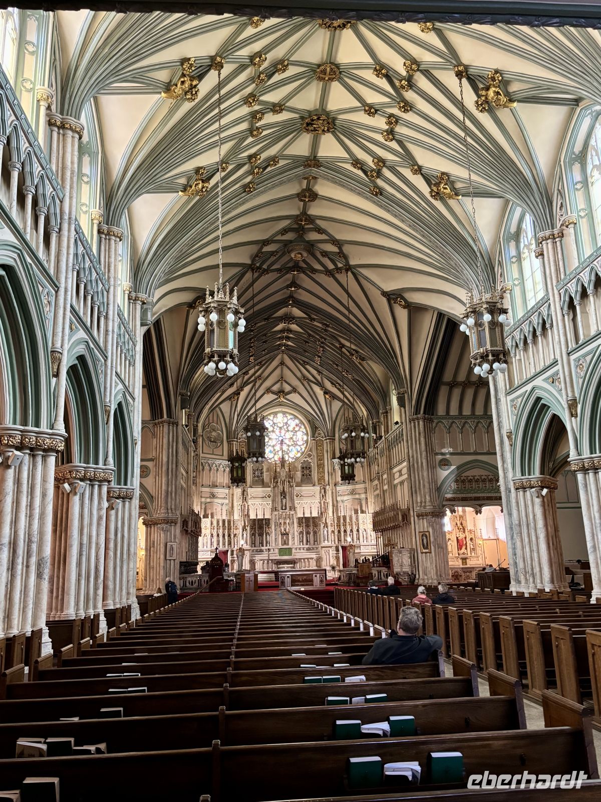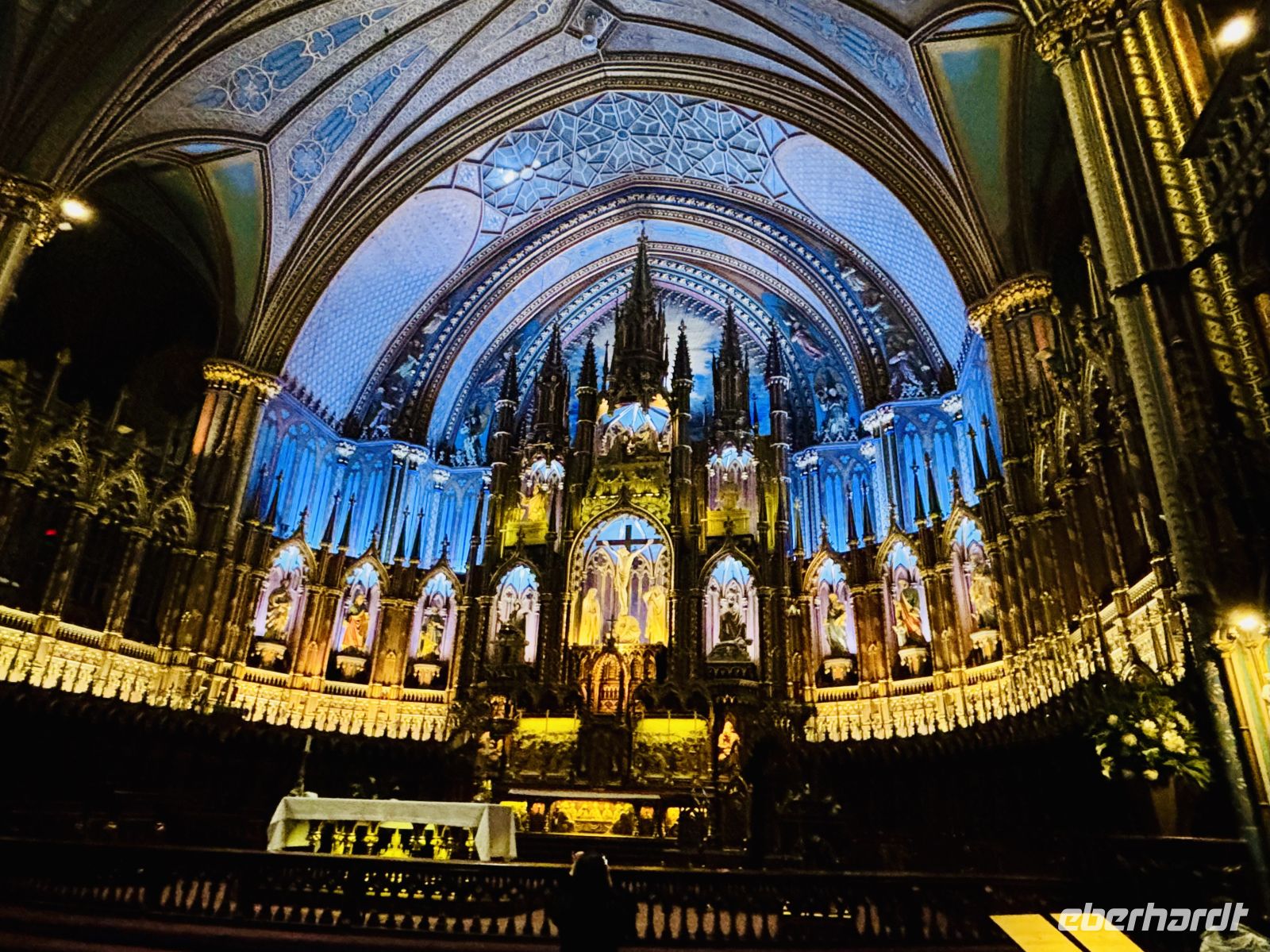 Die Altstadt „Vieux-Montréal“ ist Zeitzeugin der britischen und der französischen Kolonialherrschaft. Da Montreal im Winter oft stark verschneit ist, hat man hier die größte Untergrundstadt der Welt errichtet, in der es sich trotz klirrender Kälte gemütlich shoppen lässt. Das verzweigte Netzwerk aus unterirdischen Ladenpassagen und Fußgängertunneln ist über 32 Kilometer lang und gilt als größte Untergrundstadt der Welt. Nächster Programmpunkt ist der großzügige Park Mont Royal auf dem Hügel über der Stadt, der bei schönem Wetter atemberaubende Ausblicke auf die Region bietet. Leider haben wir heute einen dunstigen Regentag erwischt und sehen gar nichts. So fahren wir schnell wieder hinunter und besuchen die neogotische Basilika Notre-Dame aus dem 19. Jh., deren Orgel mehr als 7.000 Pfeifen hat.