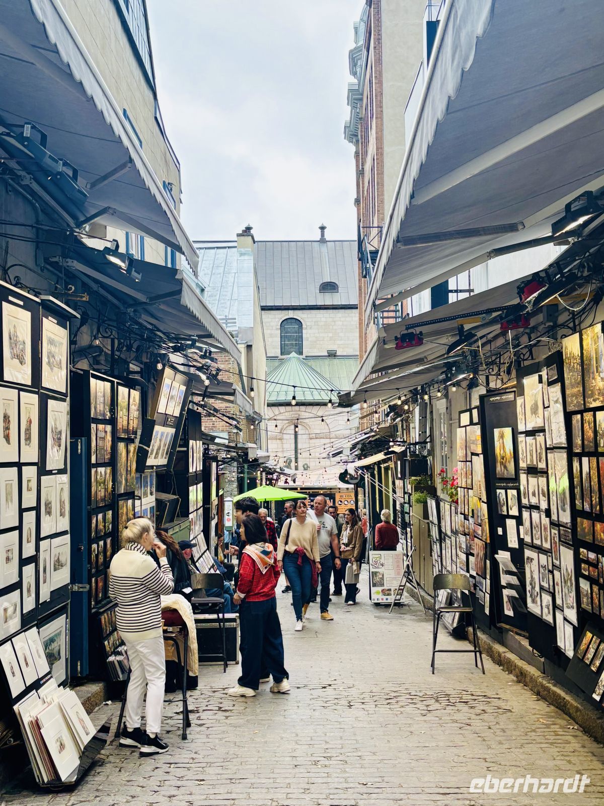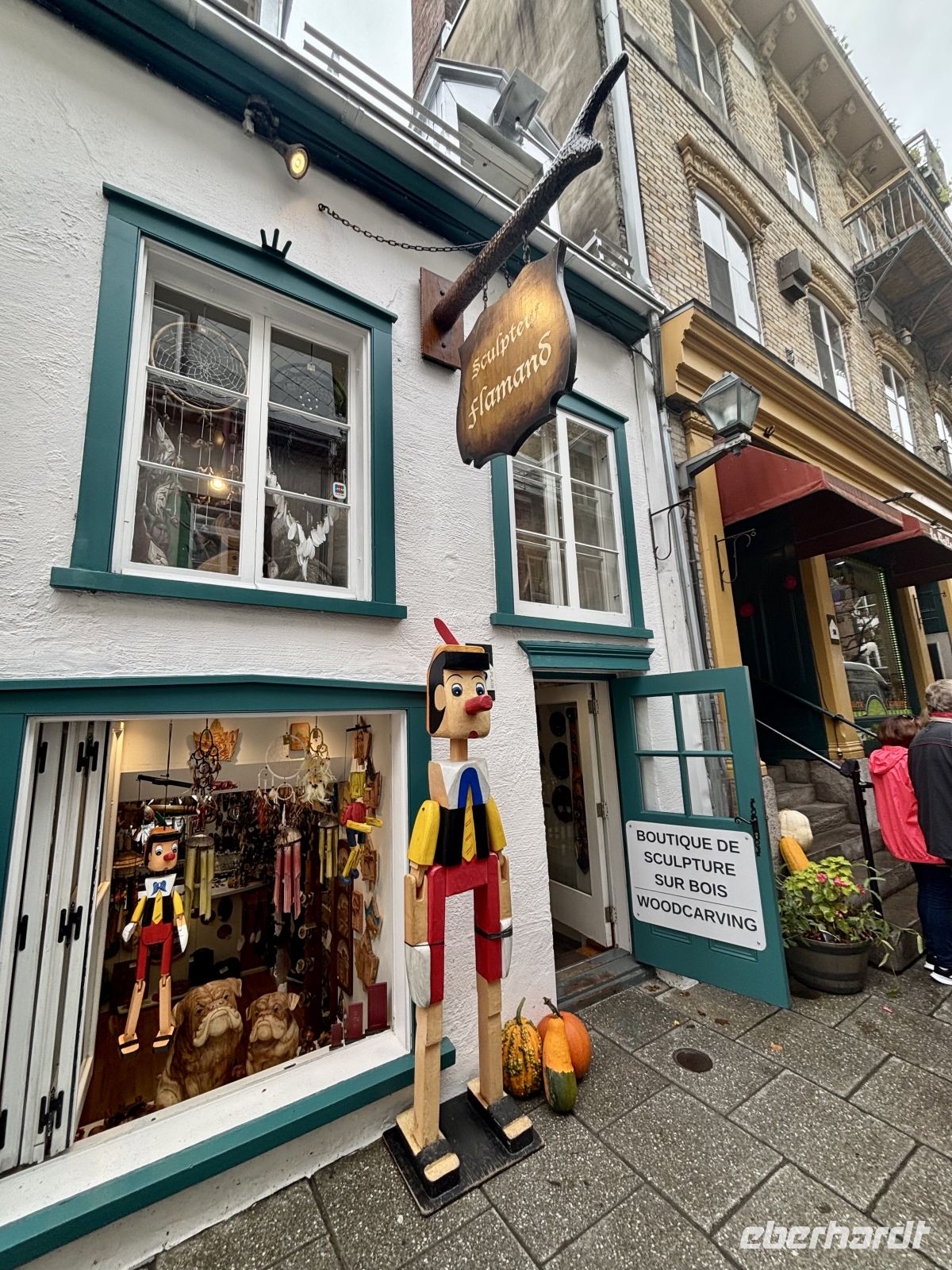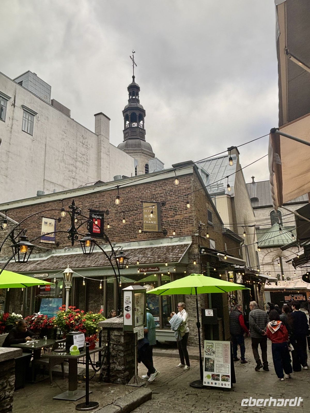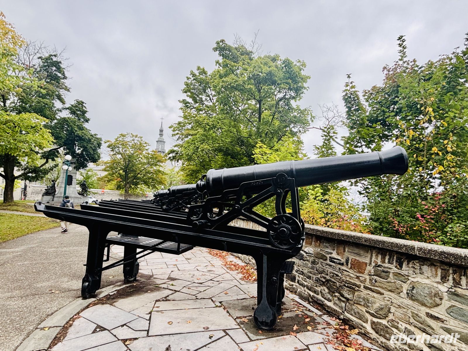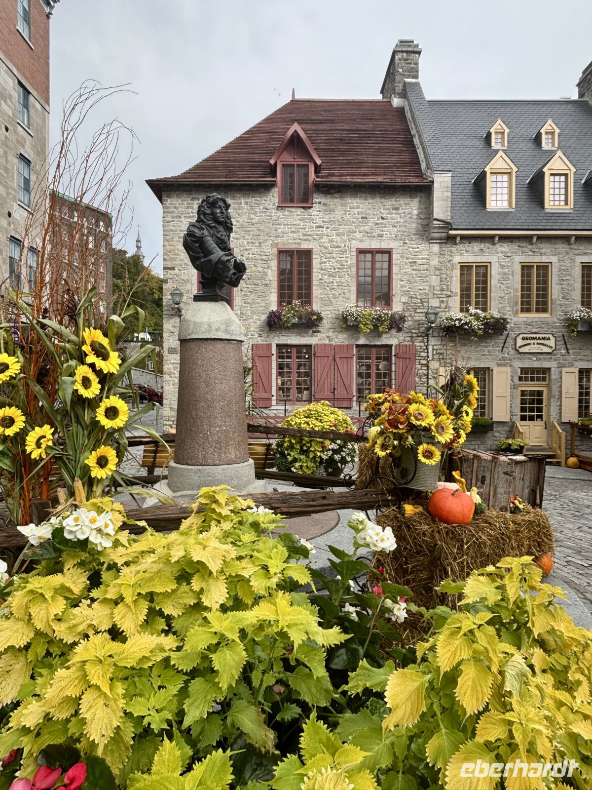 Zusammen mit Dagmar und dem örtlichen Reiseleiter machen wir eine Stadtrundfahrt durch die unterschiedlichen Viertel Quebecs, sehen wir den Regierungsbezirk, den Battlefields Park, die Rue Saint-Jean mit ihren zahllosen Cafés, Restaurants, Bars, Hotels und schönen Geschäften und die Grande Allée. Wir spazieren auch zu Fuß durch die malerische Altstadt, die von dem Wahrzeichen der Stadt, dem imposanten Luxus-Hotel Château Frontenac überragt wird und bummeln entlang der Dufferin-Terrasse. Auf dieser hölzernen Panoramastrecke unterhalb des Schlosshotels lässt es sich herrlich flanieren. Sie wurde in den 1870er Jahren errichtet und verläuft über 430 Meter, von der Zitadelle in nördlicher Richtung vorbei am Hotel Château Frontenac bis zur Place d’Armes. Am nördlichen Ende der Terrasse befindet sich die Bergstation der Funiculaire du Vieux-Québec, einer Standseilbahn in die Unterstadt.