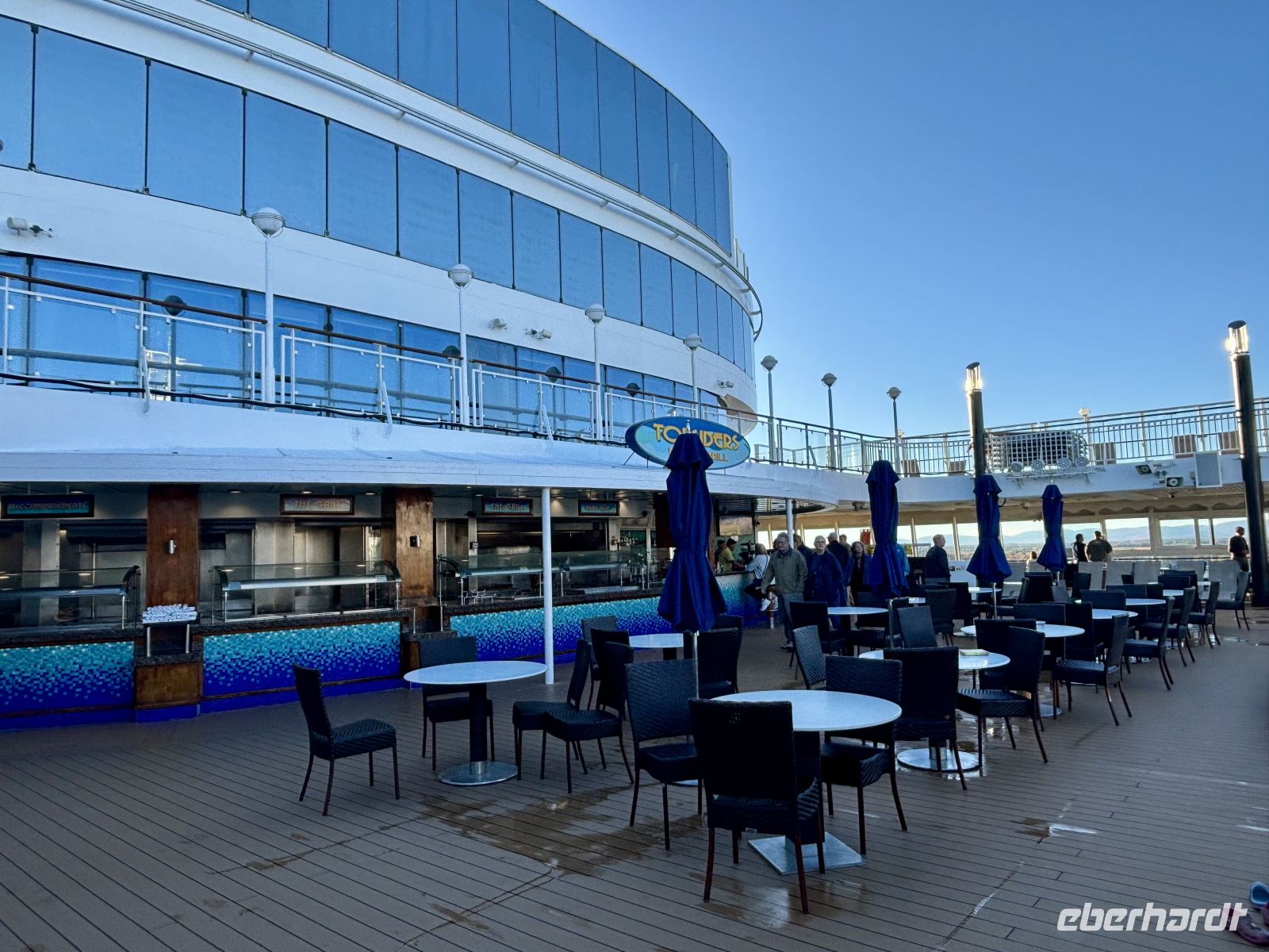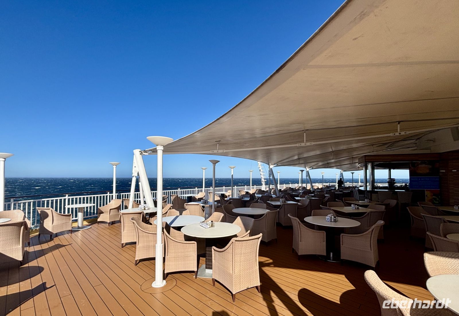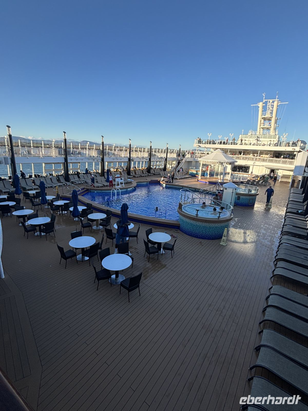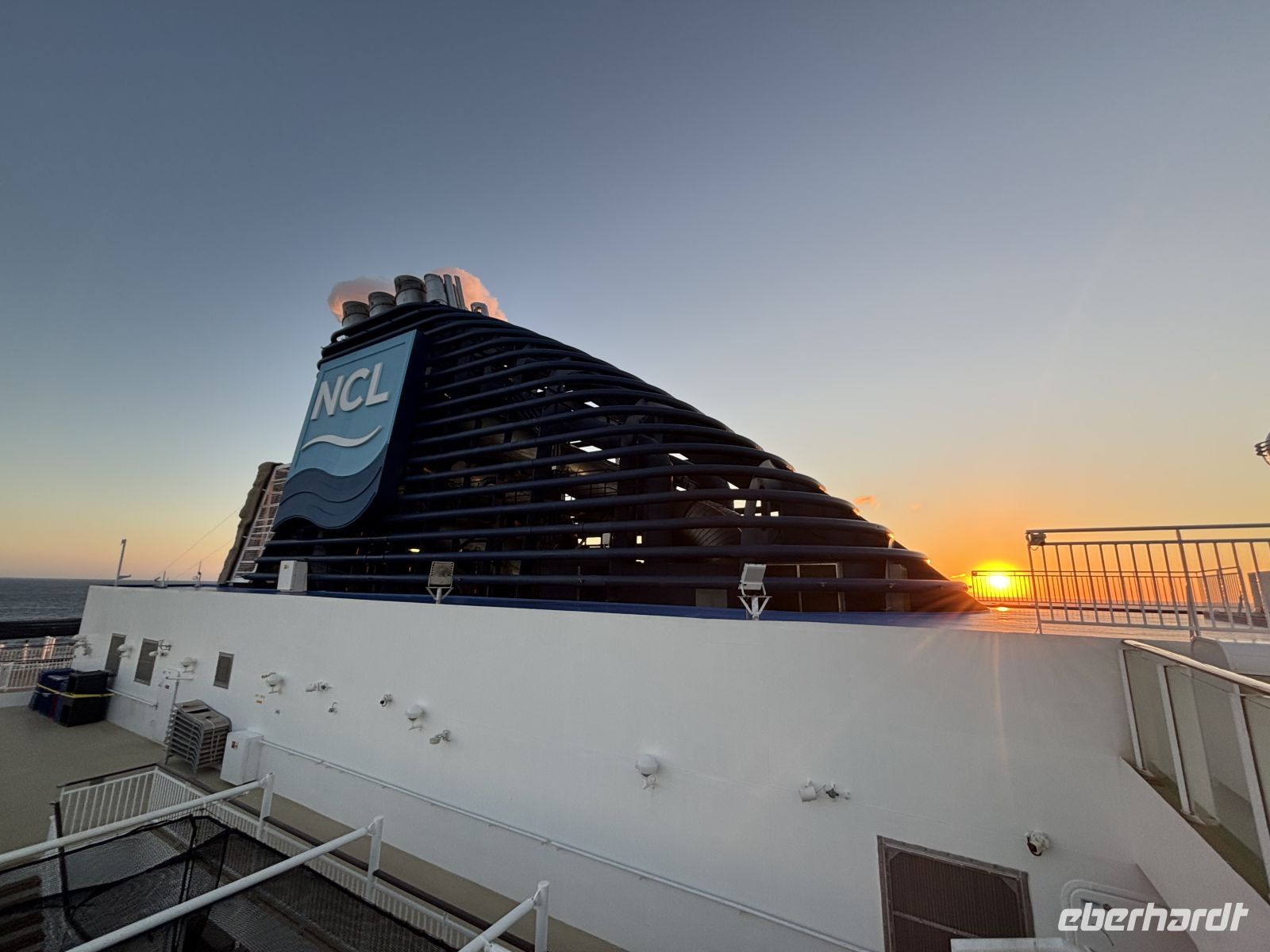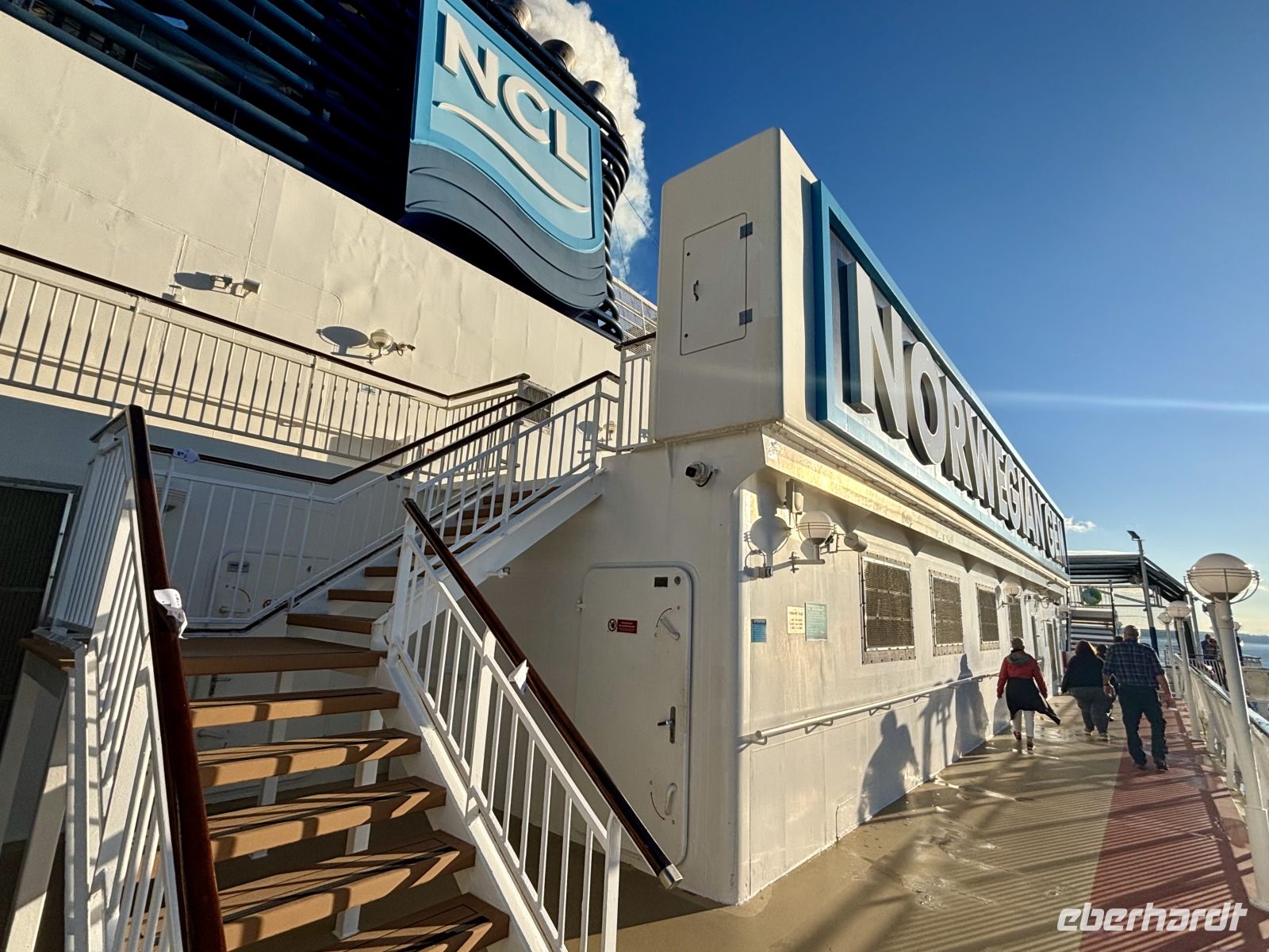 Aber dann sind wir schon im Terminal beim Check In, der ganz ohne lange Warteschlangen schnell erledigt ist. Die Koffer werden für uns an Bord gebracht und im Nu öffnen sich die Kabinentüren unseres schwimmenden Zuhauses der nächsten sieben Nächte. Am Anfang verlaufen wir uns noch ein wenig auf dem großen Schiff, aber schnell gewinnen wir den Überblick und wählen voller Genuss ein Restaurant für unser erstes Abendessen an Bord. Dank des Konzeptes „Freestyle Cruising“ überlässt die Reederei es den Gästen, wann sie in welchem Restaurant essen und welche Kleidung sie tragen möchten. Ein voller Erfolg!